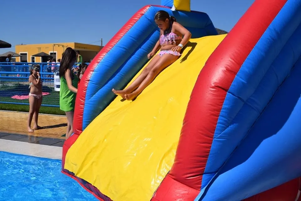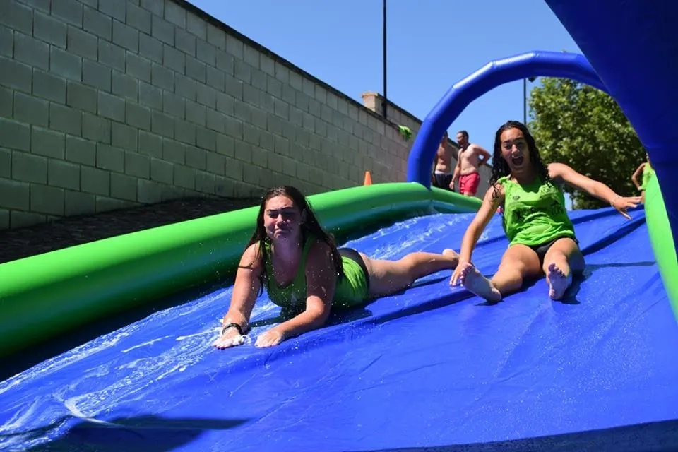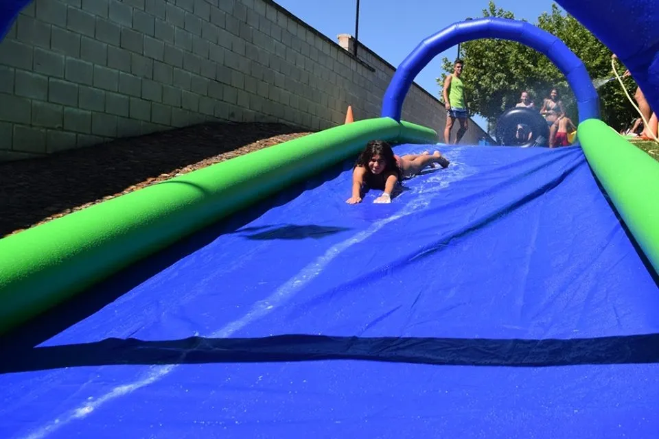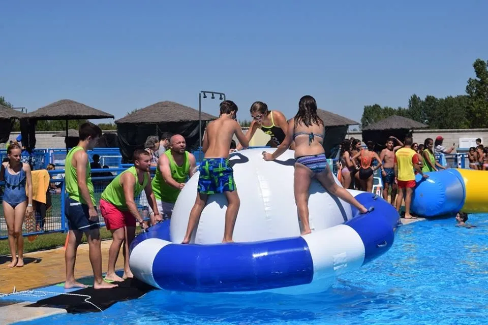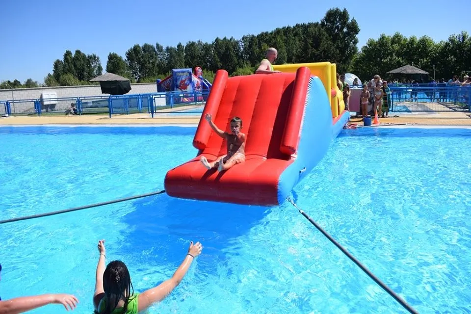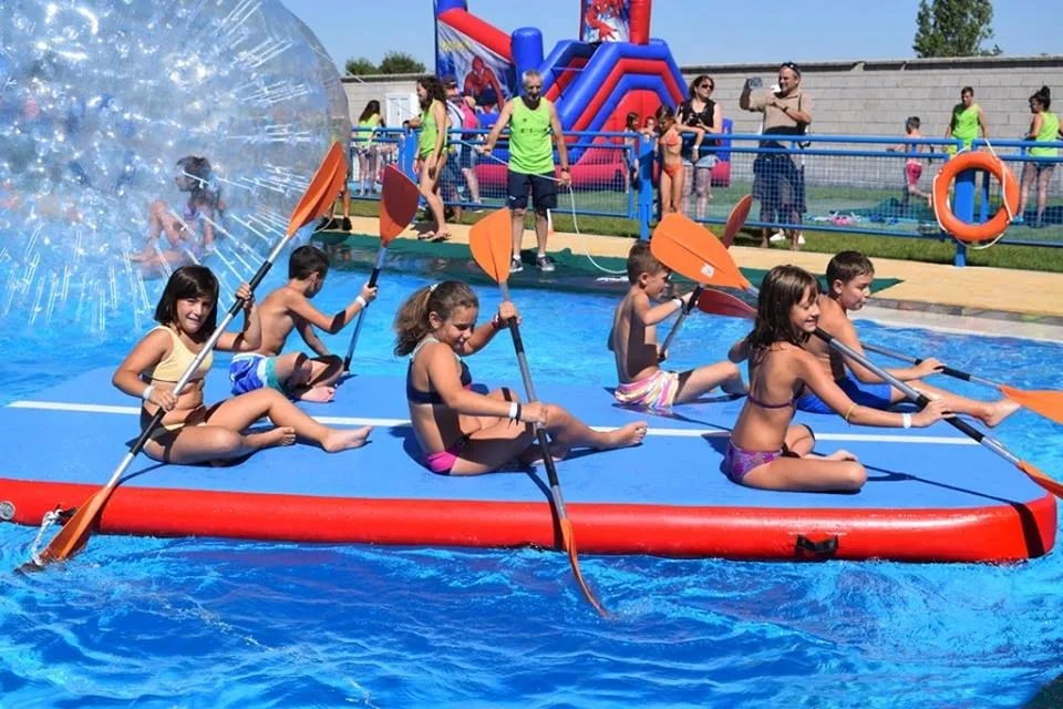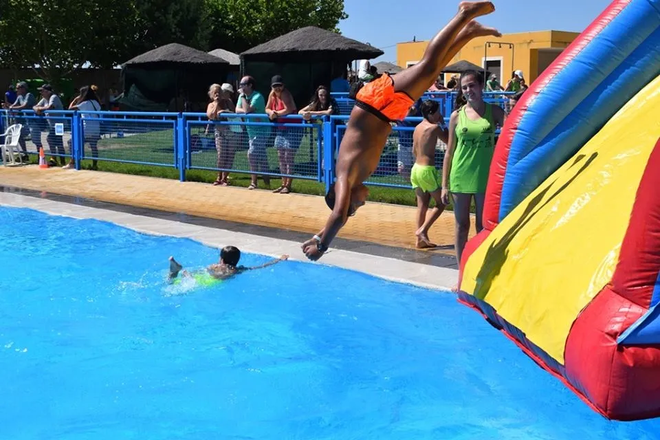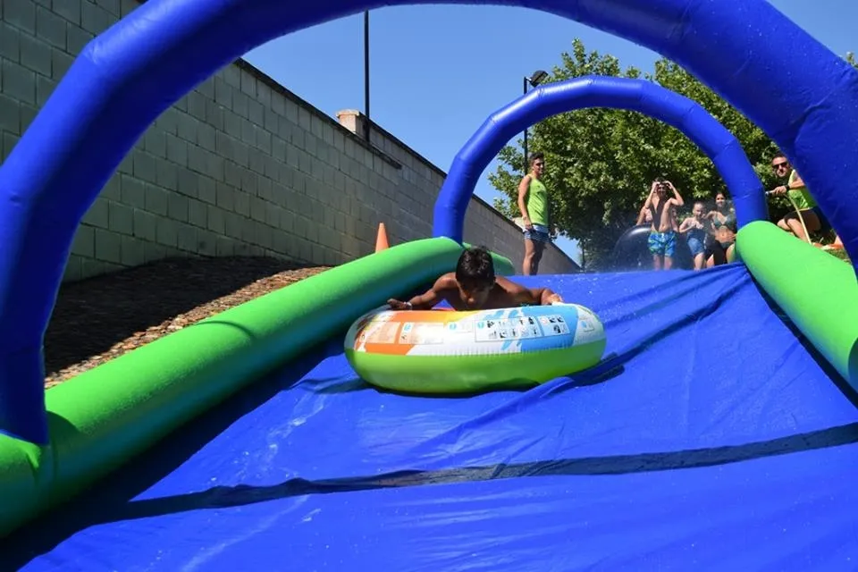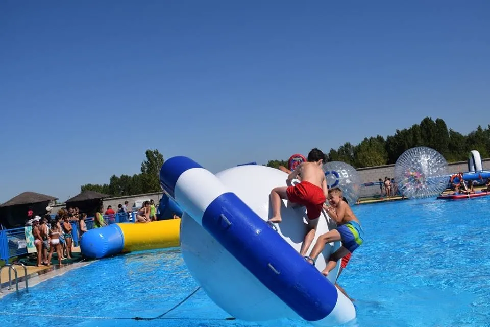 Los Juegos de la Piscina congregaron este año a 180 niños de entre 4 y 13 años, que pudieron realizar dos circuitos de juegos en función de su edad: el llamado circuito rojo para niños de 4 a 8 años, y el azul para niños de 9 a 13 años. En esos circuitos había repartidos elementos como Slider City, resbaladora, bolas de agua, el hinchable Saturno, Spiderman, toboganes, balancines y pasarelas acuáticas, o una cama elástica.