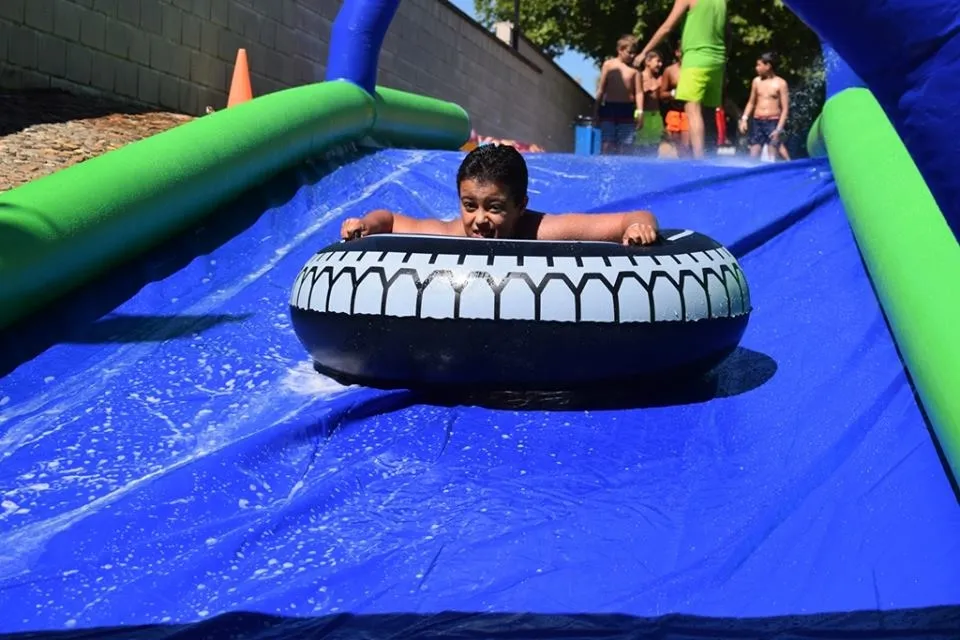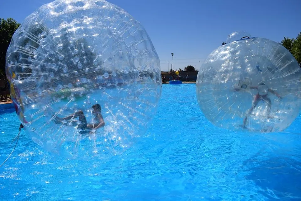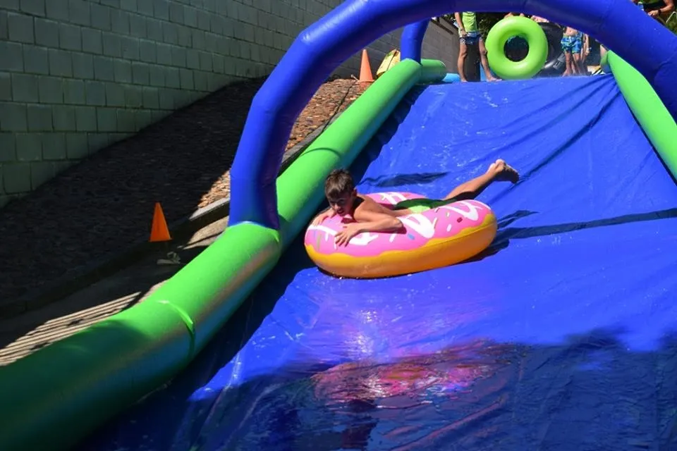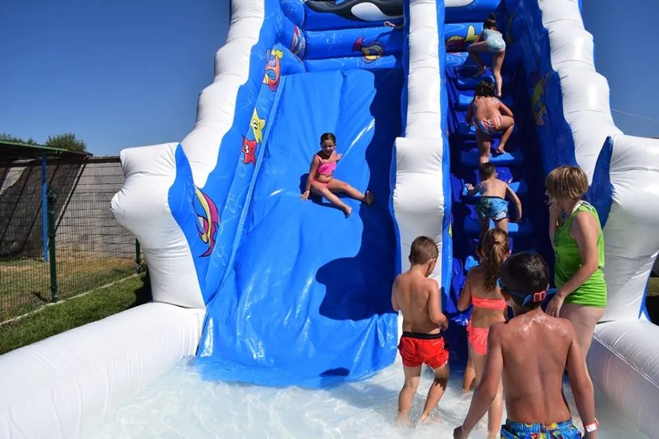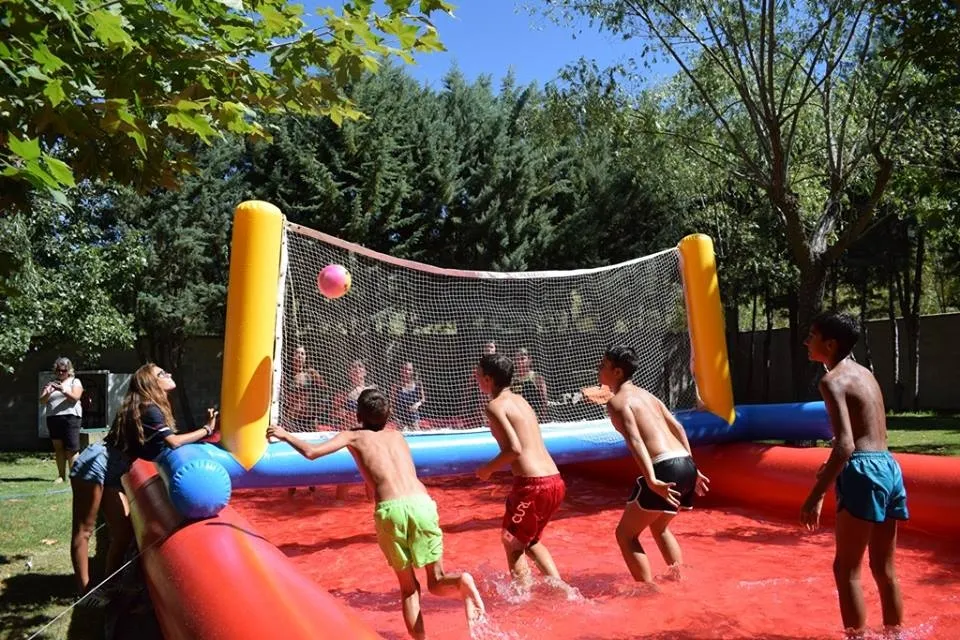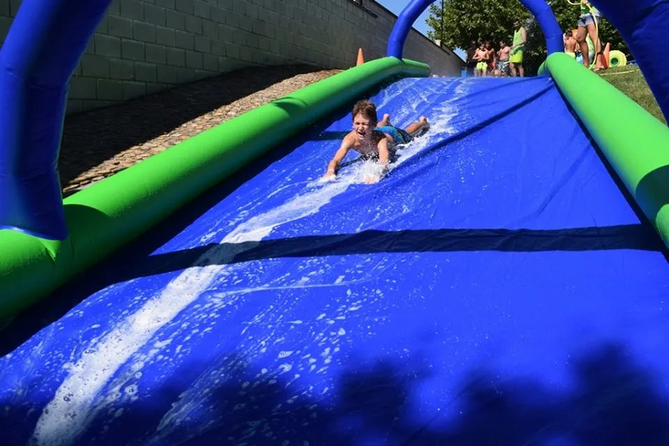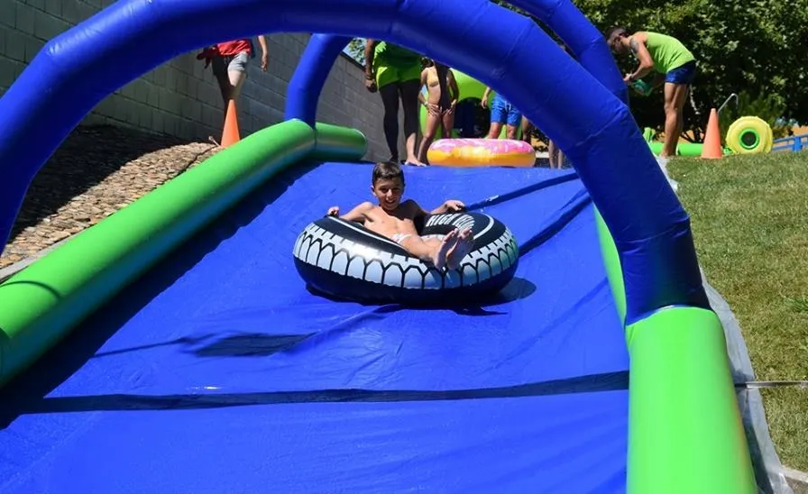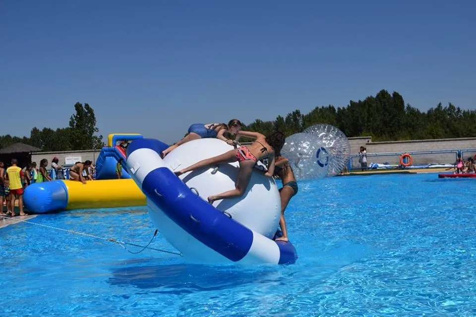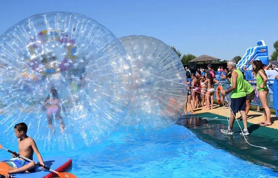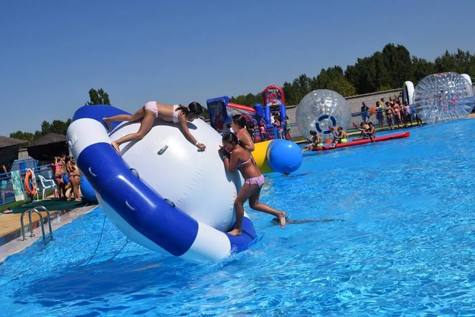 Los Juegos de la Piscina congregaron este año a 180 niños de entre 4 y 13 años, que pudieron realizar dos circuitos de juegos en función de su edad: el llamado circuito rojo para niños de 4 a 8 años, y el azul para niños de 9 a 13 años. En esos circuitos había repartidos elementos como Slider City, resbaladora, bolas de agua, el hinchable Saturno, Spiderman, toboganes, balancines y pasarelas acuáticas, o una cama elástica.