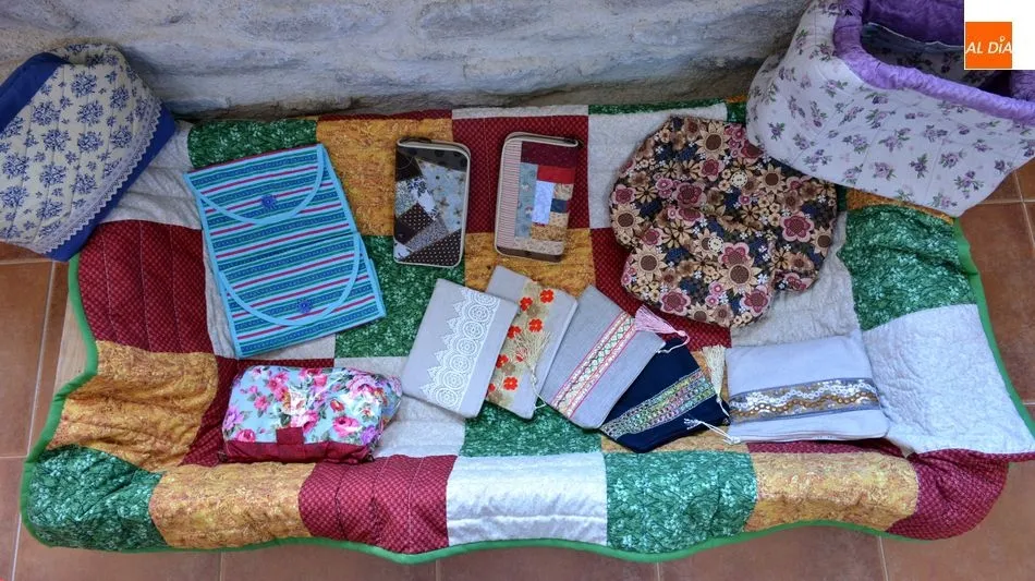 Colchas, mantas, tapices, cojines, cuadros, cajas, bolsos, mandiles, agarradores, bolas de navidad?. completan la amplia muestra de objetos salidos de las manos de estas cuatro mujeres de La Redonda que llevan 12 años dedicando su tiempo libre a este hobby. Han aprendido con Isabel Díaz, la lumbralense maestra en esta peculiar técnica de costura.