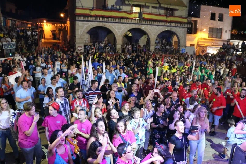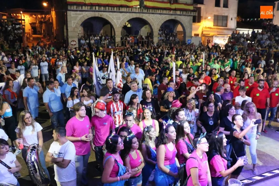Con ¡vivas a San Roque! arrancaban la noche de este miércoles en Villarino sus fiestas patronales en honor a San Roque, una noche que tenía tres protagonistas principales, las peñas, la Corte de Honor y la pregonera, y que arrancaba con un bullicioso desfile de las primeras hasta su entrada en la Plaza Mayor de la localidad.