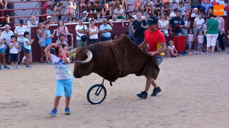 El jueves previo a la celebración de la Cabalgata al Prao que abre las Fiestas de Toros de Lumbrales es desde hace muchos años, el Día del Niño. Y un año más, en el programa de fiestas de este año se ofertaban actividades de animación infantil, juegos, hinchables, un super tobogán acuático y una fiesta de la espuma. Y para cerrar el día, el ya tradicional encierro con carretones, una de las actividades más atractivas para los niños y para los padres y abuelos que les acompañan.