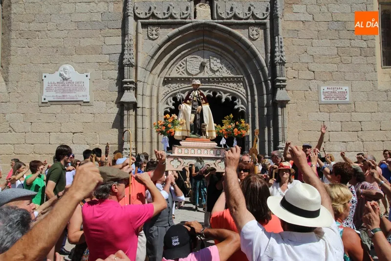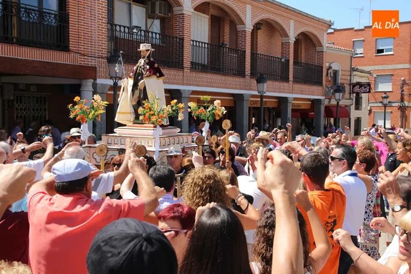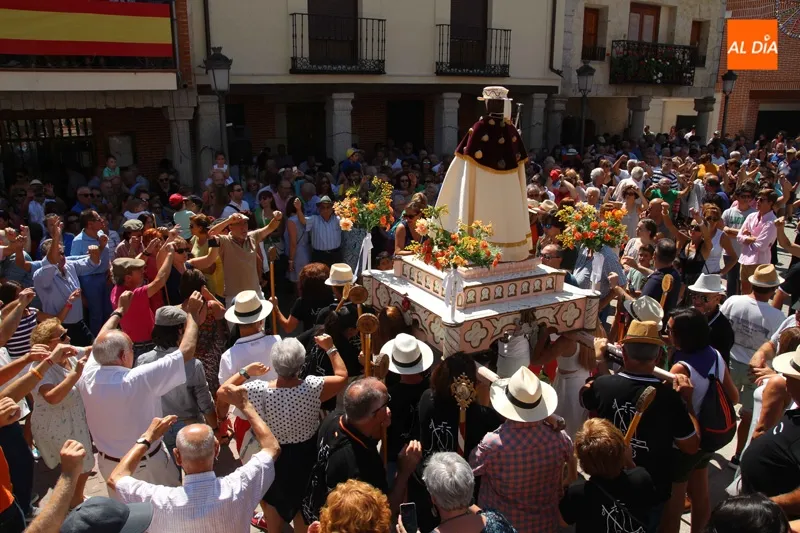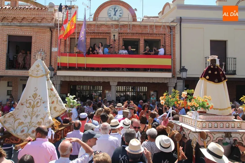 Tras ella vecinos y visitantes se agolparon en la Plaza Mayor para recibir con vítores y bailes a las imágenes del Santo y la Virgen de la Encina quienes, portadas a hombros, iniciaron su particular procesionar en un ritual
