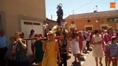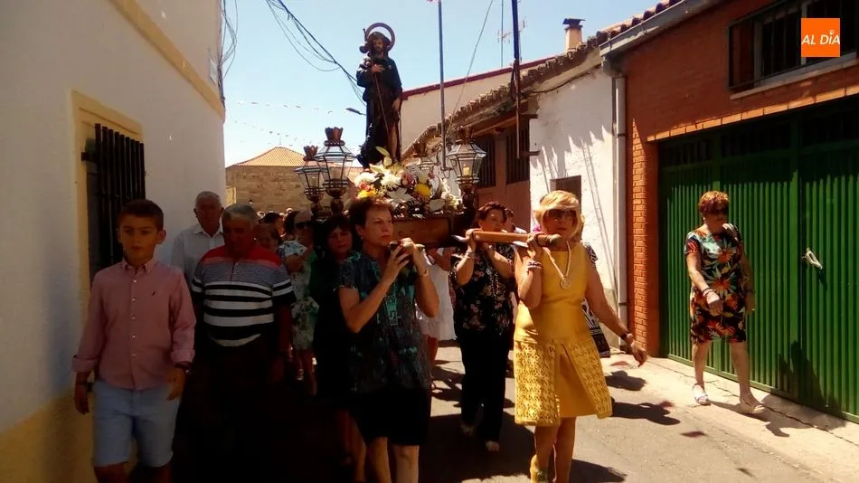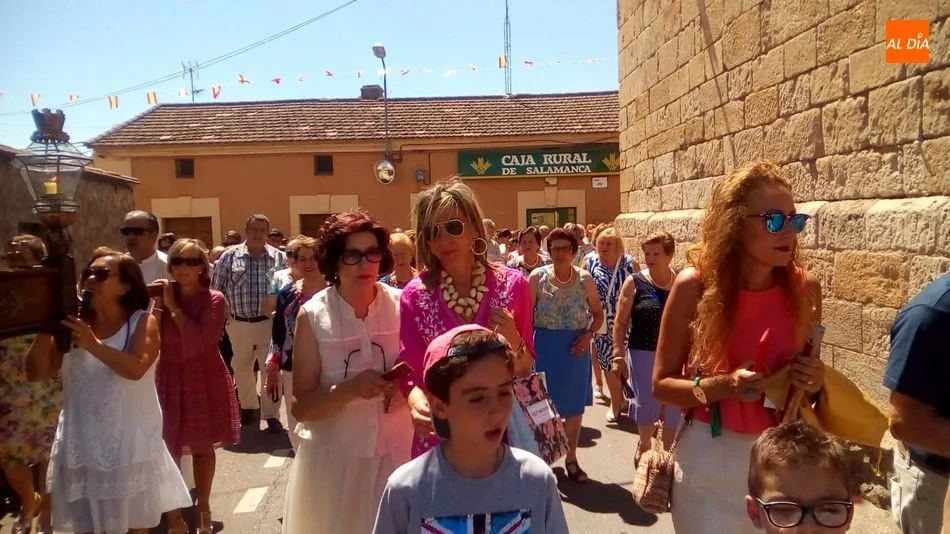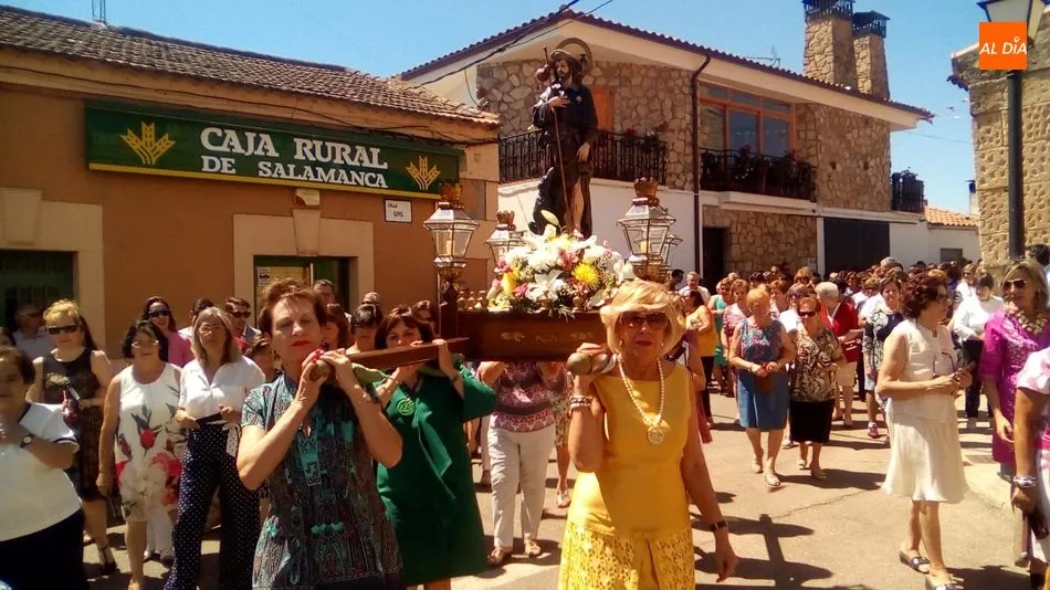 Las fiestas de Valdelosa en honor a San Roque han alcanzado este jueves su día grande con los actos dedicados al patrón. Tras la tradicional misa, que ha contado con las canciones de Rosa María, tenía lugar la procesión con la imagen del santo acompañada por bailes charros.