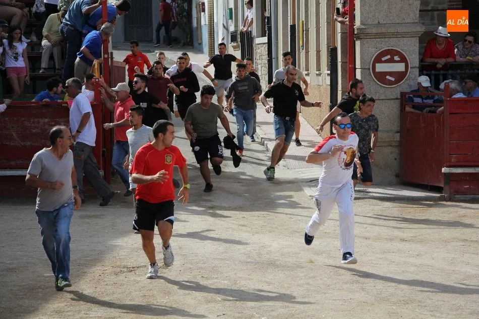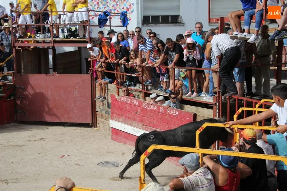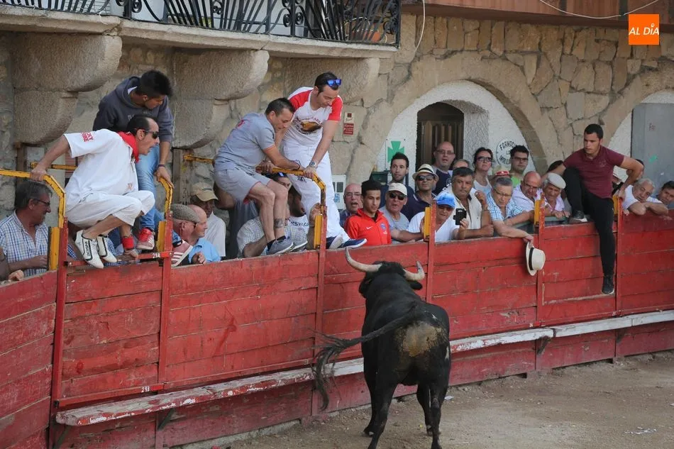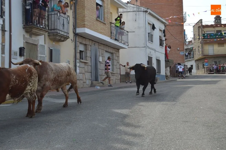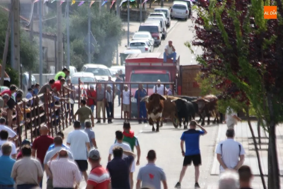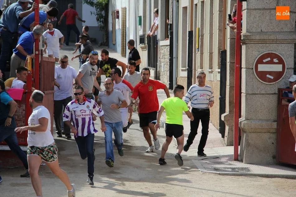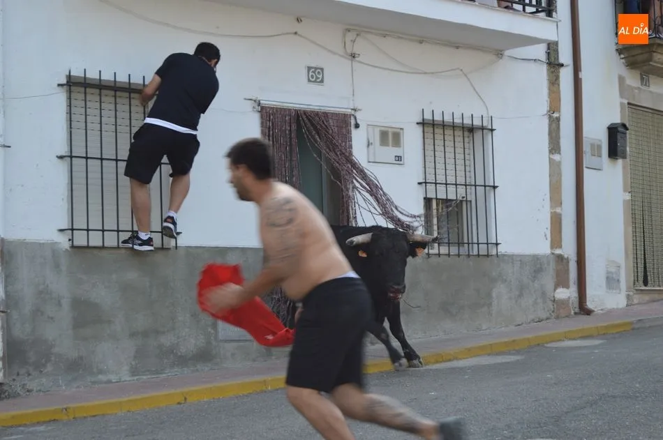 En mitad de la calle La Cumbre, casi a la altura de Carrasquina, uno de los novillos de Valrubio arremetía contra una valla y un segundo después se giraba para entrar en una vivienda con la puerta en el recorrido. Y como la valentía de este ganado no tiene límites, el eral no solo embistió contra la puerta, sino que entró en la vivienda para destrozar su interior y herir en una mano a su propietario, que fue atendido por los servicios de urgencia del centro de guardias de la localidad y posteriormente trasladado al Complejo Hospitalario de Salamanca para una mejor exploración de la herida, un corte.