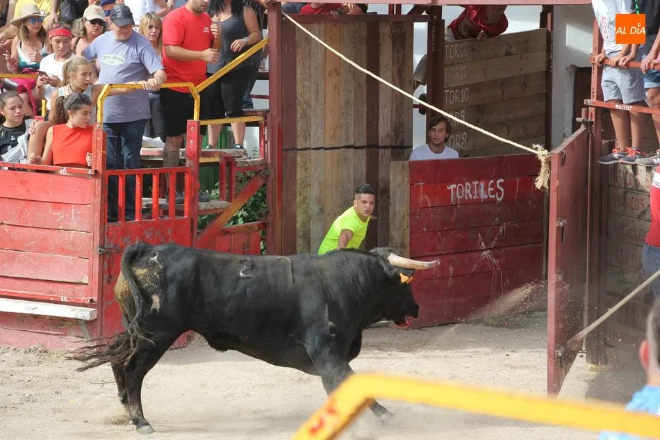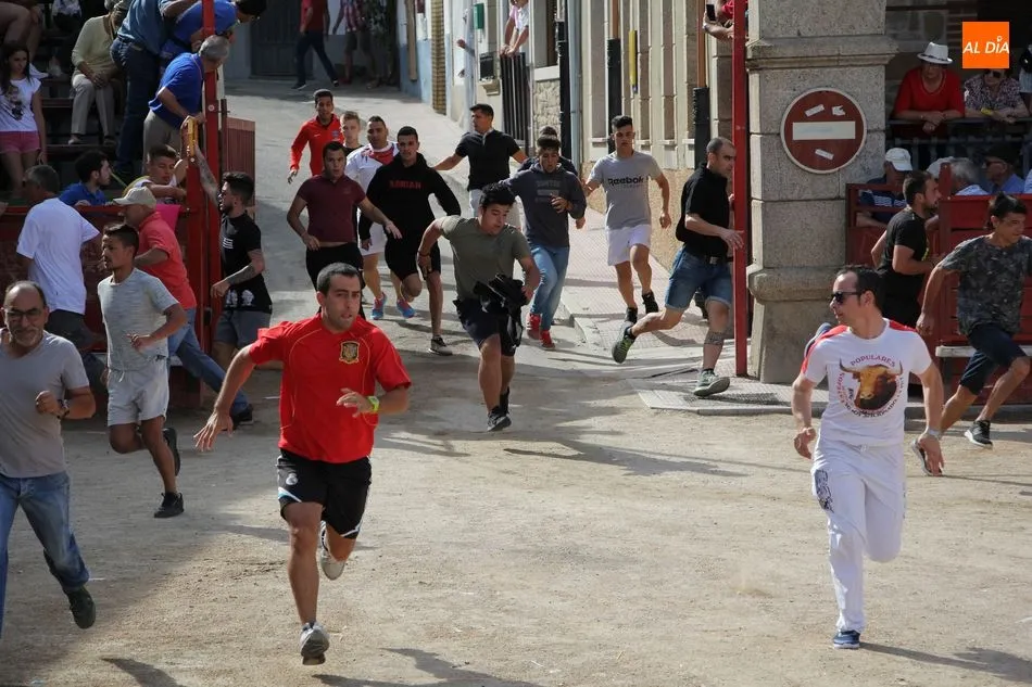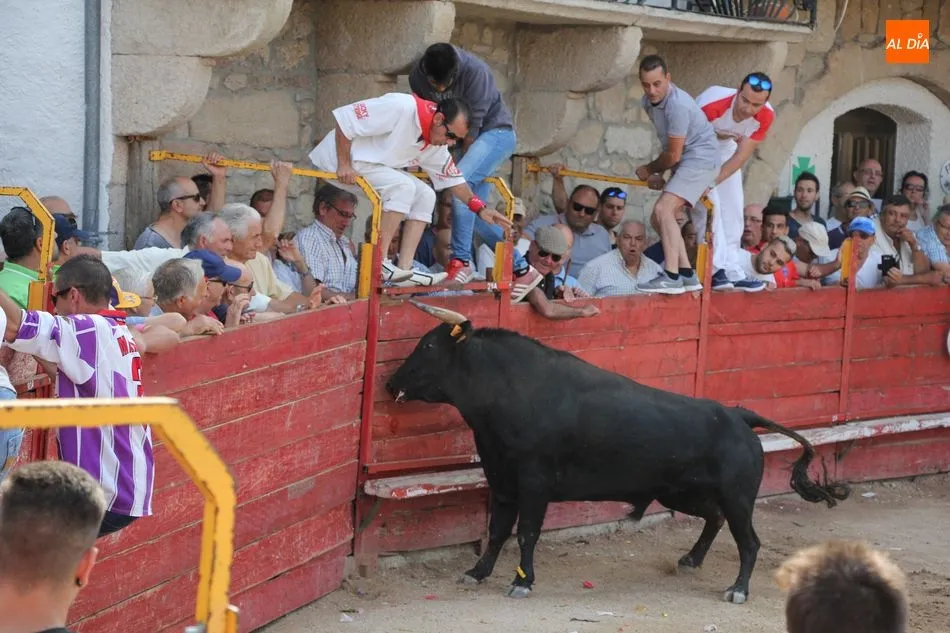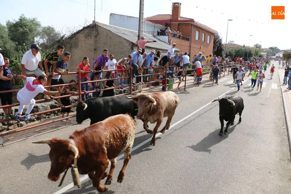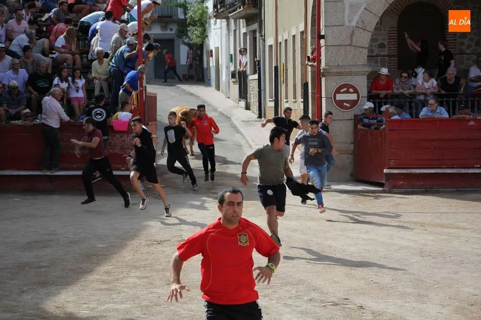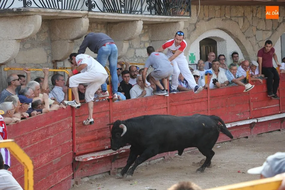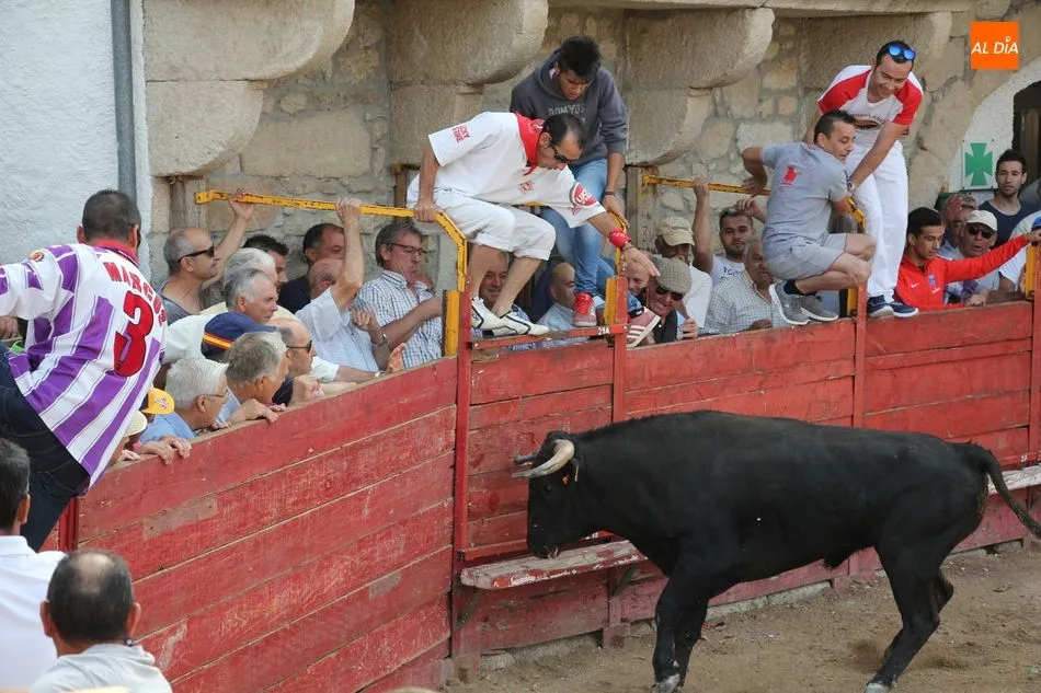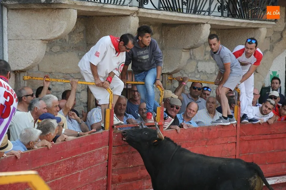 En mitad de la calle La Cumbre, casi a la altura de Carrasquina, uno de los novillos de Valrubio arremetía contra una valla y un segundo después se giraba para entrar en una vivienda con la puerta en el recorrido. Y como la valentía de este ganado no tiene límites, el eral no solo embistió contra la puerta, sino que entró en la vivienda para destrozar su interior y herir en una mano a su propietario, que fue atendido por los servicios de urgencia del centro de guardias de la localidad y posteriormente trasladado al Complejo Hospitalario de Salamanca para una mejor exploración de la herida, un corte.