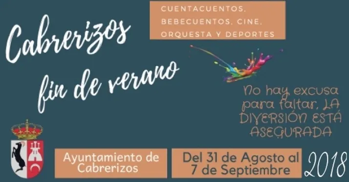 Cabrerizos celebrará del 31 de agosto al 7 de septiembre el fin del verano con actividades culturales y deportivas que podrán disfrutar todos los vecinos y visitantes. Una exposición, bebecuentos, cuentacuentos, verbena, cine y torneos deportivos son las propuestas organizadas por el Ayuntamiento para despedir la época estival.