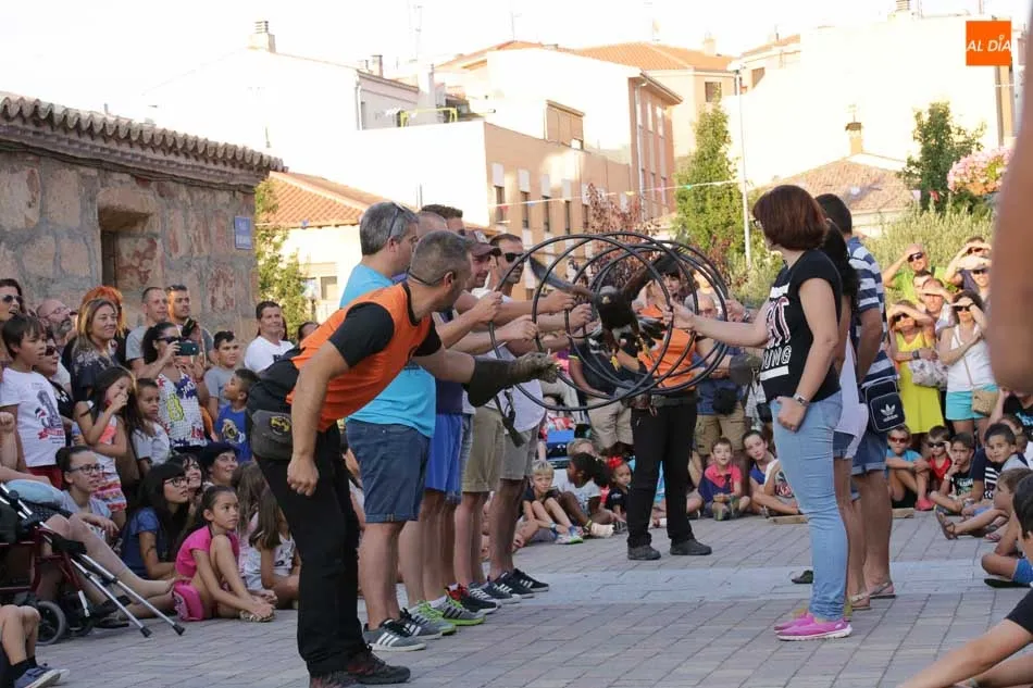Junto a la cetrería, la tarde ha estado protagonizada por la fiesta de la espuma que ha vuelto a refrescar y divertir a los participantes, principalmente niños y jóvenes, y que ha dado paso al inicio del torneo de fútbol sala femenino. Ya por la noche, los vecinos tienen una nueva cita con el Festival de Circo y el espectáculo de acrobacias, pintura y humor ?Wilbur? y con la esperada actuación del conocido Dj Fonsi Nieto en el Recito Ferial.