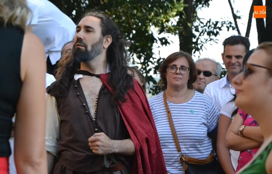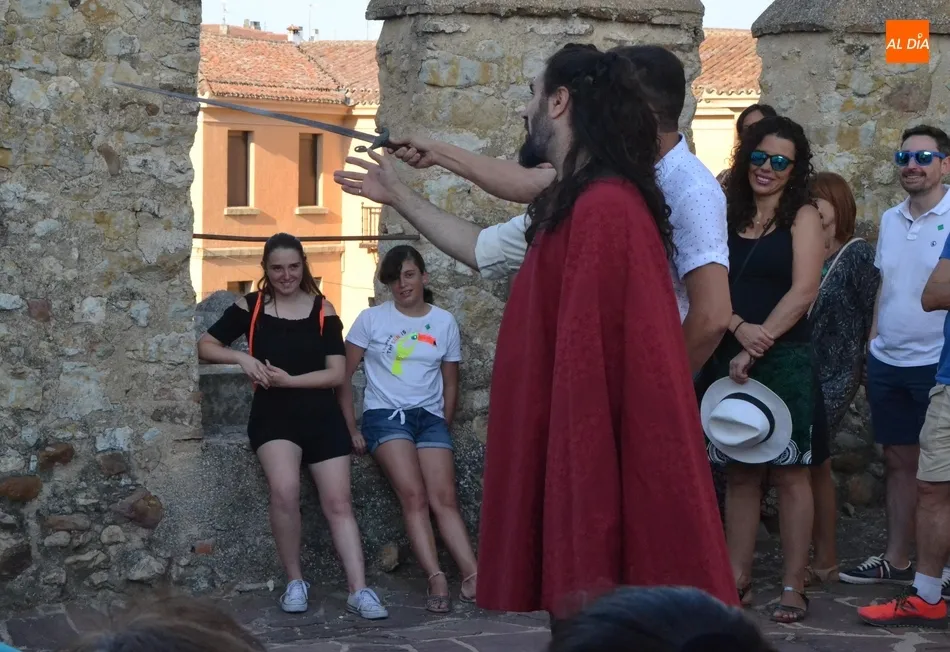 Todas esas personas pudieron disfrutar de un recorrido dirigido por la guía turística Beatriz Jorge Carpio, en el que se fueron encontrando con el actor Sergio Cardoso metido en la piel de varios personajes: Enrique II de Trastámara, Antonio del Águila y un cantero del Parador, interactuando con el público.