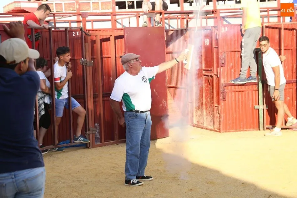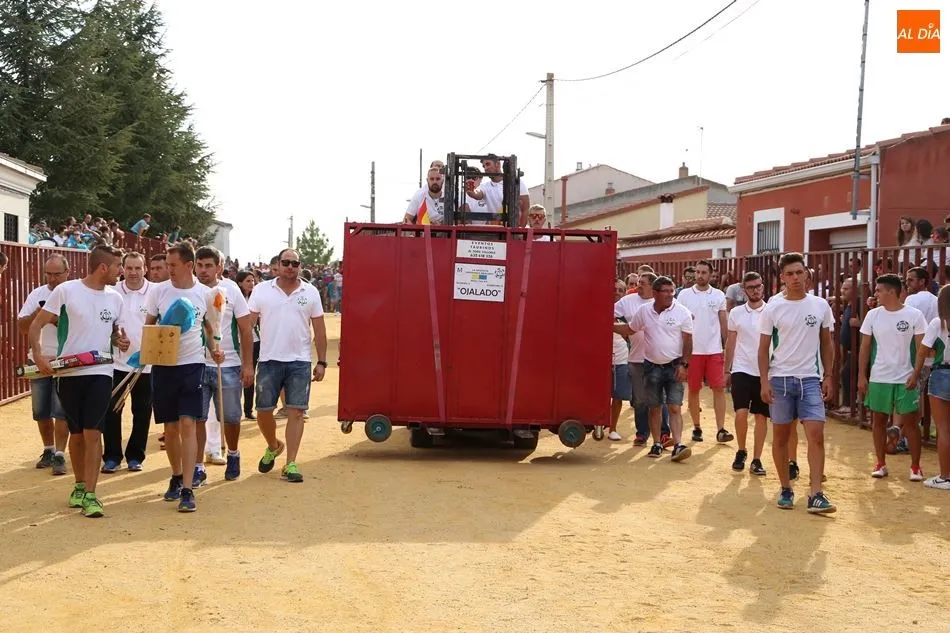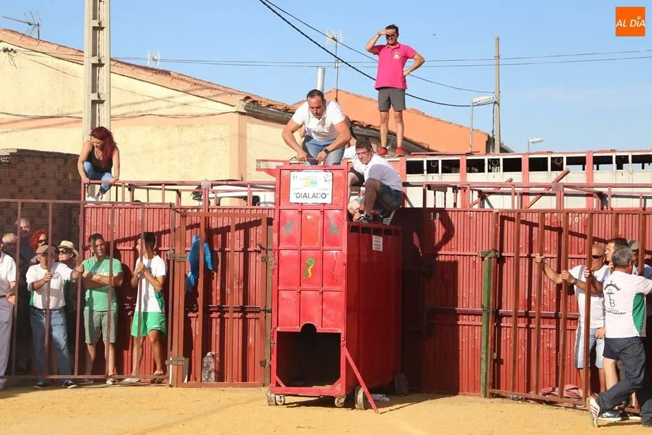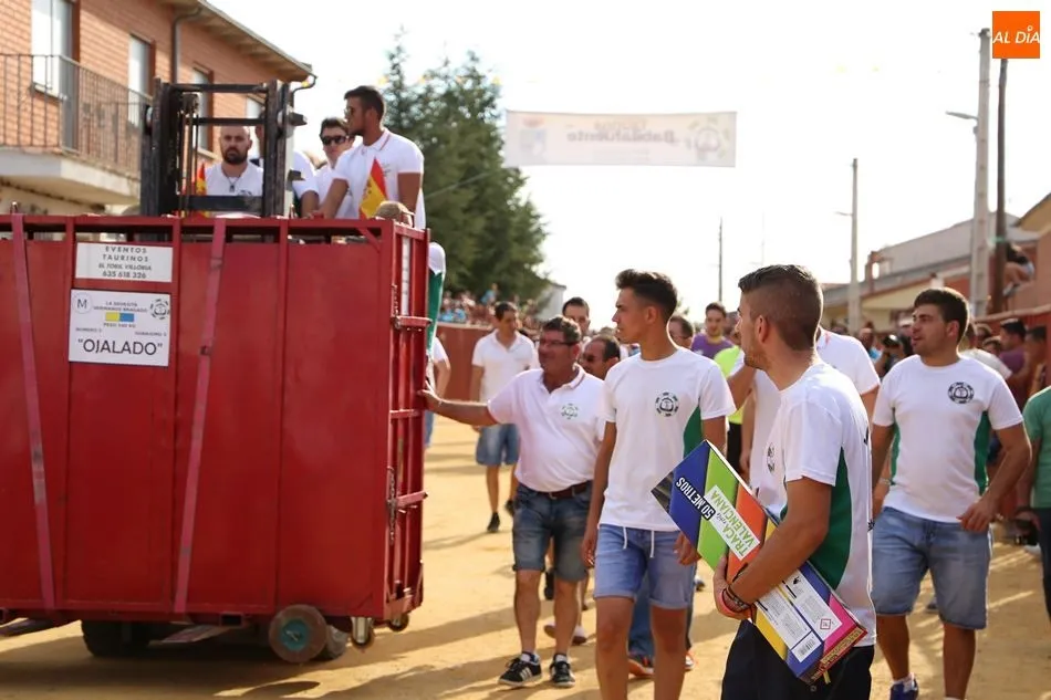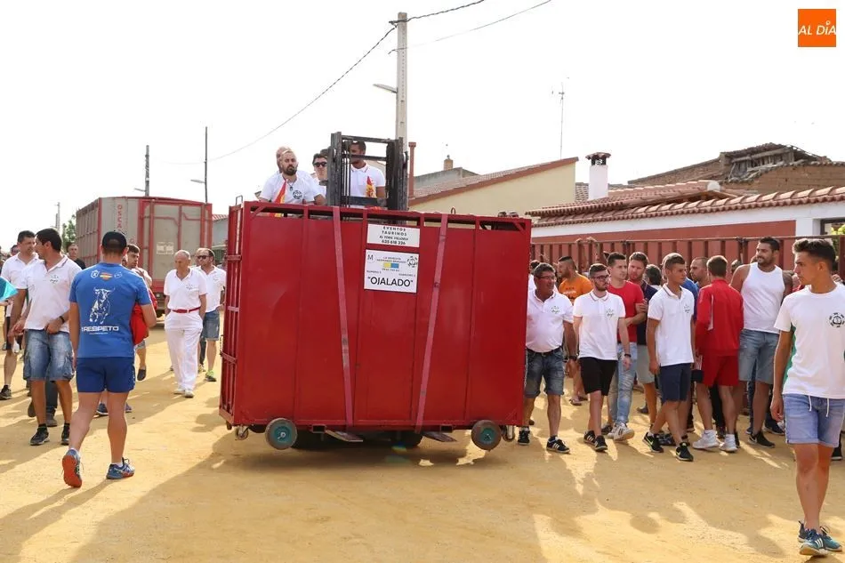 El festejo, enmarcado en las fiestas de San Roque, comenzaba poco después de las 19 horas, tras el encierro infantil celebrado en el mismo recorrido. Una vez metido el toro en el cajón, fue transportado hasta el lugar en el que sería soltado. Los socios de Pasión Taurina quisieron fotografiarse ante el cajón para recordar el que ya es su segundo toro de cajón, en el que han invertido mucho esfuerzo y tiempo durante los últimos meses. A continuación, el estruendo de una traca de 50 metros anunció el inicio del festejo.