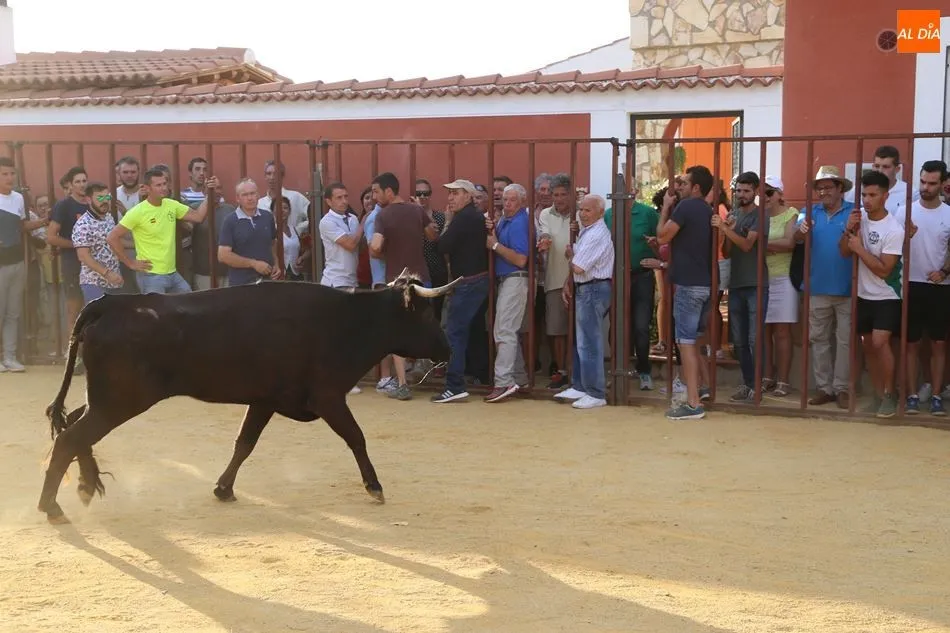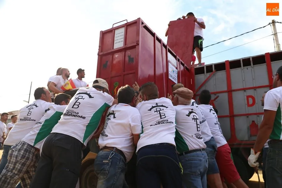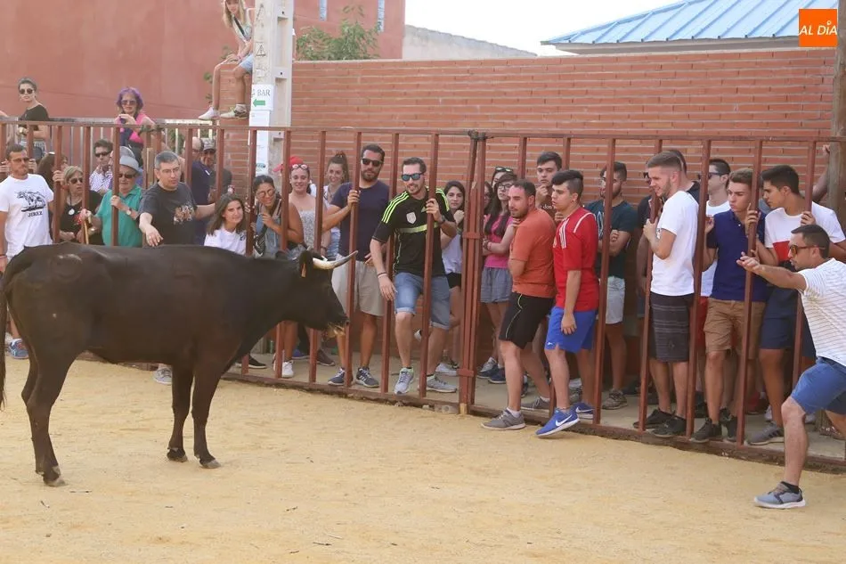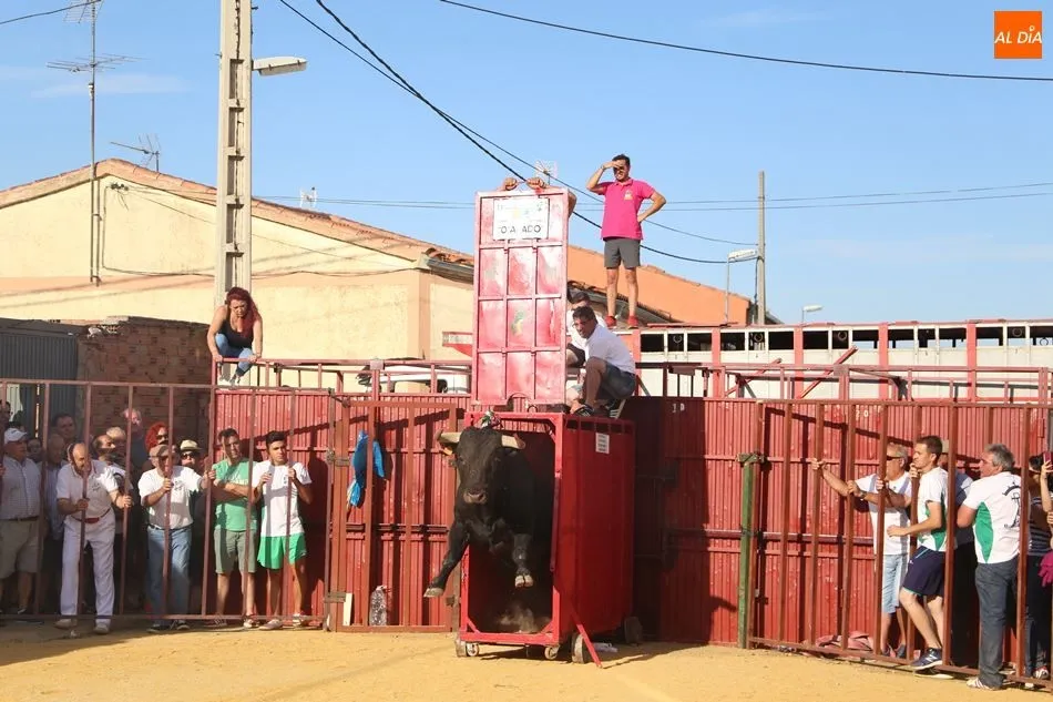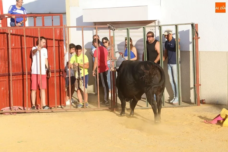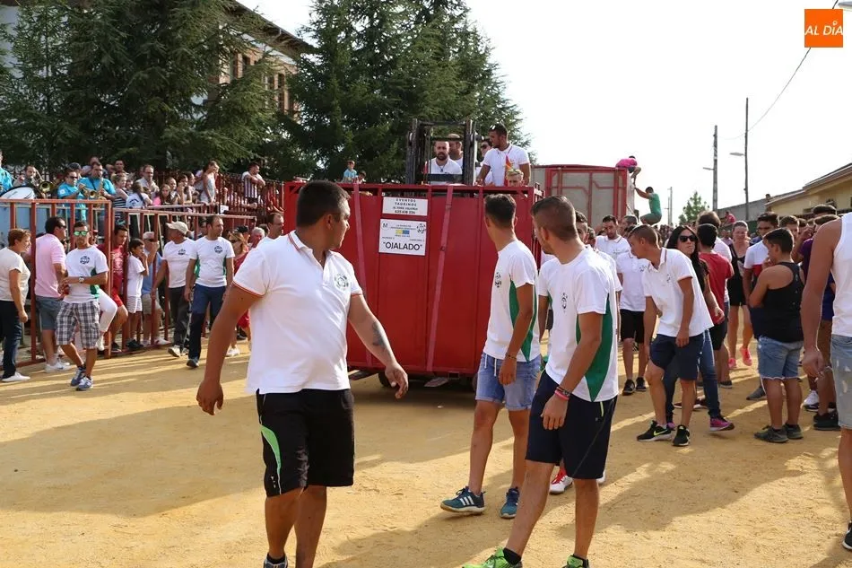 El festejo, enmarcado en las fiestas de San Roque, comenzaba poco después de las 19 horas, tras el encierro infantil celebrado en el mismo recorrido. Una vez metido el toro en el cajón, fue transportado hasta el lugar en el que sería soltado. Los socios de Pasión Taurina quisieron fotografiarse ante el cajón para recordar el que ya es su segundo toro de cajón, en el que han invertido mucho esfuerzo y tiempo durante los últimos meses. A continuación, el estruendo de una traca de 50 metros anunció el inicio del festejo.