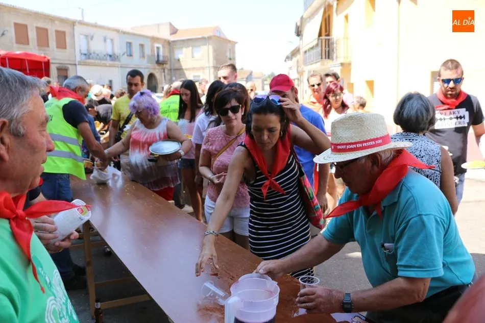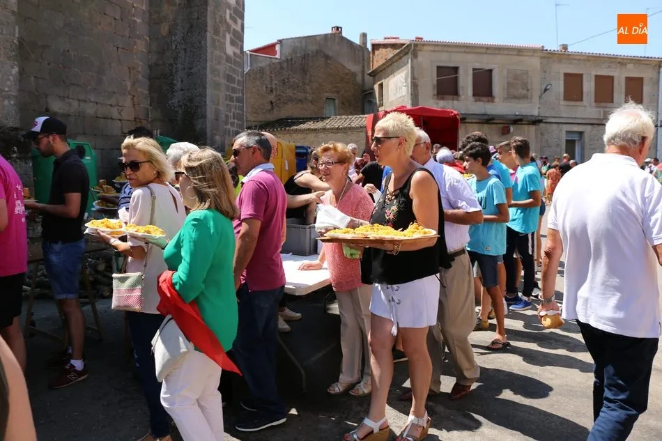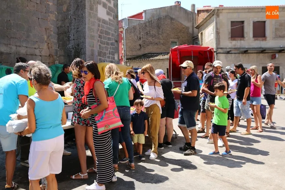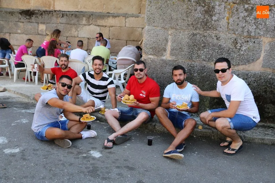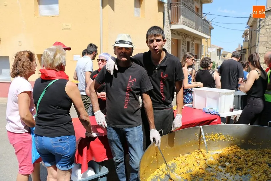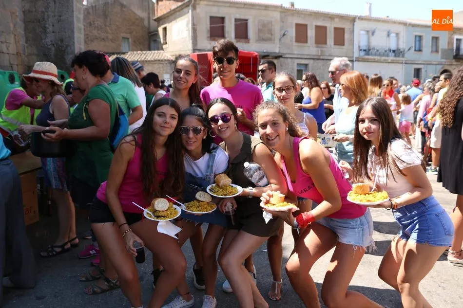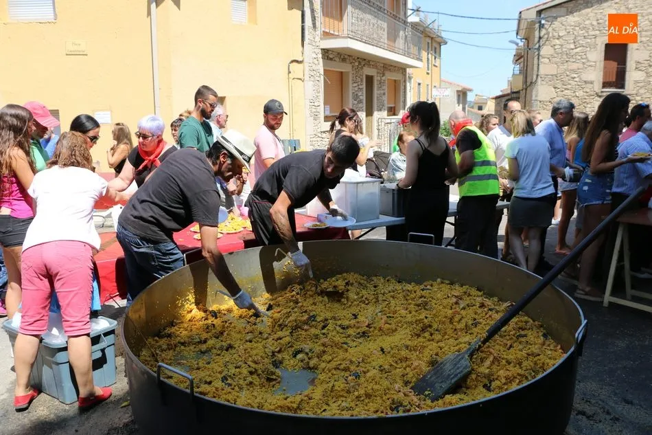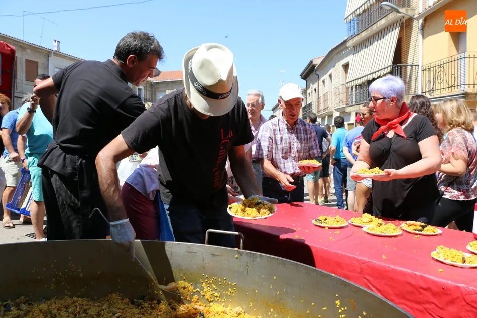 Los vecinos de Masueco de la Ribera tomaban fuerza este domingo con una gran paellada ante lo que se les viene encima los próximos días. En total, 950 raciones de arroz y un euro por plato a beneficio de la Asociación Española Contra el Cáncer, por lo que el evento preparado por el Ayuntamiento con motivo de sus fiestas patronales tenía doble vertiente, festivo y a la vez solidario.