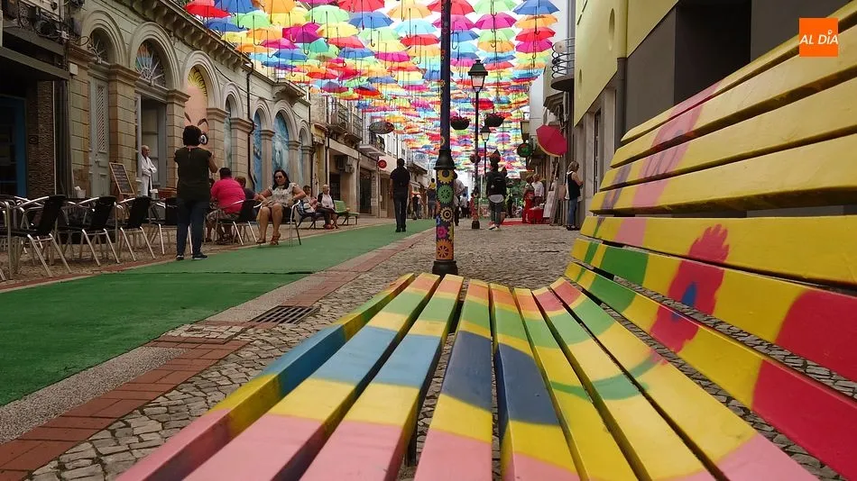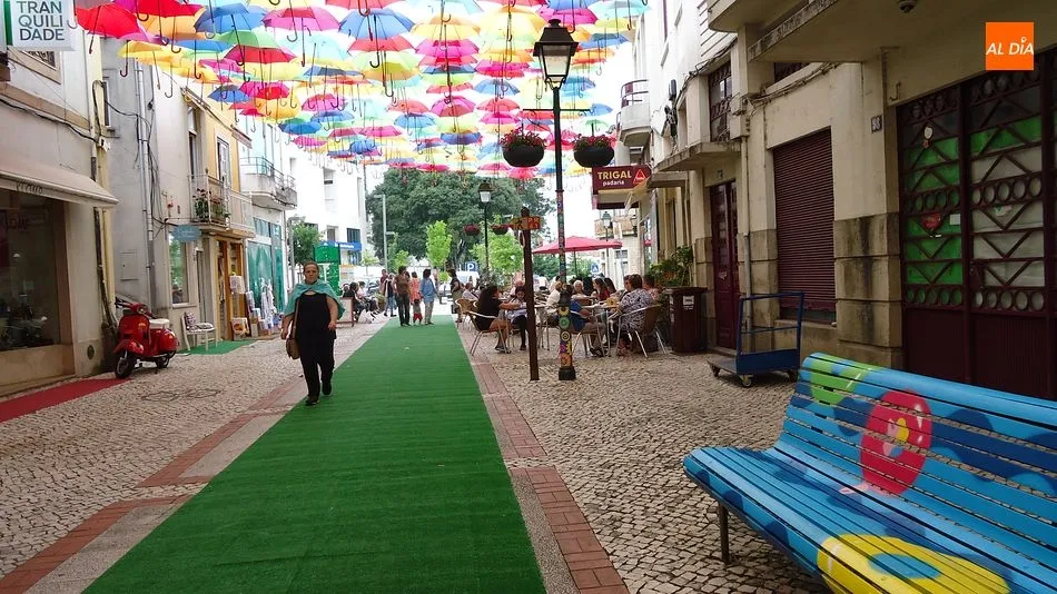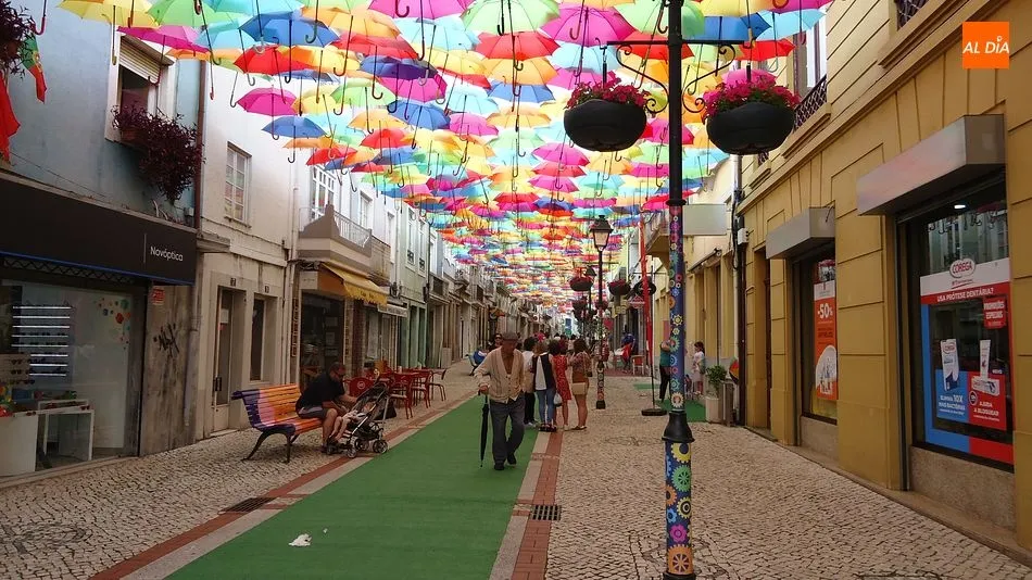 La portuguesa localidad de Águeda se agita al vaivén de los colores del verano, que llenan las calles de su centro histórico en forma de sombrillas, cintas, bancos, farolas, escaleras, troncos,?Todo lo que se pueda colorear, en Águeda se pinta.