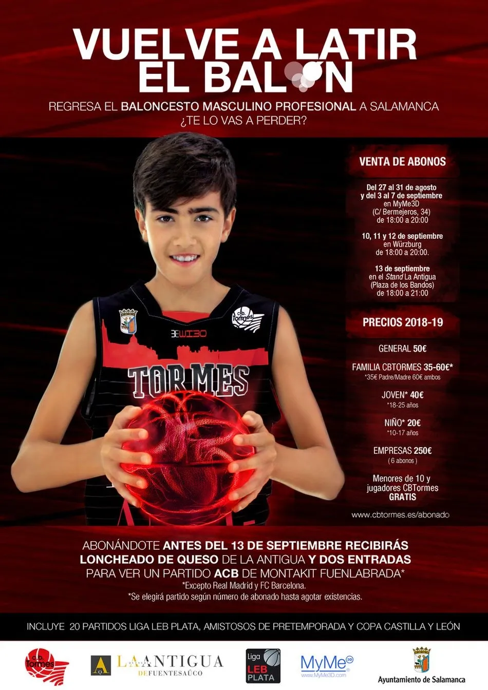 El CB Tormes ya tiene todo listo para que sus aficionados puedan disfrutar de esta atractiva andadura en LEB Plata bajo un lema que pretende llegar al ?corazón? de sus seguidores, ?Vuelve a latir el balón?. Por este motivo, El club salmantino, con la intención de que el equipo esté lo más acompañado posible los viernes en Würzburg, ha cerrado precios muy asequibles.