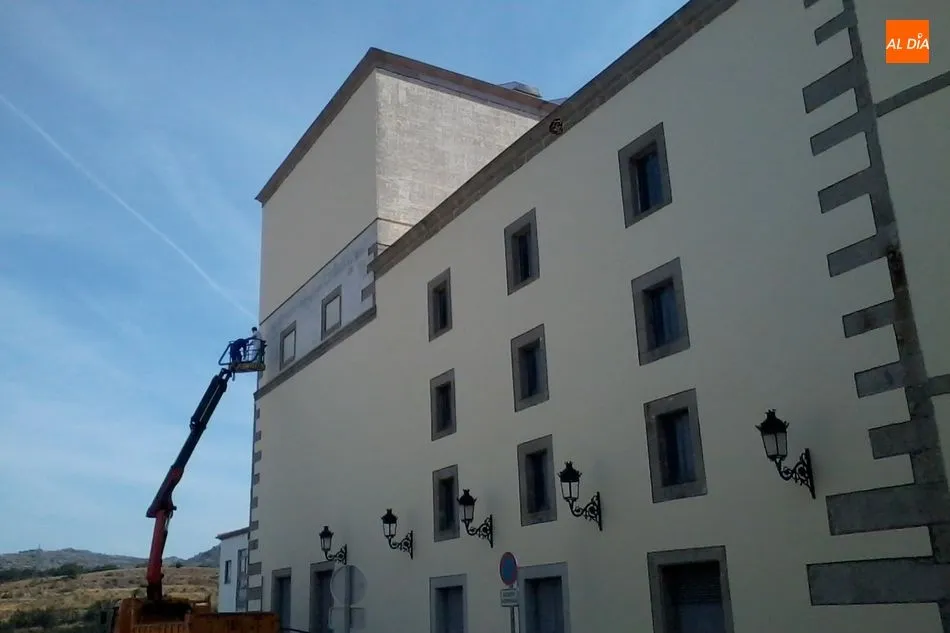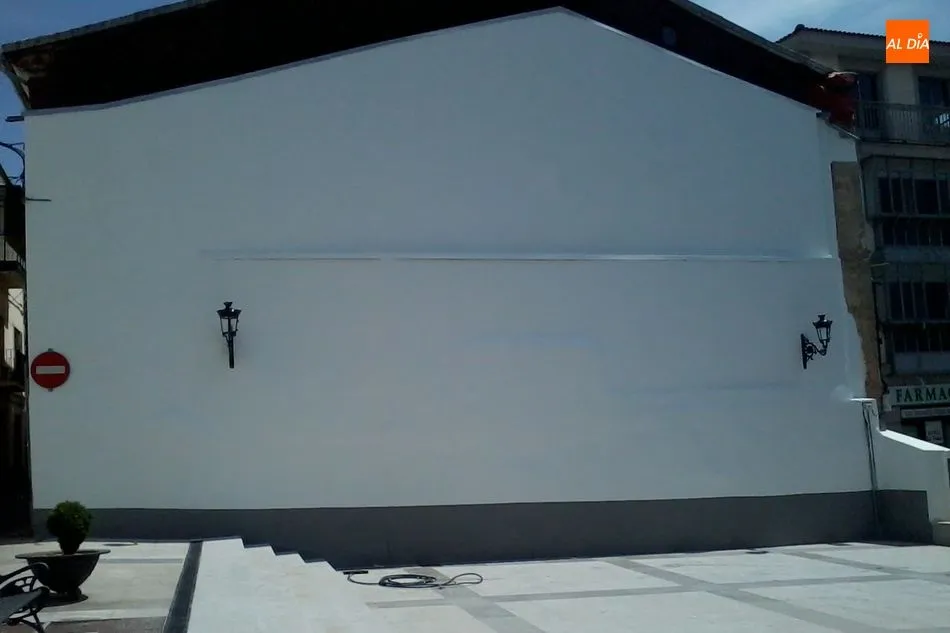 En la pared del edificio colindante a dicho solar y con vistas a la plaza, se han colocado sendas farolas, similares a las del edificio del teatro, que está siendo repintado en la actualidad. El espacio diáfano que queda entre ambas será un lugar adecuado para proyecciones al aire libre durante las noches veraniegas.