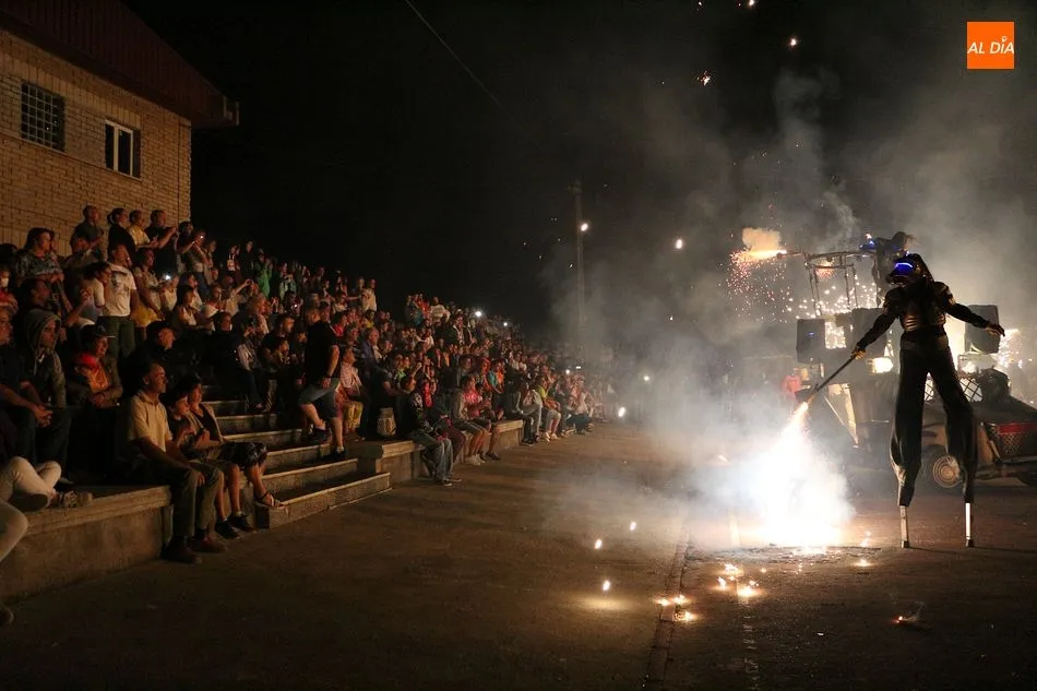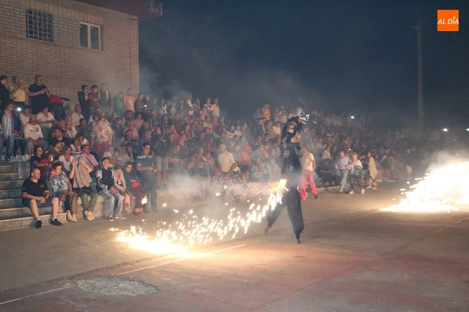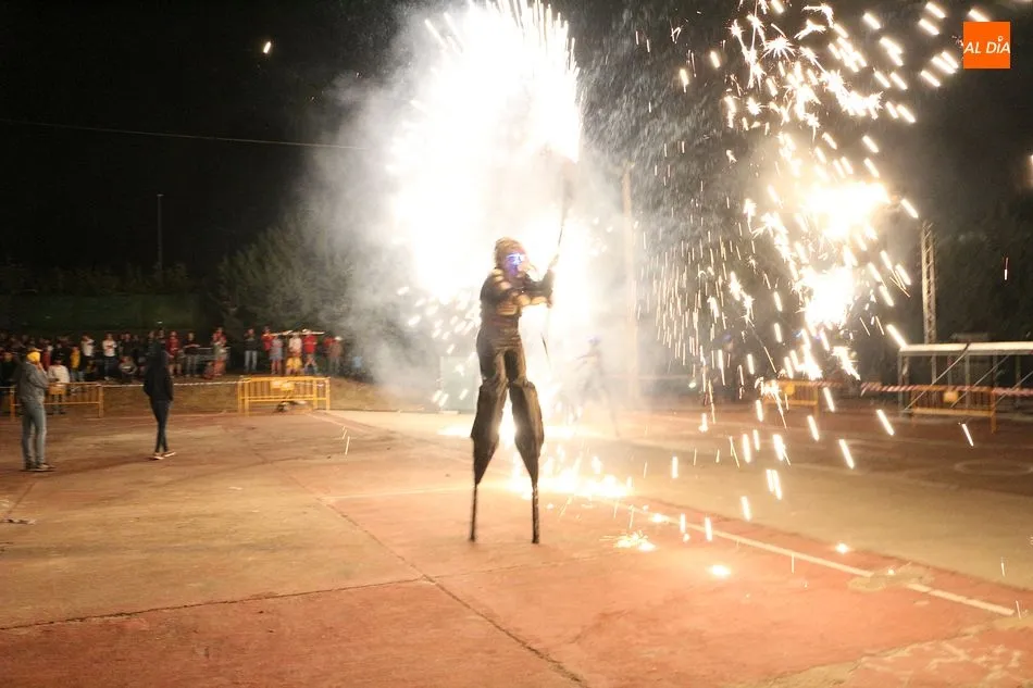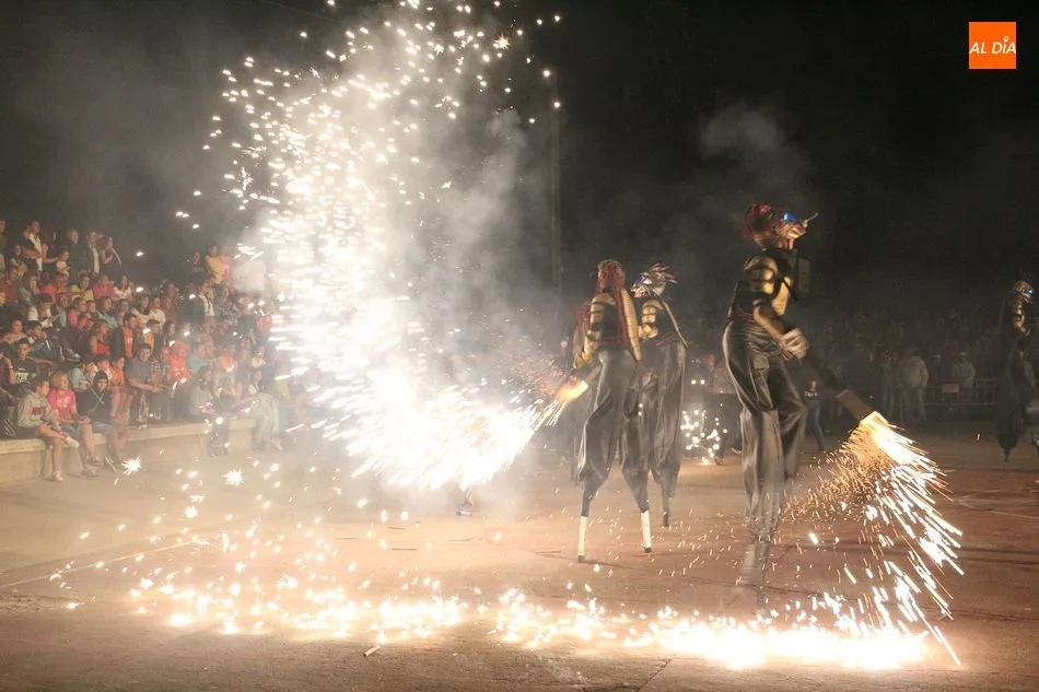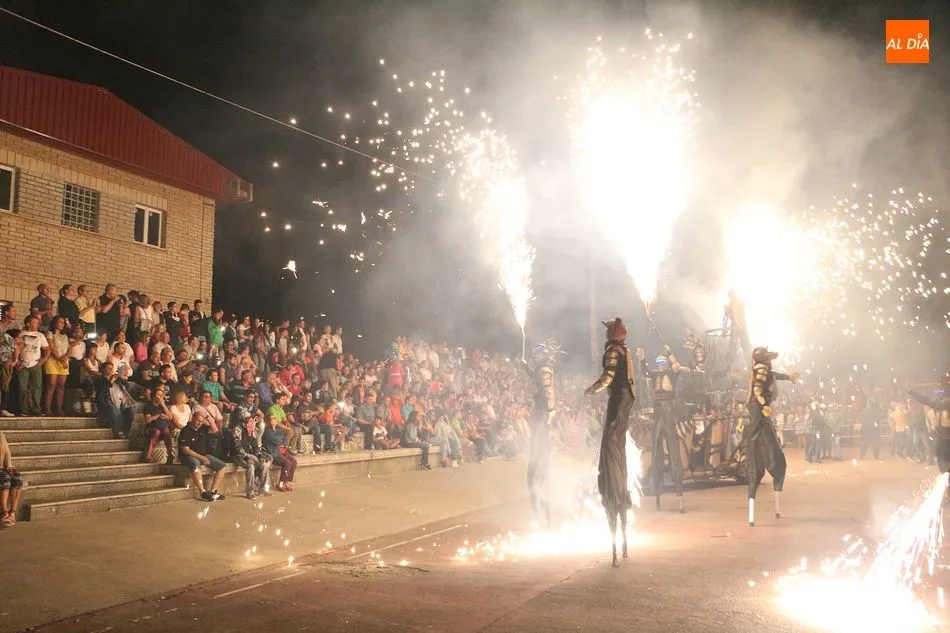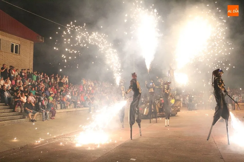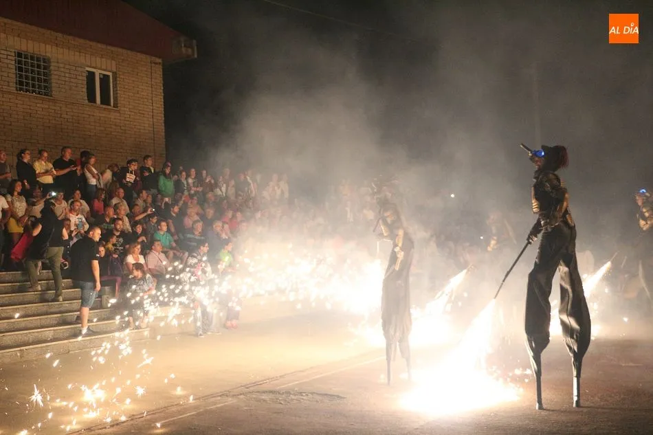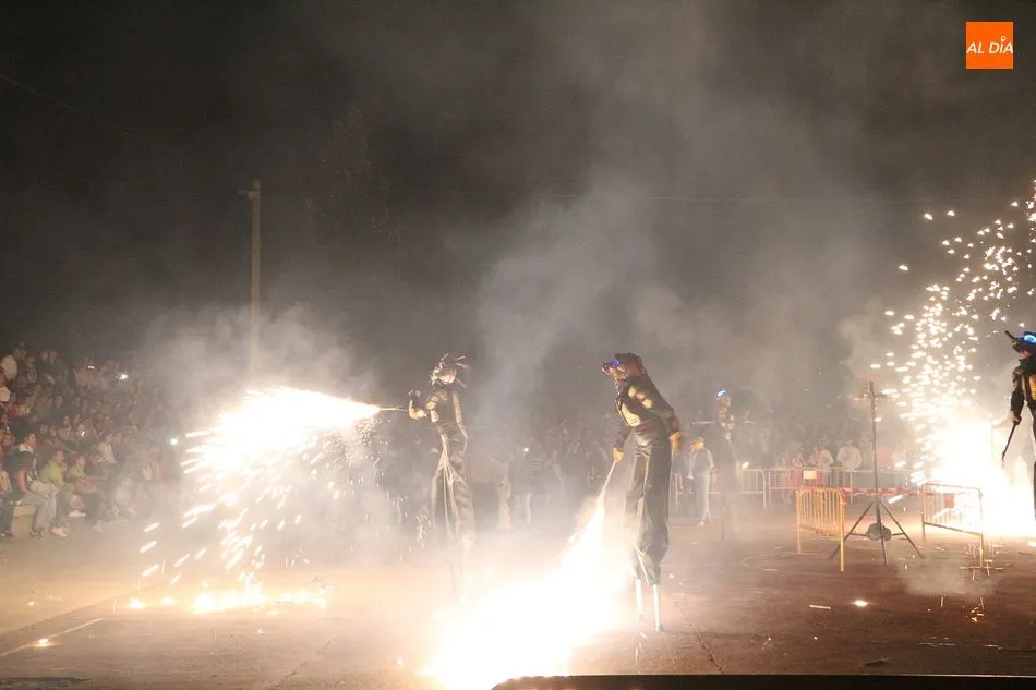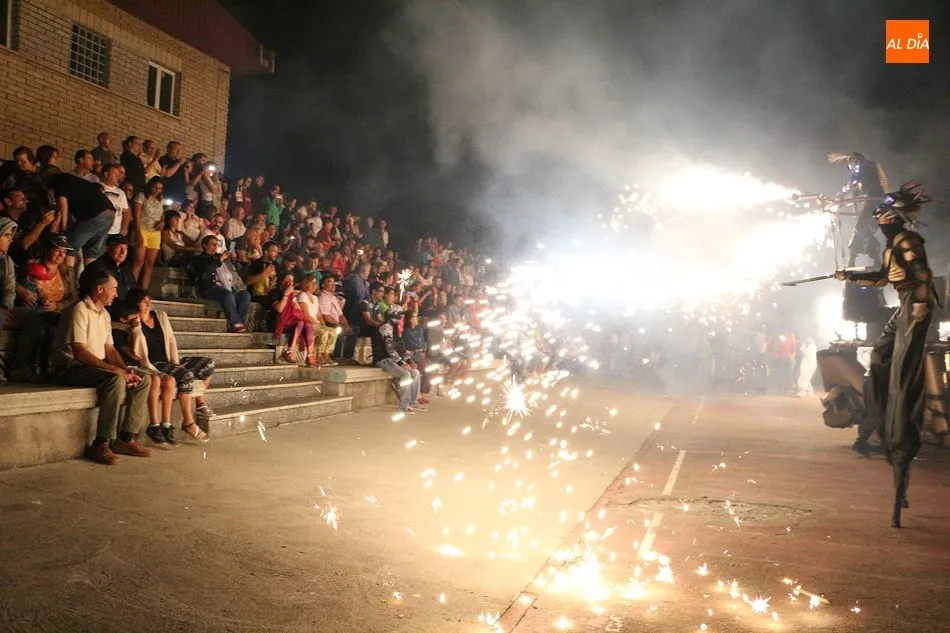 El pasacalles se detuvo a la altura del cruce con la carretera de Valdelacasa para un montaje de chispas de gran tamaño, y continuó camino hasta el recinto de espectáculos, en la bajada de las piscinas, donde la compañía ofreció el grueso del espectáculo, con fuegos artificiales, más cohetes, chispas y la espectacular actuación de malabares y escupefuegos. Una traca final para unos festejos de Guijuelo que se despiden por todo lo alto con gran éxito de convocatoria atrayendo a miles de personas en los días de la programación festiva.