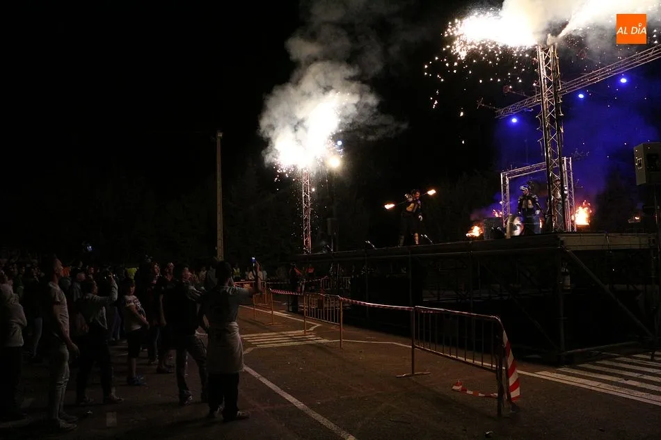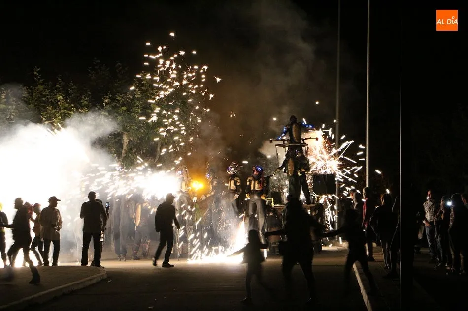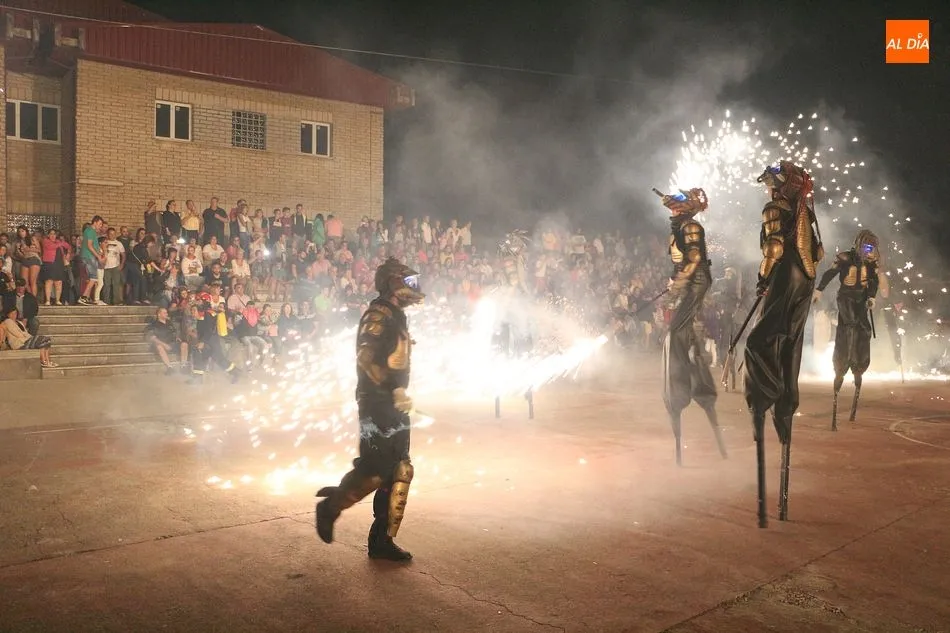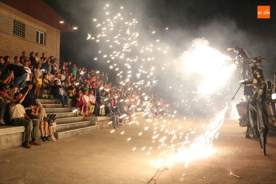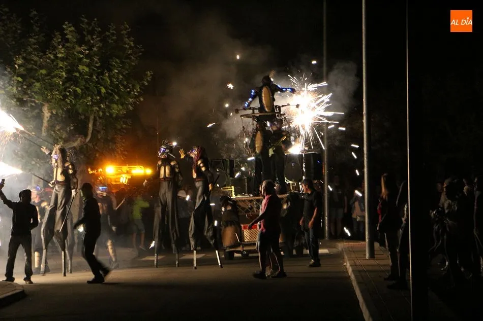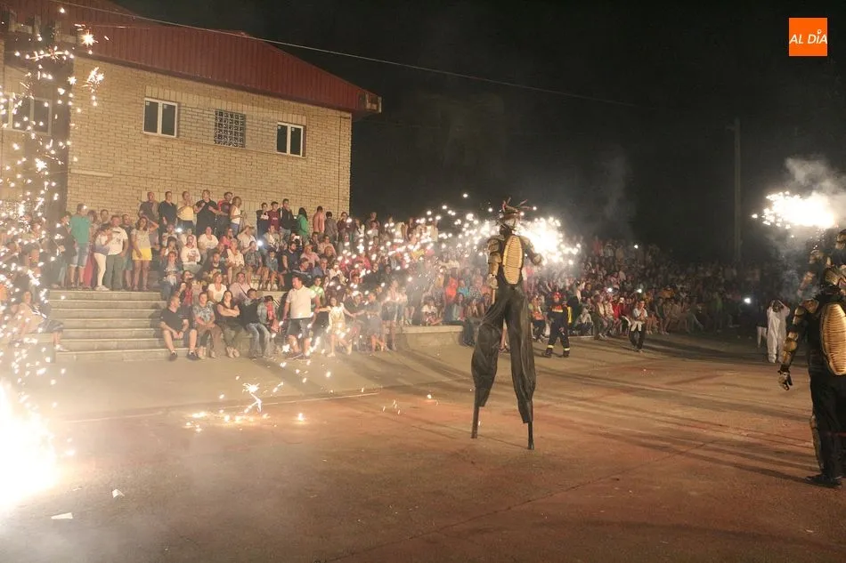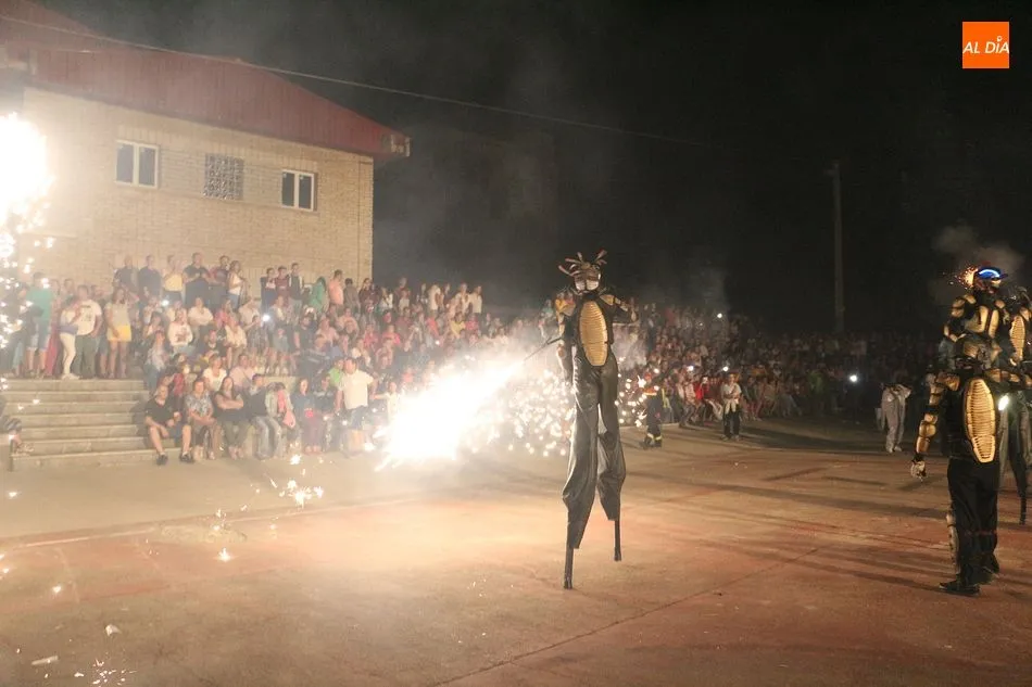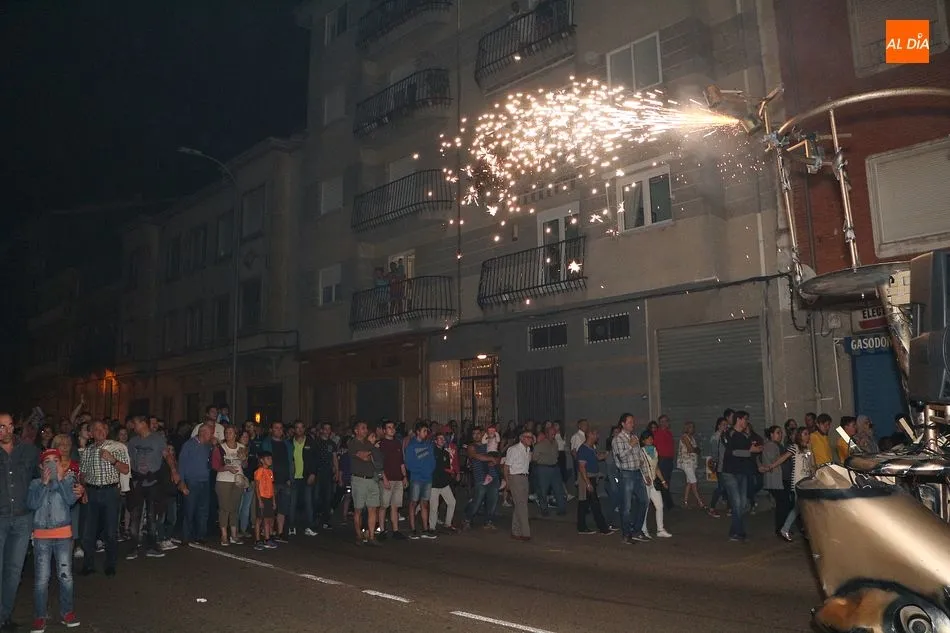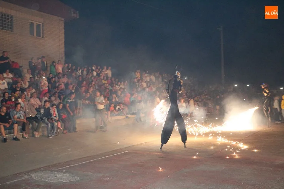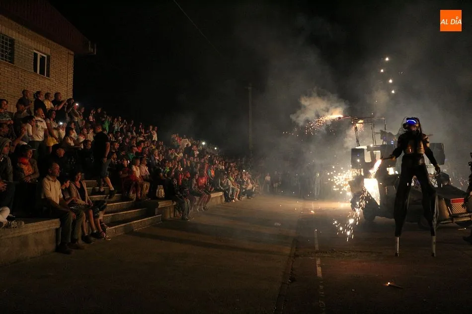 El pasacalles se detuvo a la altura del cruce con la carretera de Valdelacasa para un montaje de chispas de gran tamaño, y continuó camino hasta el recinto de espectáculos, en la bajada de las piscinas, donde la compañía ofreció el grueso del espectáculo, con fuegos artificiales, más cohetes, chispas y la espectacular actuación de malabares y escupefuegos. Una traca final para unos festejos de Guijuelo que se despiden por todo lo alto con gran éxito de convocatoria atrayendo a miles de personas en los días de la programación festiva.