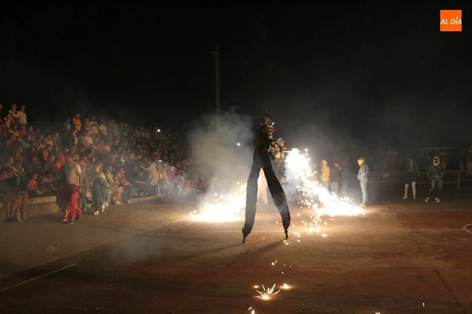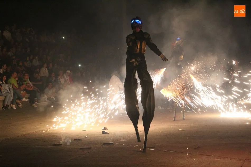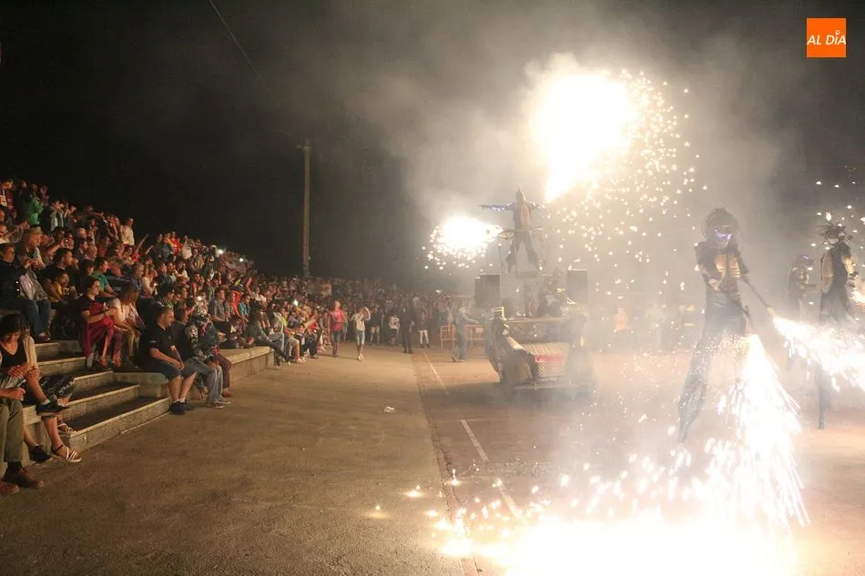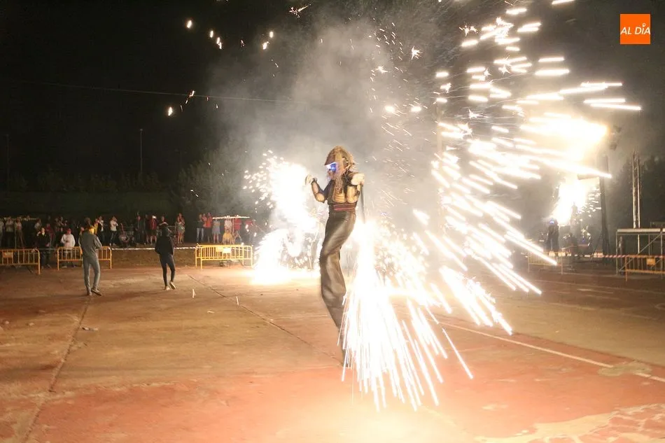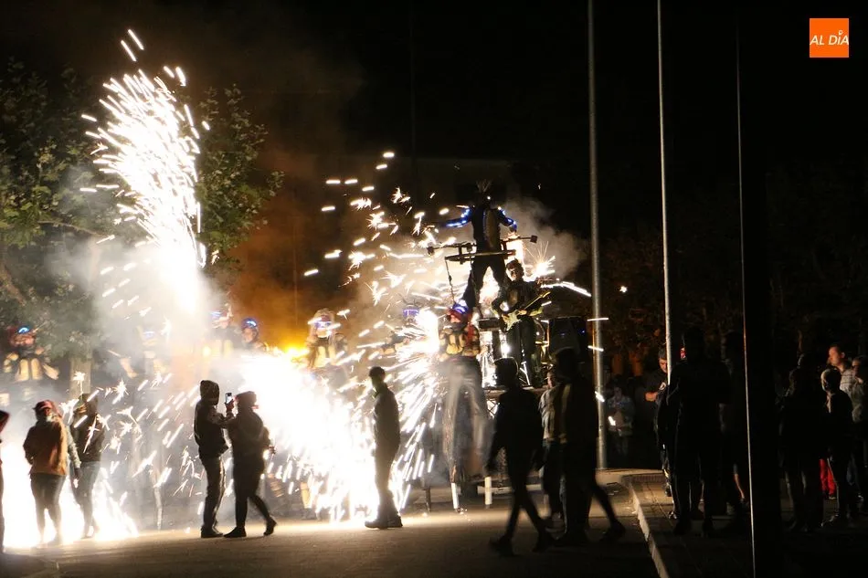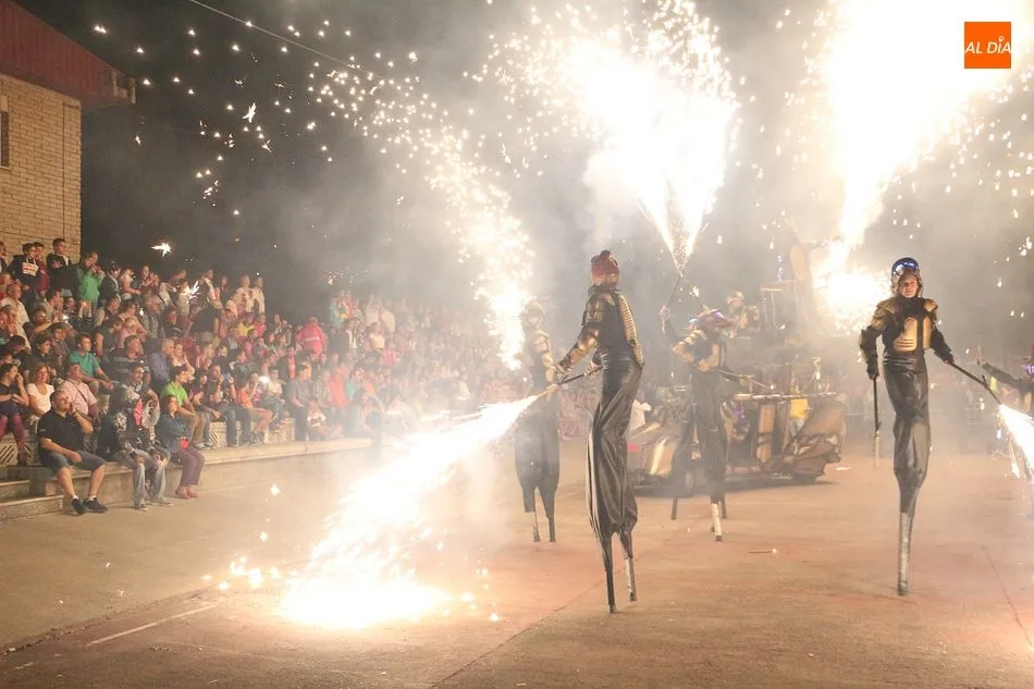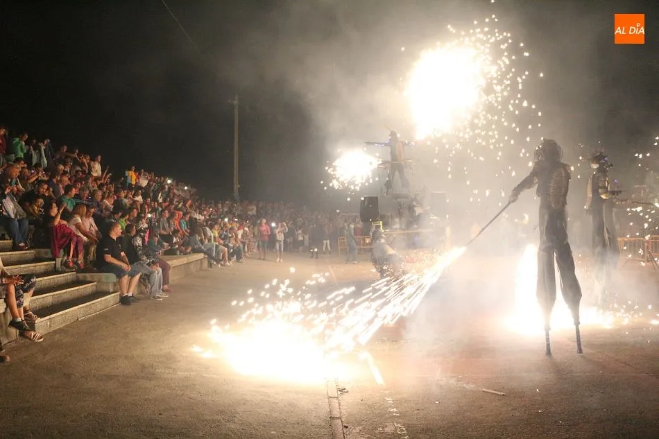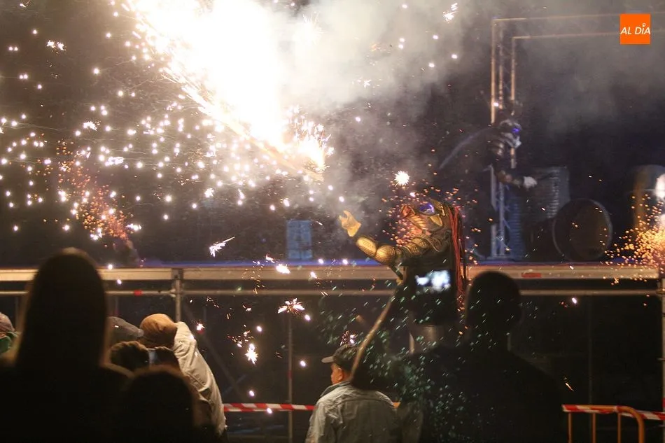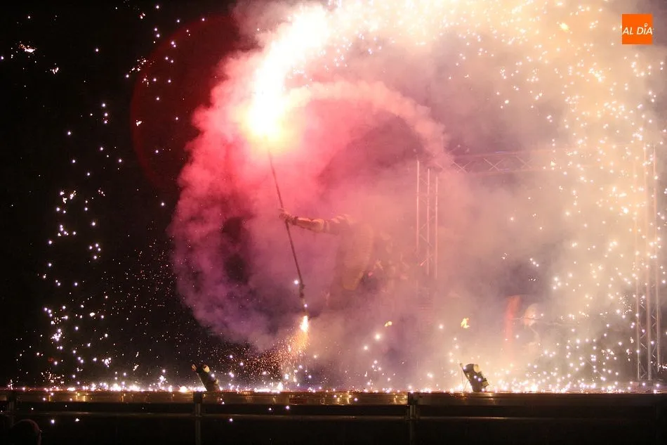 El pasacalles se detuvo a la altura del cruce con la carretera de Valdelacasa para un montaje de chispas de gran tamaño, y continuó camino hasta el recinto de espectáculos, en la bajada de las piscinas, donde la compañía ofreció el grueso del espectáculo, con fuegos artificiales, más cohetes, chispas y la espectacular actuación de malabares y escupefuegos. Una traca final para unos festejos de Guijuelo que se despiden por todo lo alto con gran éxito de convocatoria atrayendo a miles de personas en los días de la programación festiva.