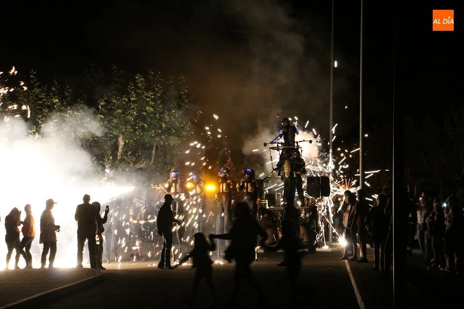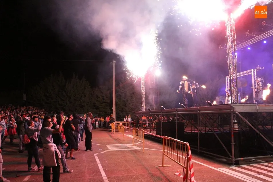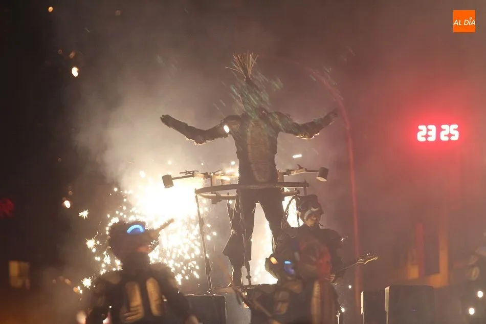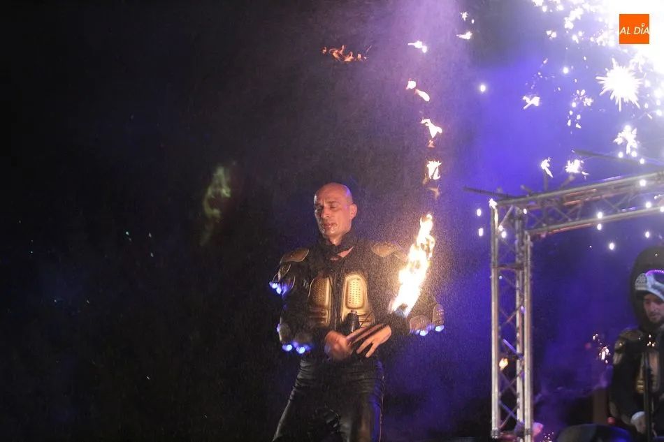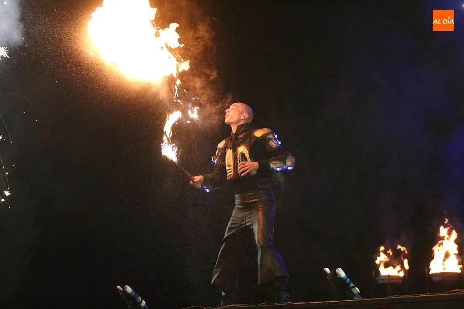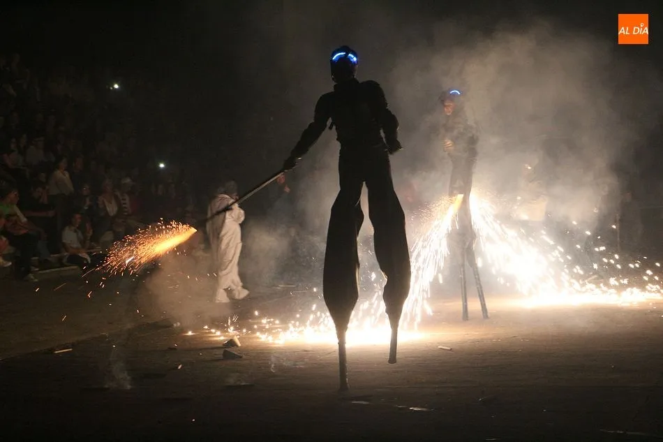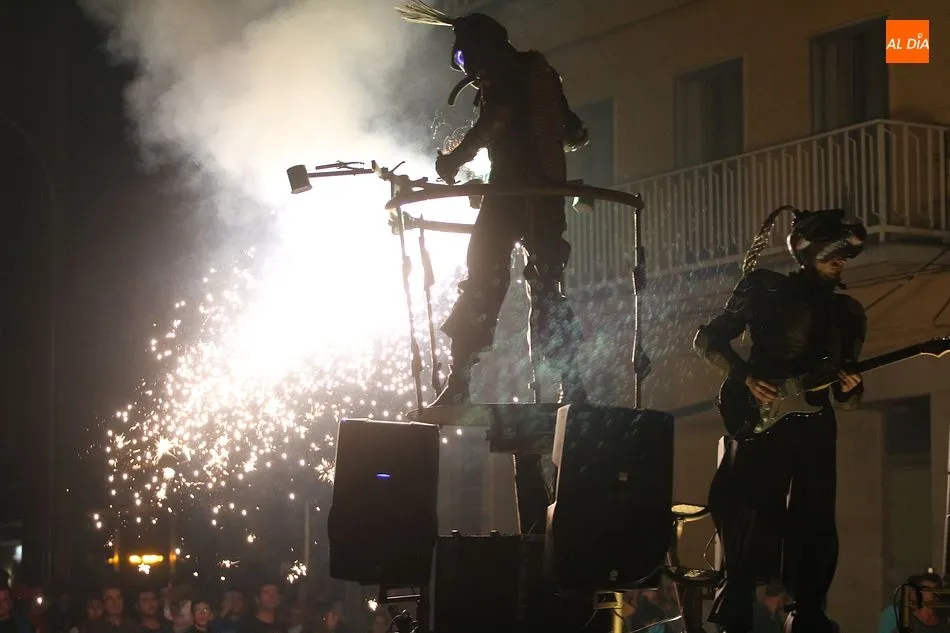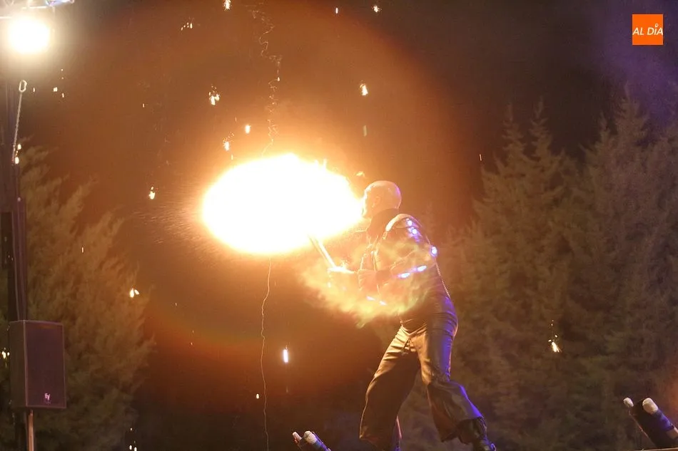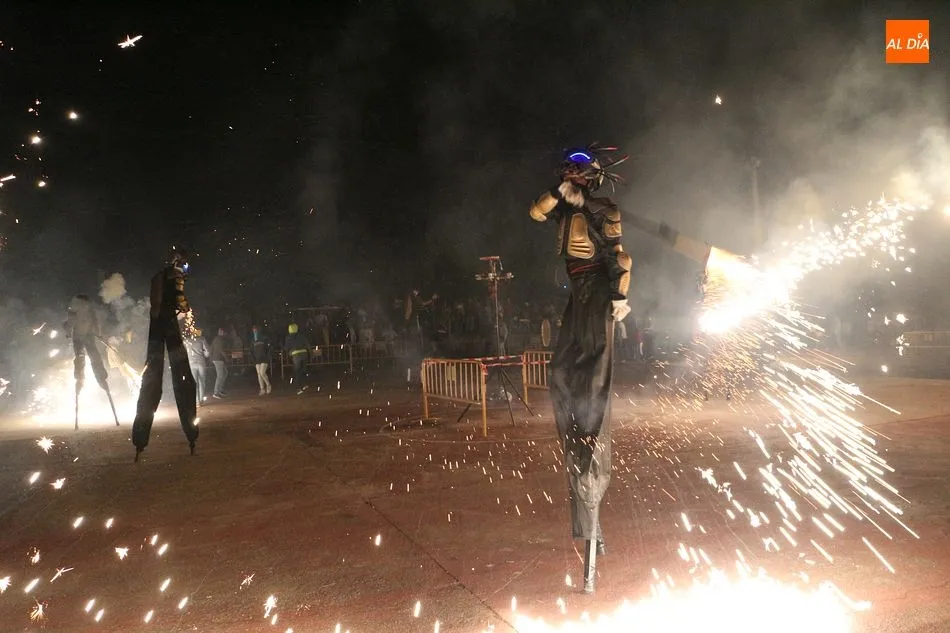 El pasacalles se detuvo a la altura del cruce con la carretera de Valdelacasa para un montaje de chispas de gran tamaño, y continuó camino hasta el recinto de espectáculos, en la bajada de las piscinas, donde la compañía ofreció el grueso del espectáculo, con fuegos artificiales, más cohetes, chispas y la espectacular actuación de malabares y escupefuegos. Una traca final para unos festejos de Guijuelo que se despiden por todo lo alto con gran éxito de convocatoria atrayendo a miles de personas en los días de la programación festiva.