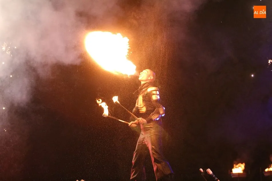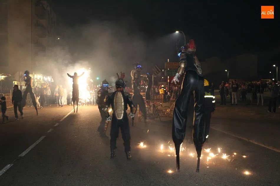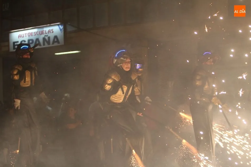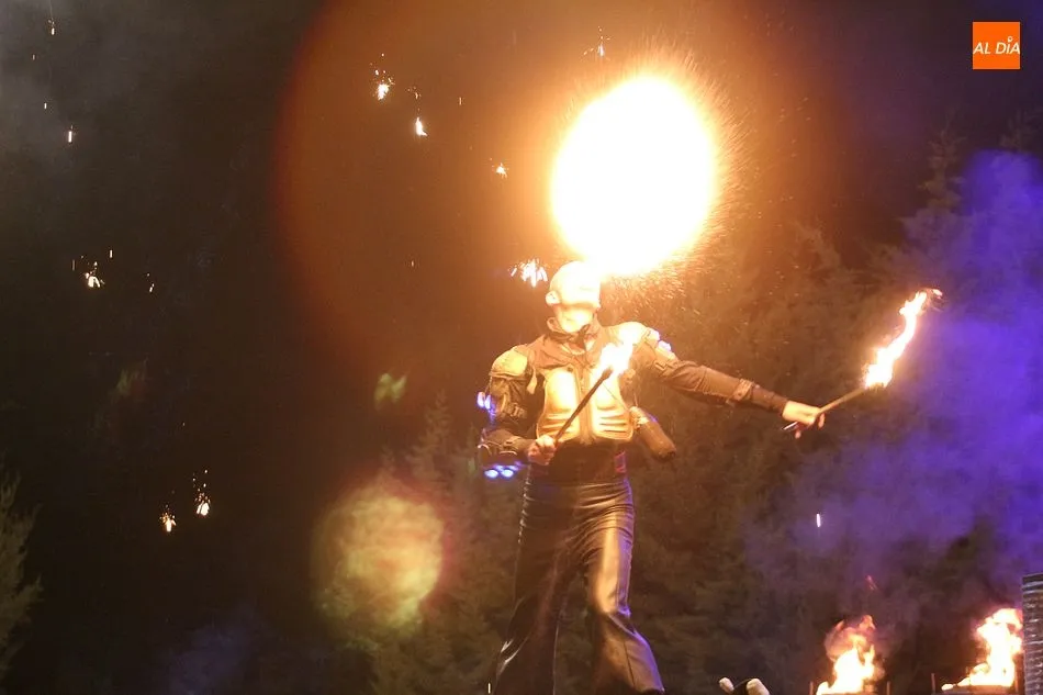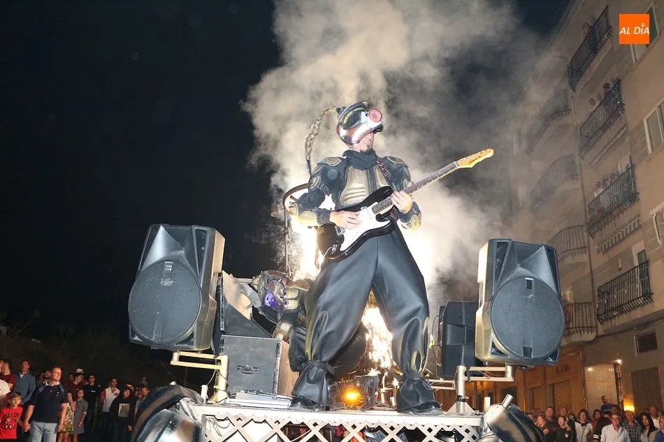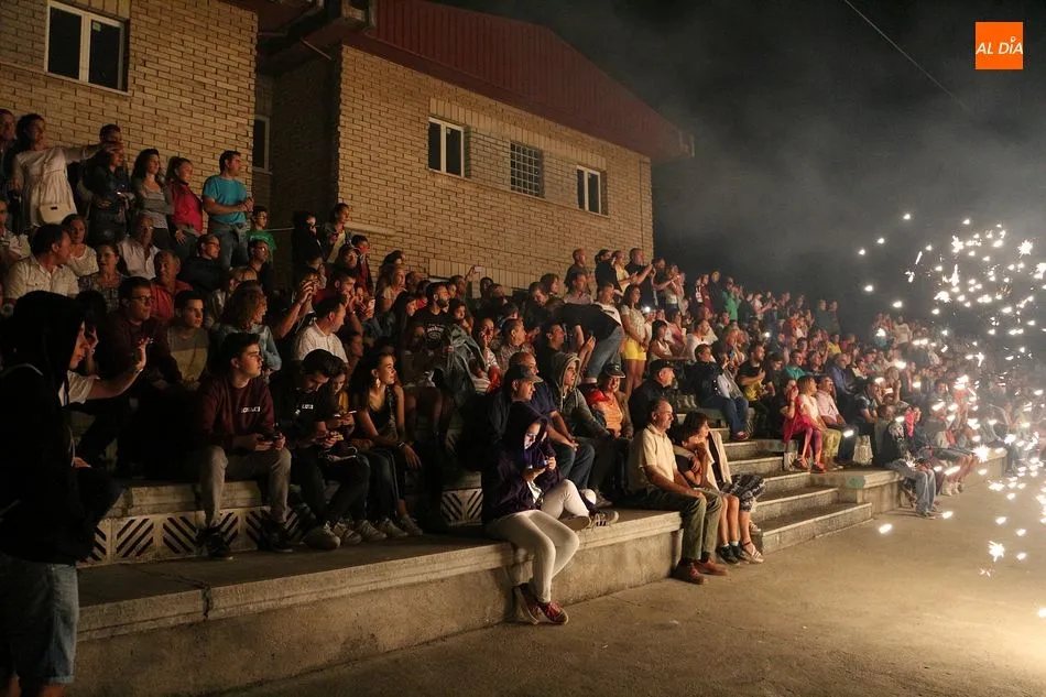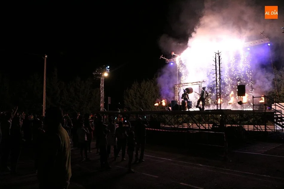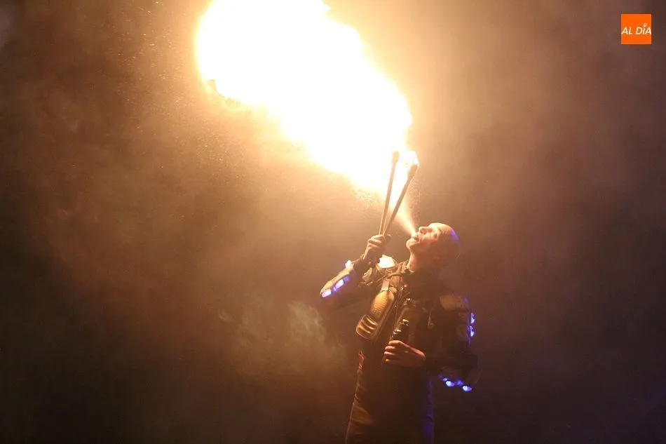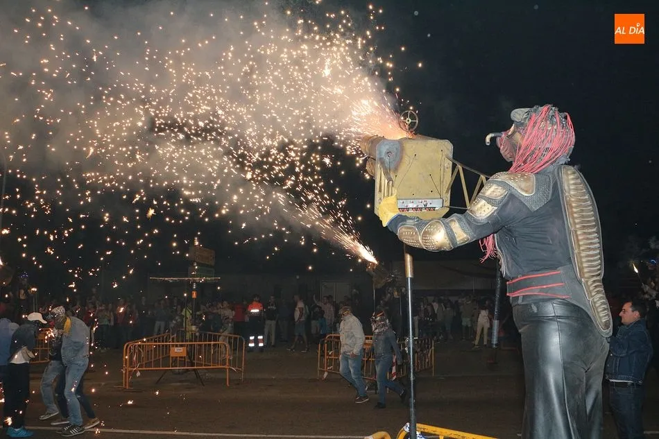 El pasacalles se detuvo a la altura del cruce con la carretera de Valdelacasa para un montaje de chispas de gran tamaño, y continuó camino hasta el recinto de espectáculos, en la bajada de las piscinas, donde la compañía ofreció el grueso del espectáculo, con fuegos artificiales, más cohetes, chispas y la espectacular actuación de malabares y escupefuegos. Una traca final para unos festejos de Guijuelo que se despiden por todo lo alto con gran éxito de convocatoria atrayendo a miles de personas en los días de la programación festiva.