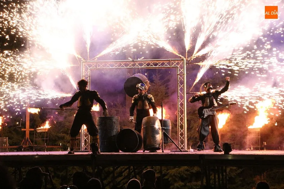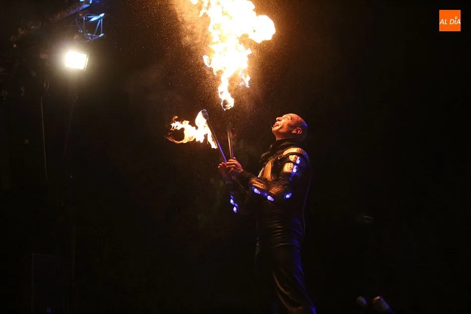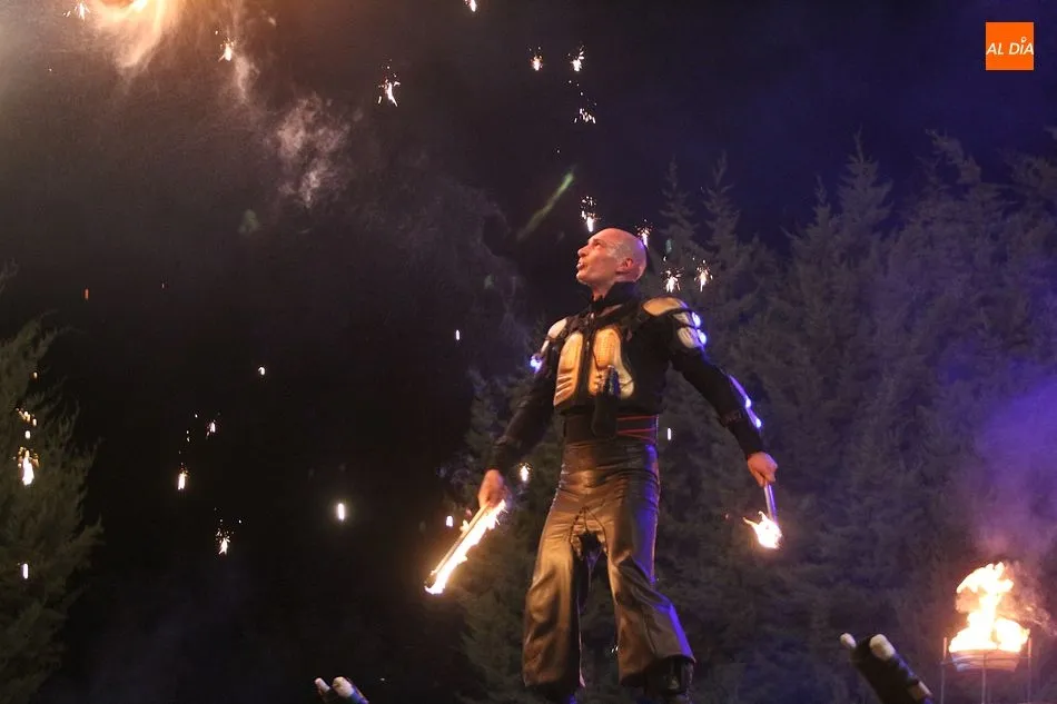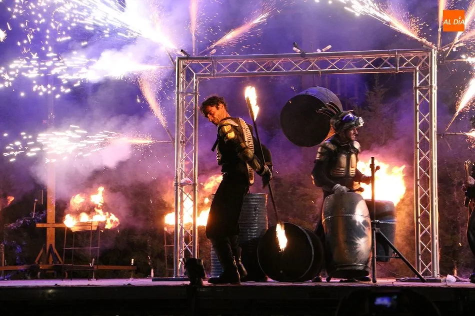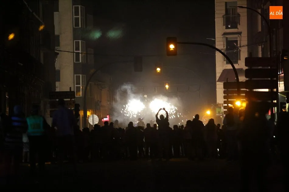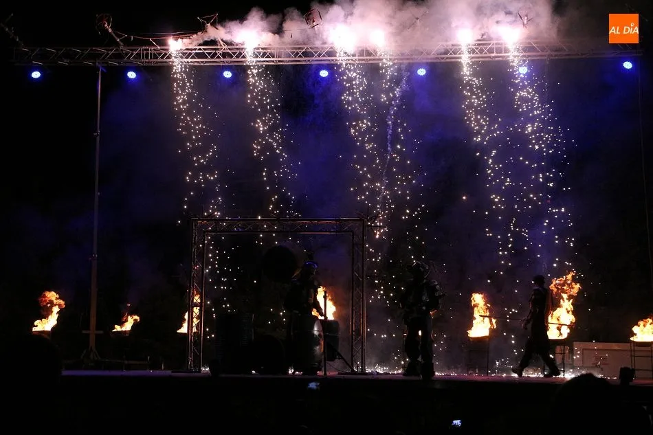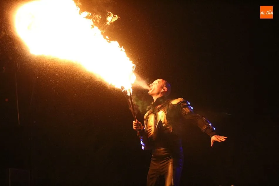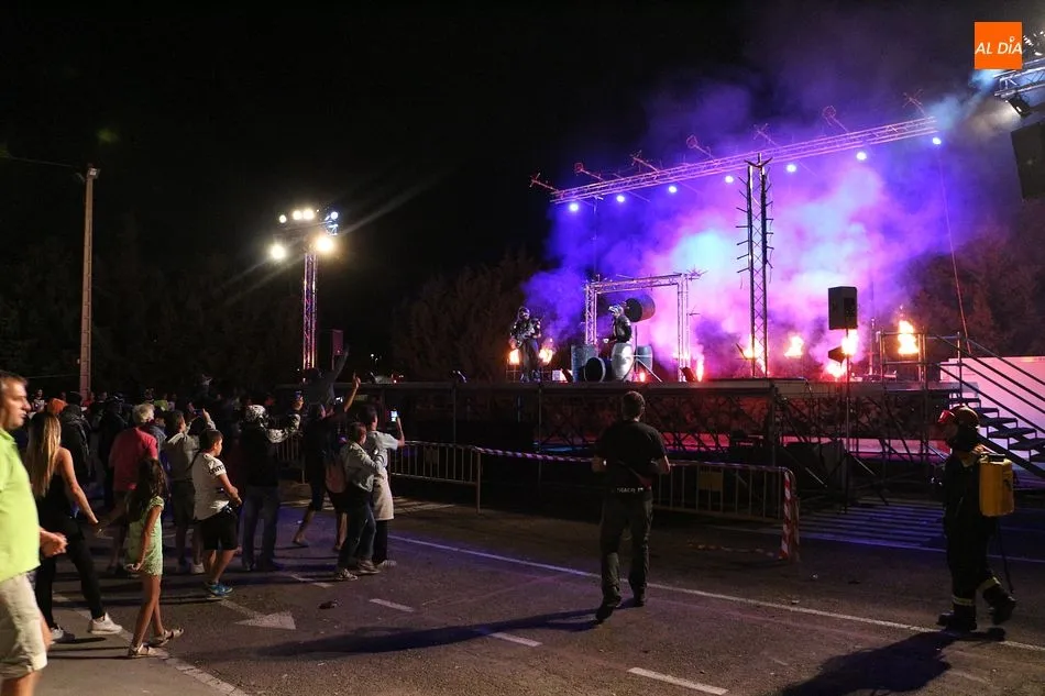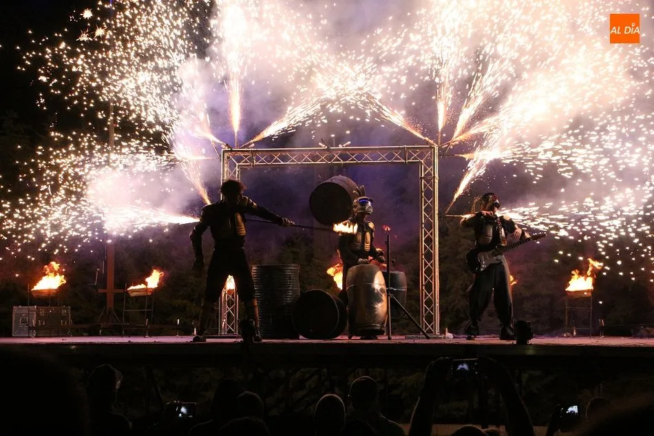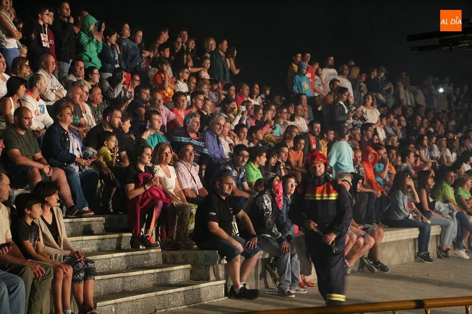 El pasacalles se detuvo a la altura del cruce con la carretera de Valdelacasa para un montaje de chispas de gran tamaño, y continuó camino hasta el recinto de espectáculos, en la bajada de las piscinas, donde la compañía ofreció el grueso del espectáculo, con fuegos artificiales, más cohetes, chispas y la espectacular actuación de malabares y escupefuegos. Una traca final para unos festejos de Guijuelo que se despiden por todo lo alto con gran éxito de convocatoria atrayendo a miles de personas en los días de la programación festiva.