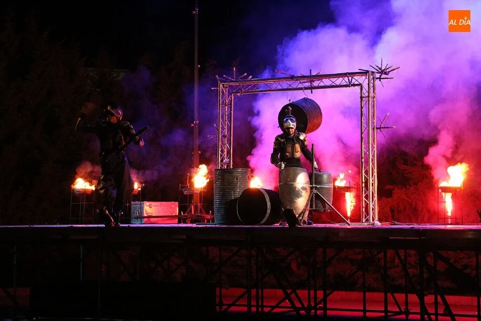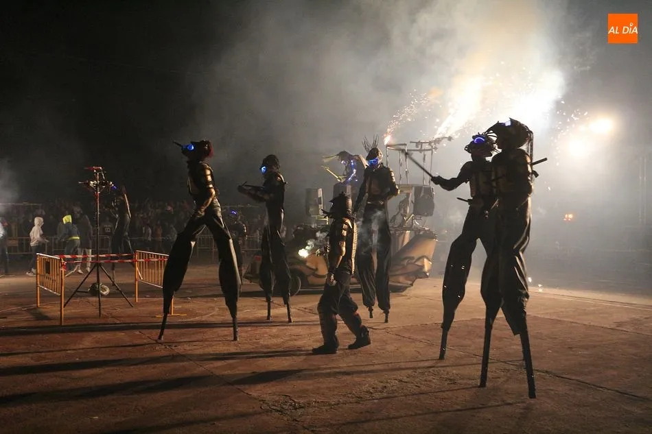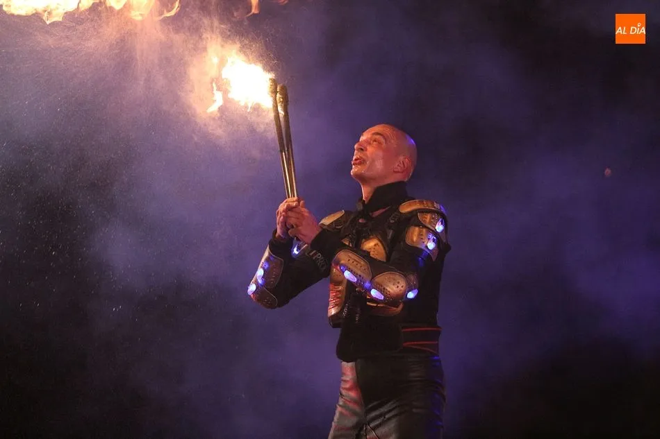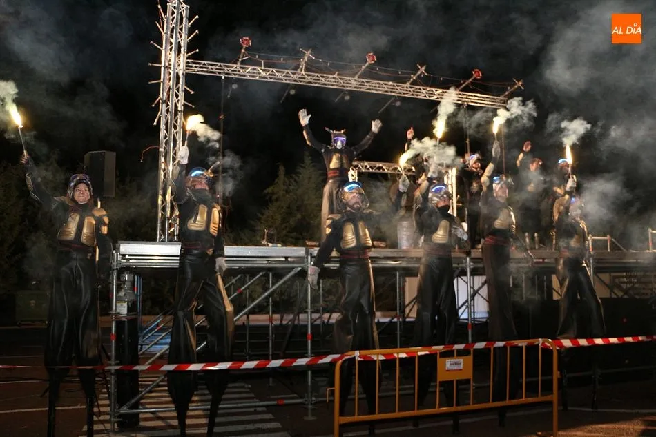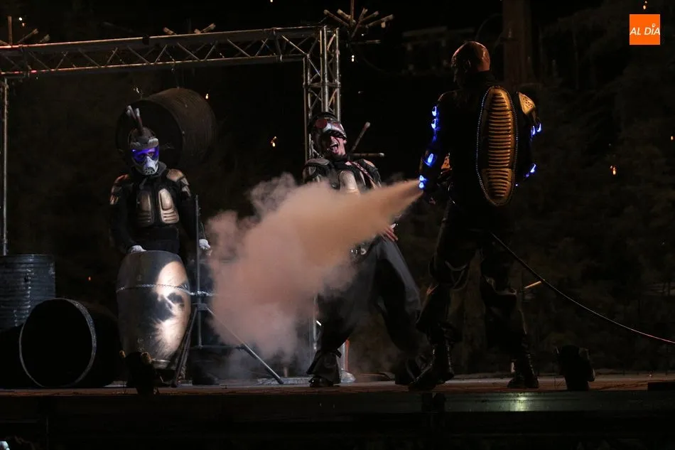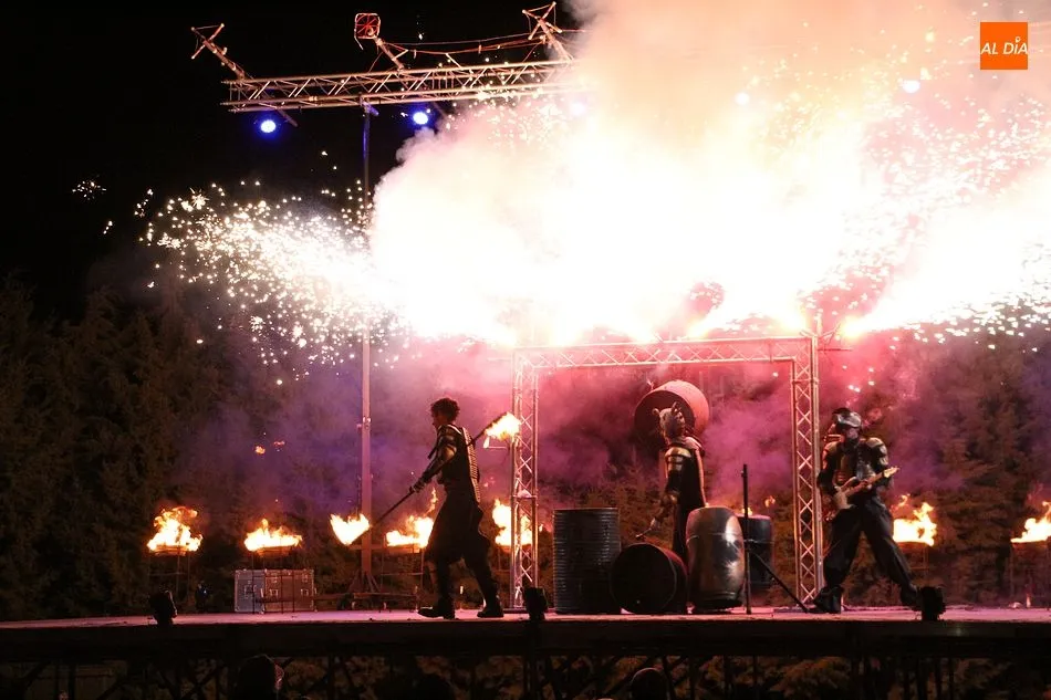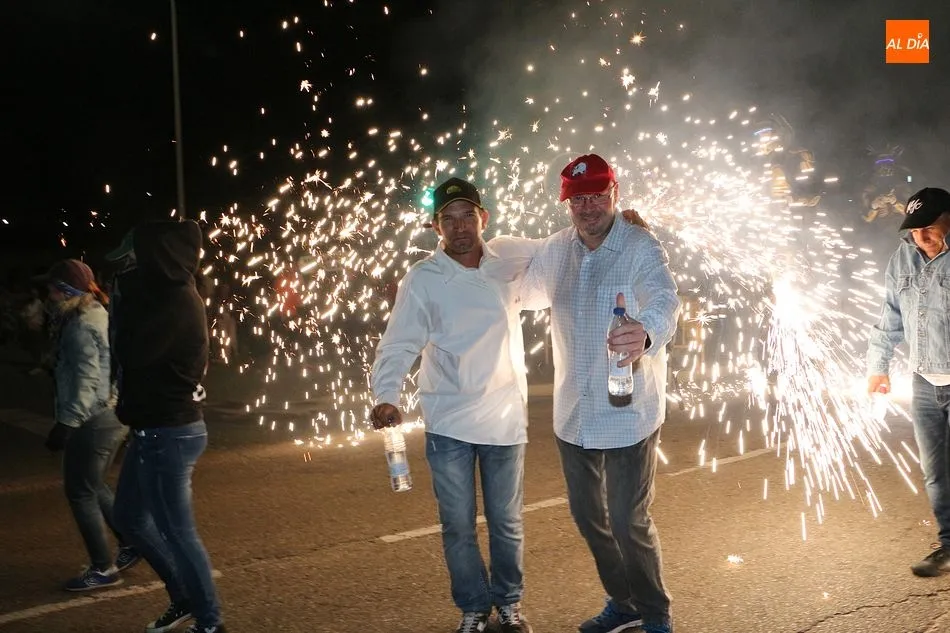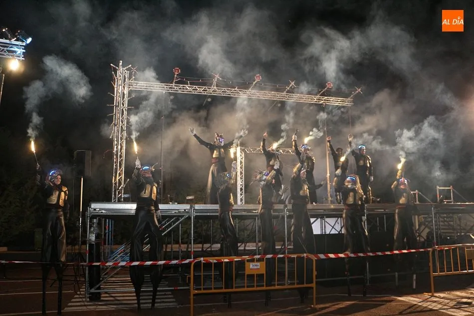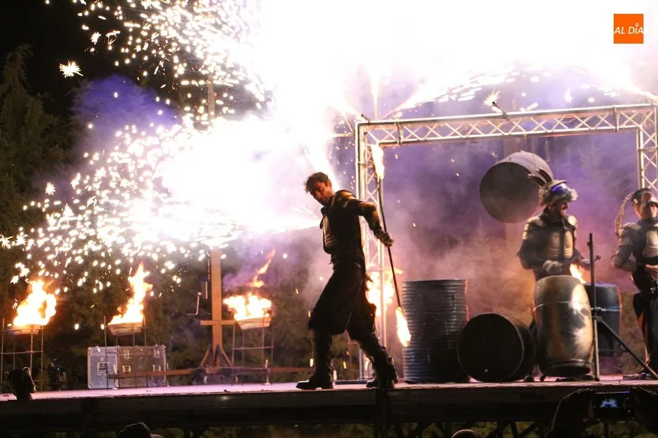 El pasacalles se detuvo a la altura del cruce con la carretera de Valdelacasa para un montaje de chispas de gran tamaño, y continuó camino hasta el recinto de espectáculos, en la bajada de las piscinas, donde la compañía ofreció el grueso del espectáculo, con fuegos artificiales, más cohetes, chispas y la espectacular actuación de malabares y escupefuegos. Una traca final para unos festejos de Guijuelo que se despiden por todo lo alto con gran éxito de convocatoria atrayendo a miles de personas en los días de la programación festiva.