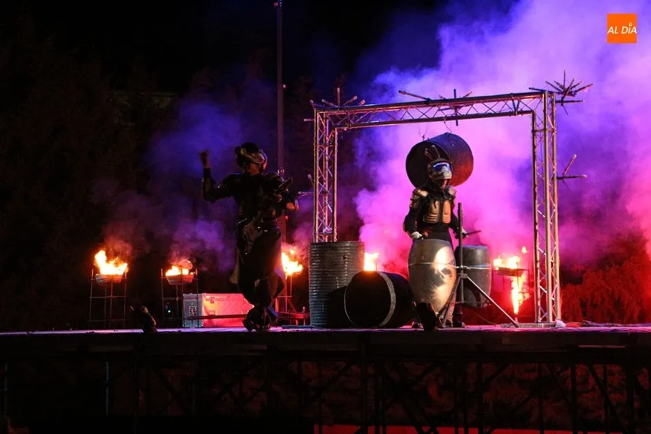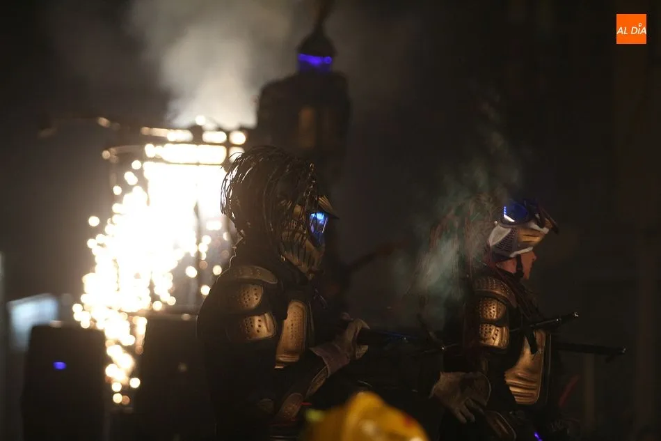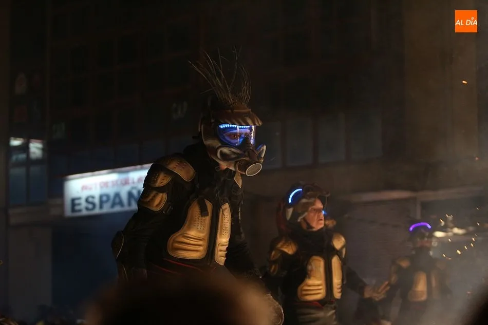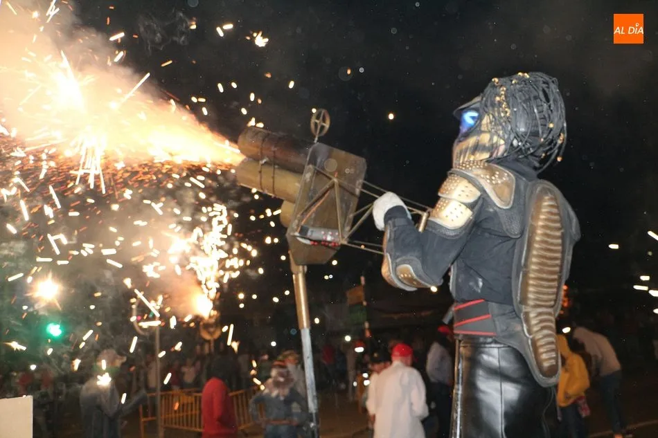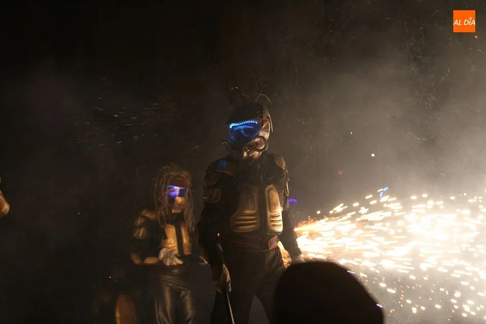 El espectacular pasacalles Raganarok ha puesto el punto final de los festejos de Guijuelo tras dos semanas de propuestas festivas, culturales y deportivas. Los vecinos de la villa acudieron a la calle Filiberto Villalaboso, a la altura del histórico edificio del reloj, para comenzar la caminata al son de la música rock y los constantes silbidos de los buscapies, cohetes y petardos de los integrantes de la compañía Kul d?Sac, quienes animaron a los guijuelenses a bañarse entre chispas y fogonazos.