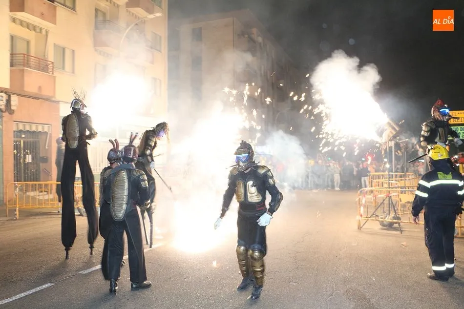 El pasacalles pirotécnico de la compañía Kul d? Sac atraviesa la villa con un espectáculo de luz, música y emoción