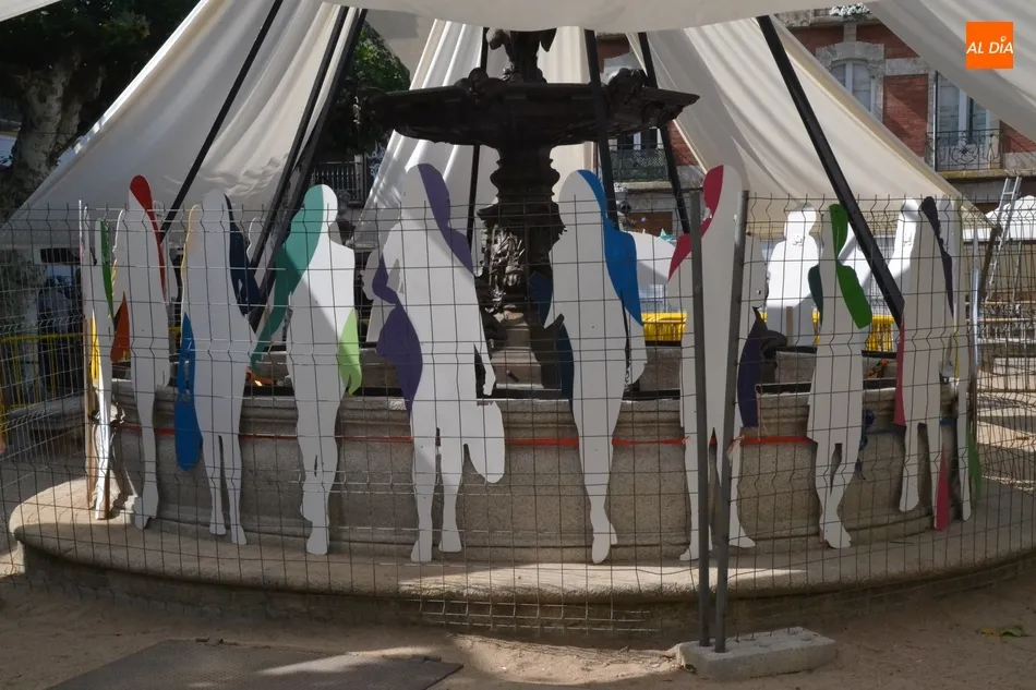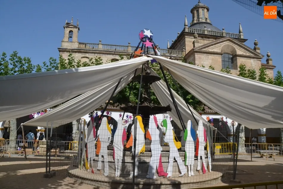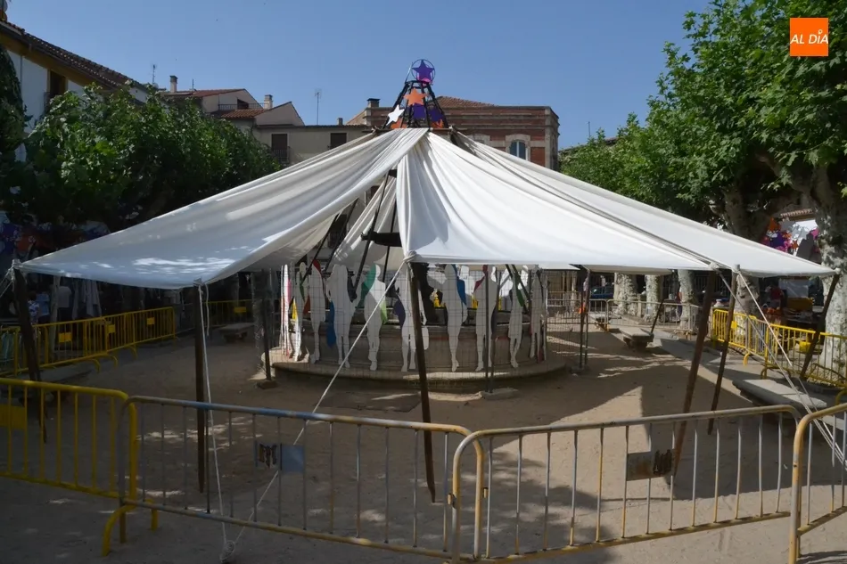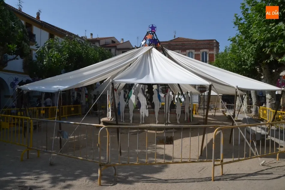 Además, los puestos también compartieron Plazuela -aunque sin influirles para el desarrollo de su actividad- con la gran ?jaima? que se ha montado en torno a la fuente, que da cobijo a una serie de siluetas repartidas por todo el contorno del vaso. Para evitar problemas, en la mañana del martes toda esa instalación decorativa estaba vallada por completo.