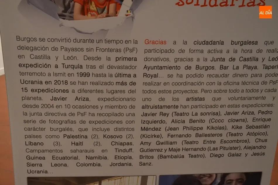 Como apéndice de la exposición principal (que se estrena en Ciudad Rodrigo) en la Casa de la Cultura también se puede encontrar una muestra que conmemora los 20 años de expediciones de la Delegación de Payasos sin Fronteras en Castilla y León. En este caso, se presenta una selección de imágenes de la quincena de expediciones realizadas por esta Delegación (la primera fue a Turquía en 1999 y la última hasta el momento a Ucrania este mismo año).
