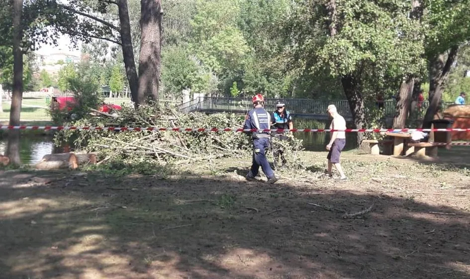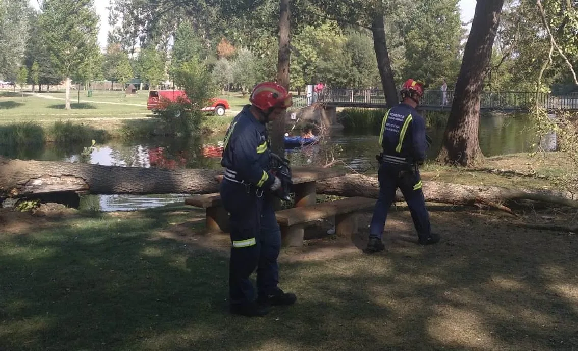 Un árbol de la isla de El Picón de Ciudad Rodrigo se vino abajo a primera hora de la tarde del martes, afortunadamente sin causar daños personales, pese a que la isla tenía una notable afluencia de usuarios en esos momentos.