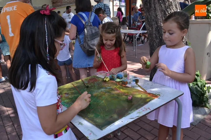 En torno a las doce y media del mediodía, la actividad se trasladaba hasta el parque La Huerta, en el que Isabel Sacristán ponía en marcha la actividad ?Pintamos la Huerta? con la que decenas de pequeños pudieron realizar murales en cartulina, además de decorar con imaginación algunas de las paredes de este recinto.