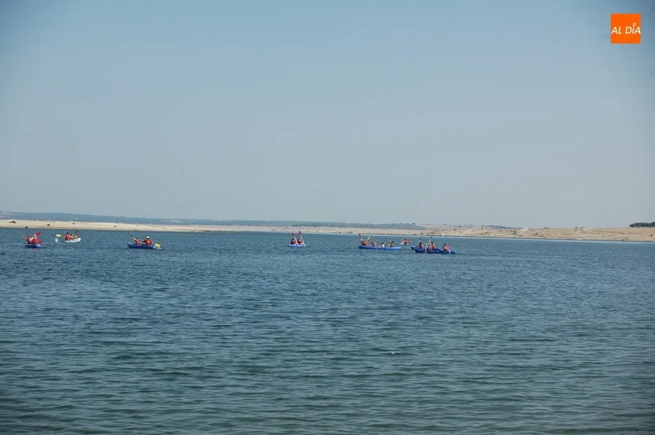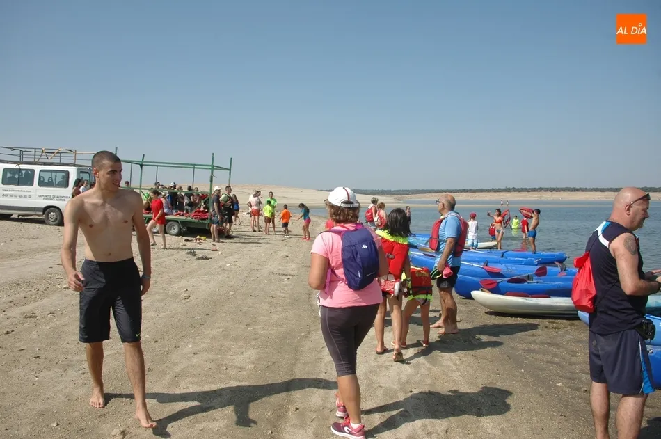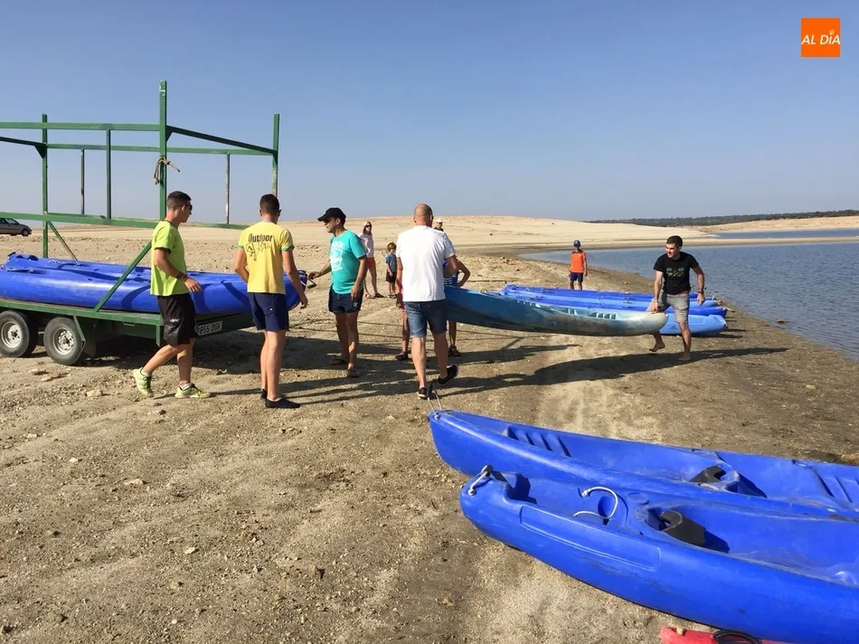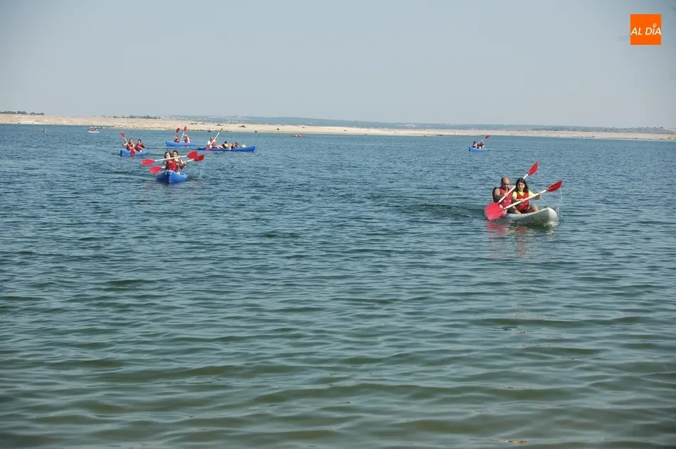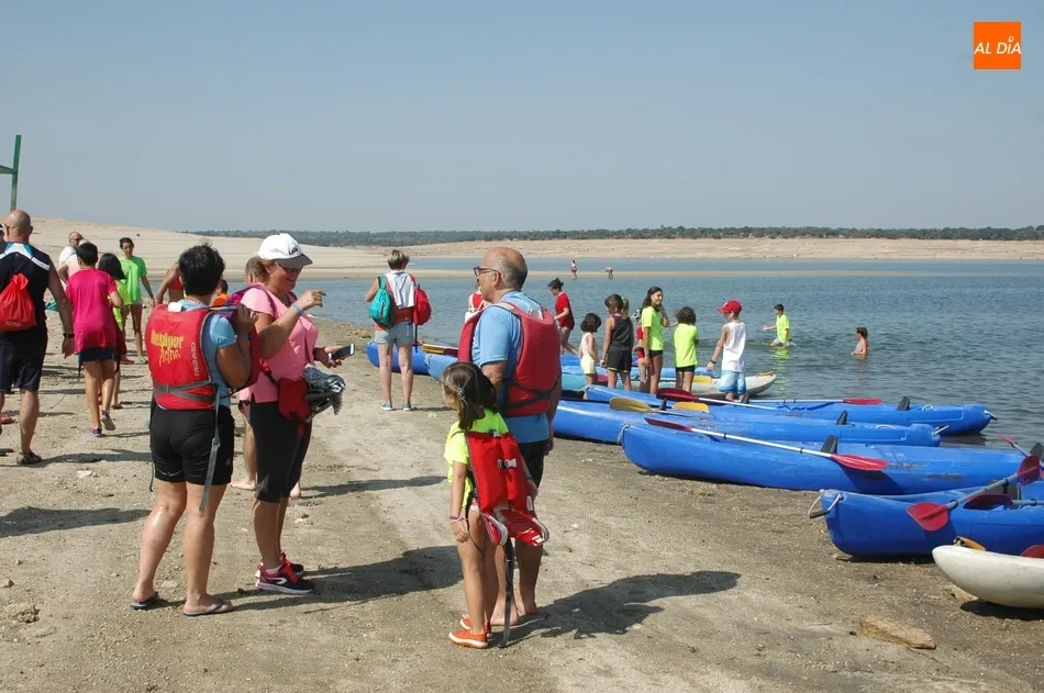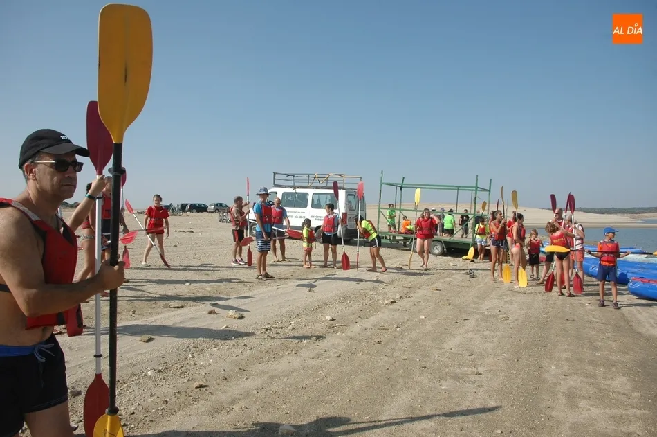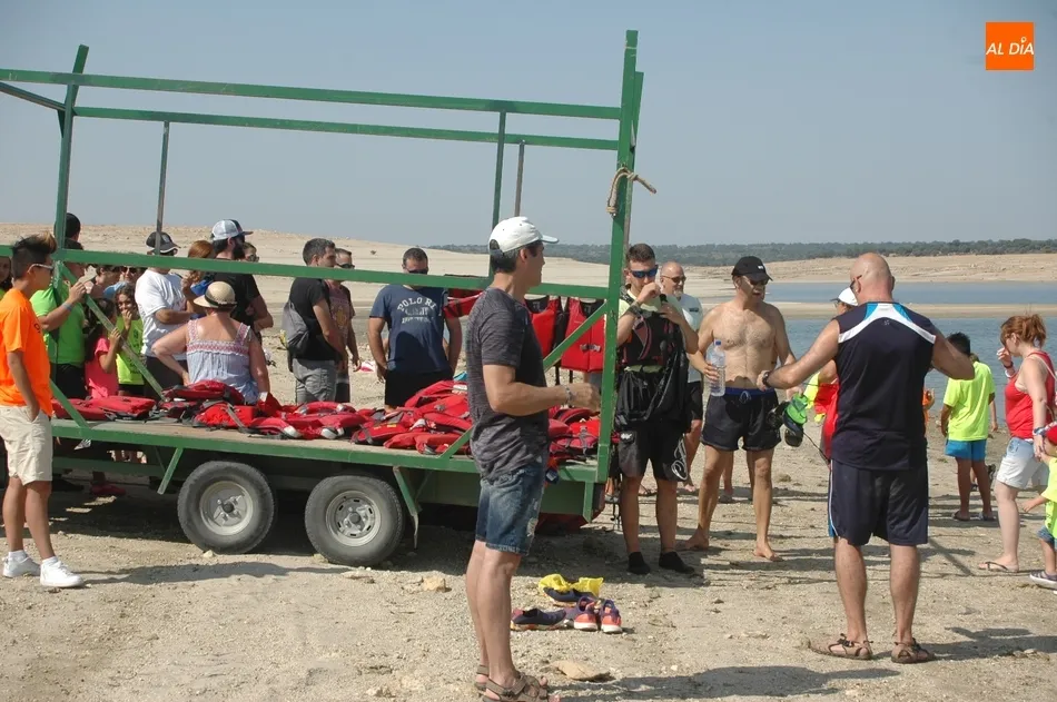 Pequeños y mayores se acercaban hasta las orillas del embalse para participar en una divertida ?regata? en el pantano, más bajo de nivel que de costumbre, pero con el suficiente atractivo como para recordar este paseo acuático, la menos para las cerca de 60 personas que se espera participen en el actividad.