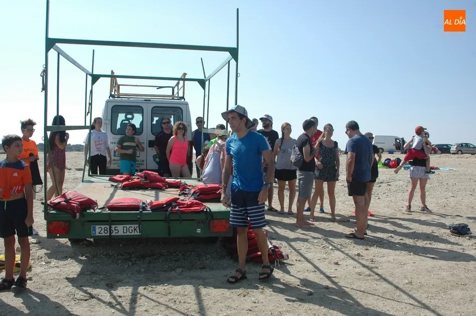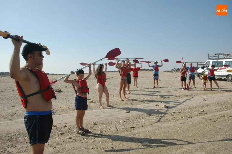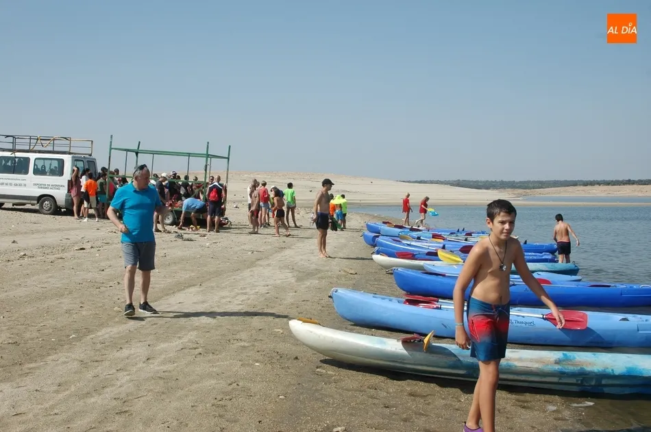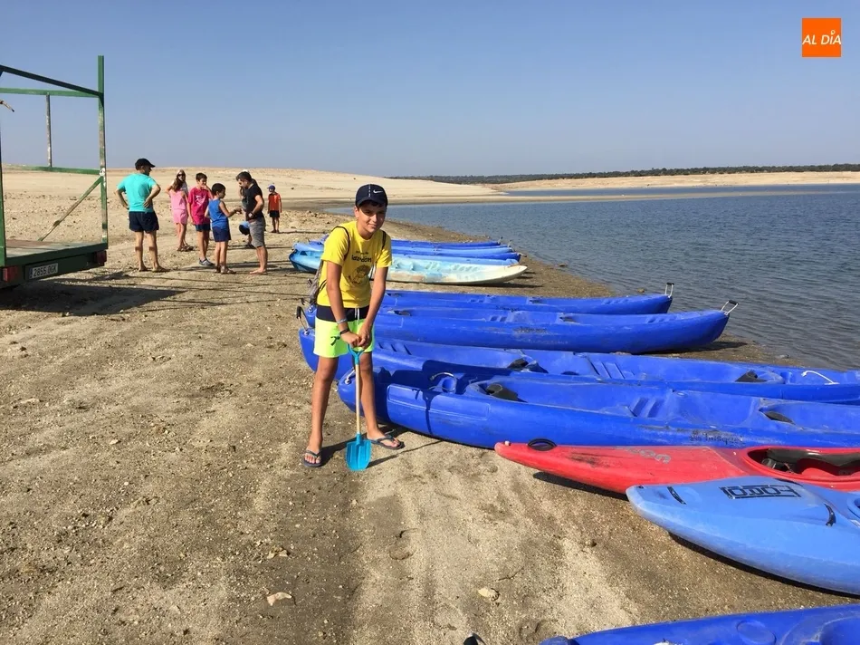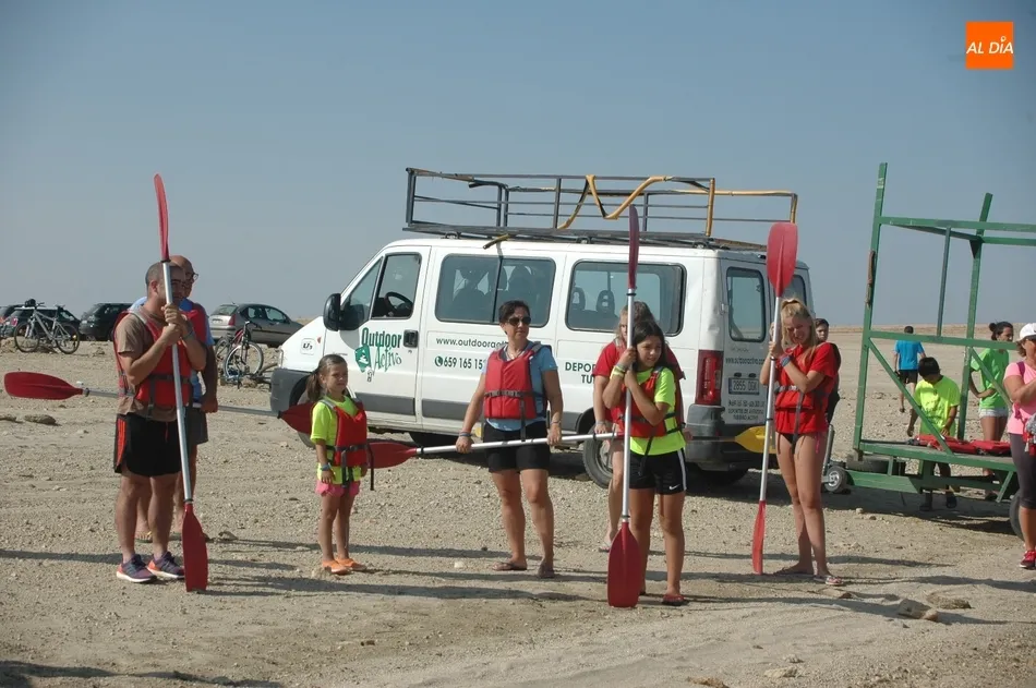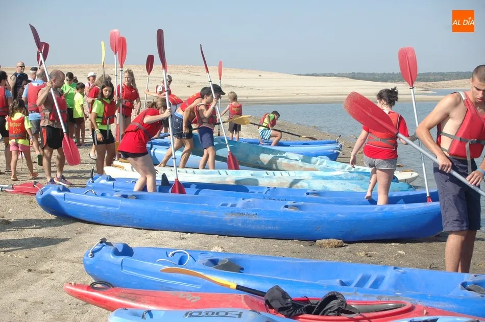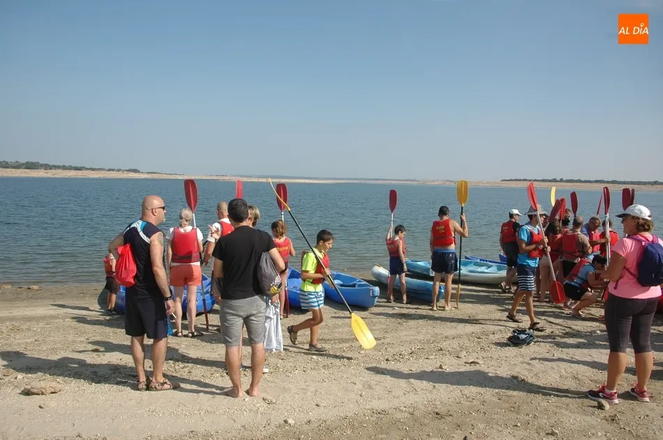 Pequeños y mayores se acercaban hasta las orillas del embalse para participar en una divertida ?regata? en el pantano, más bajo de nivel que de costumbre, pero con el suficiente atractivo como para recordar este paseo acuático, la menos para las cerca de 60 personas que se espera participen en el actividad.