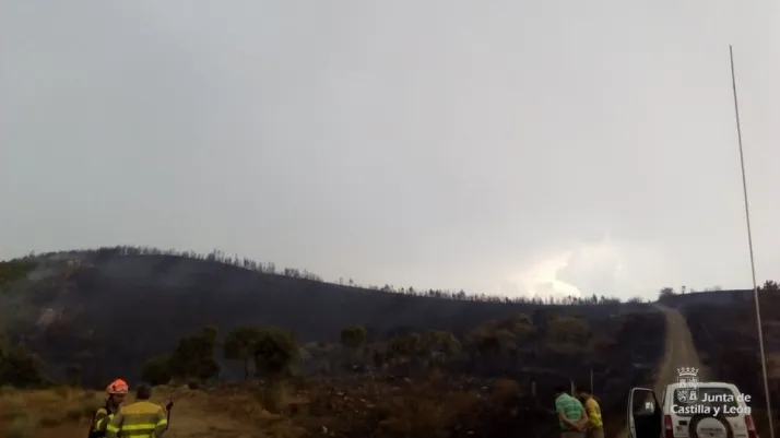 En el momento de emitir la Consejería de Fomento y Medio Ambiente el parte de incendios de la tarde del miércoles, poco después de las 19.00 horas, este fuego aún seguía activo, al igual que el declarado a las 17.55 horas en Martiago. En este caso, este incendio movilizó sendos helicópteros con base en Guadramiro y El Bodón, dos cuadrillas de especialistas en la lucha contra incendios, dos cuadrillas de tierra y tres camiones autobomba.