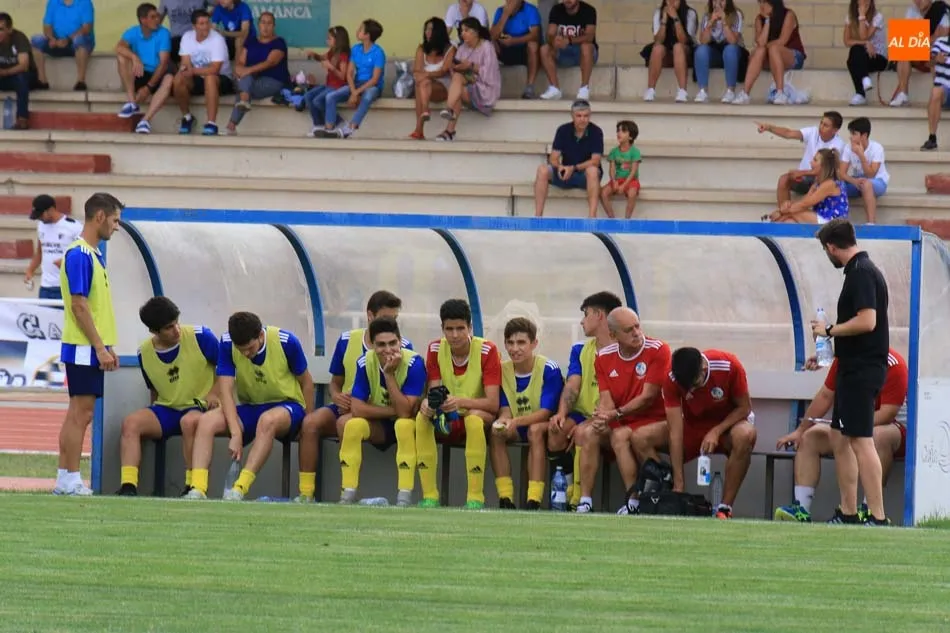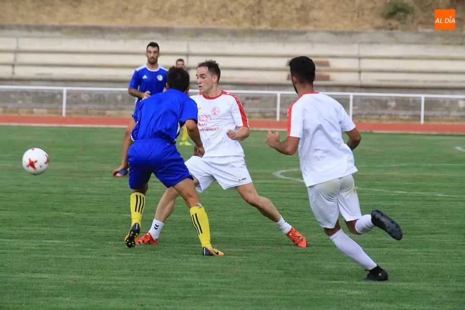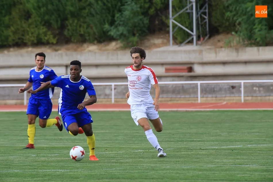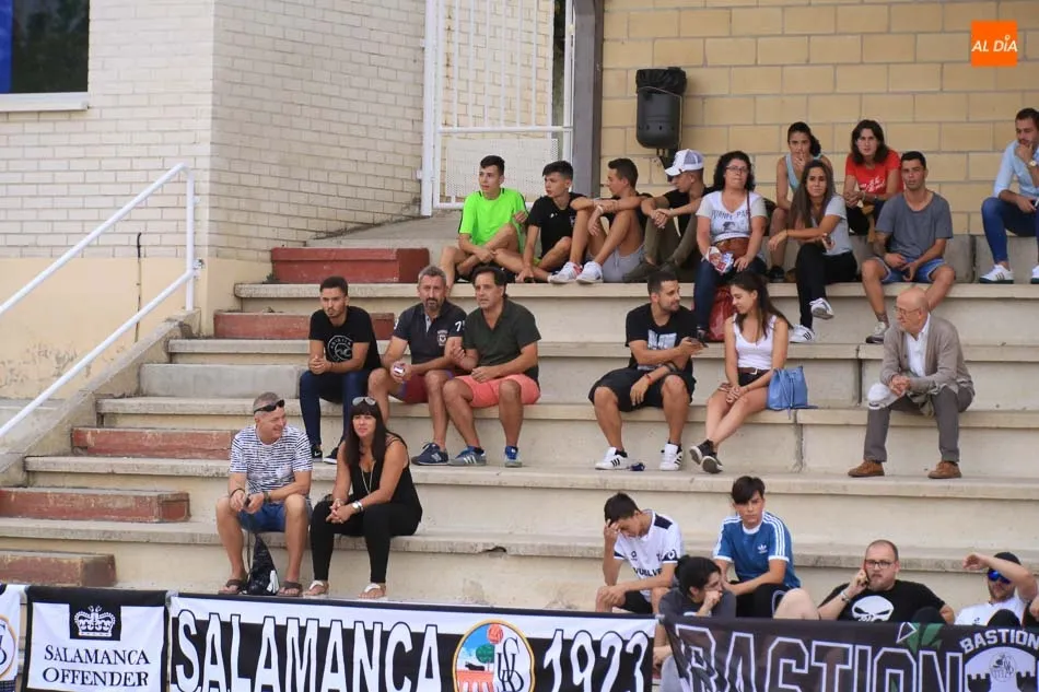 Salamanca UDS B y Hergar Camelot se veían esta tarde las caras en Las Pistas en un partido entre equipos que serán rivales en la Regional de Aficionados en la nueva temporada. Dos equipos que presentaban muchas caras nuevas . En el caso del filial blanquinegro, además, había bastantes ausencias, pues hay varios jugadores que han estado haciendo pretemporada con el primer equipo, por lo que Pablo Cortés subió bastantes juveniles.