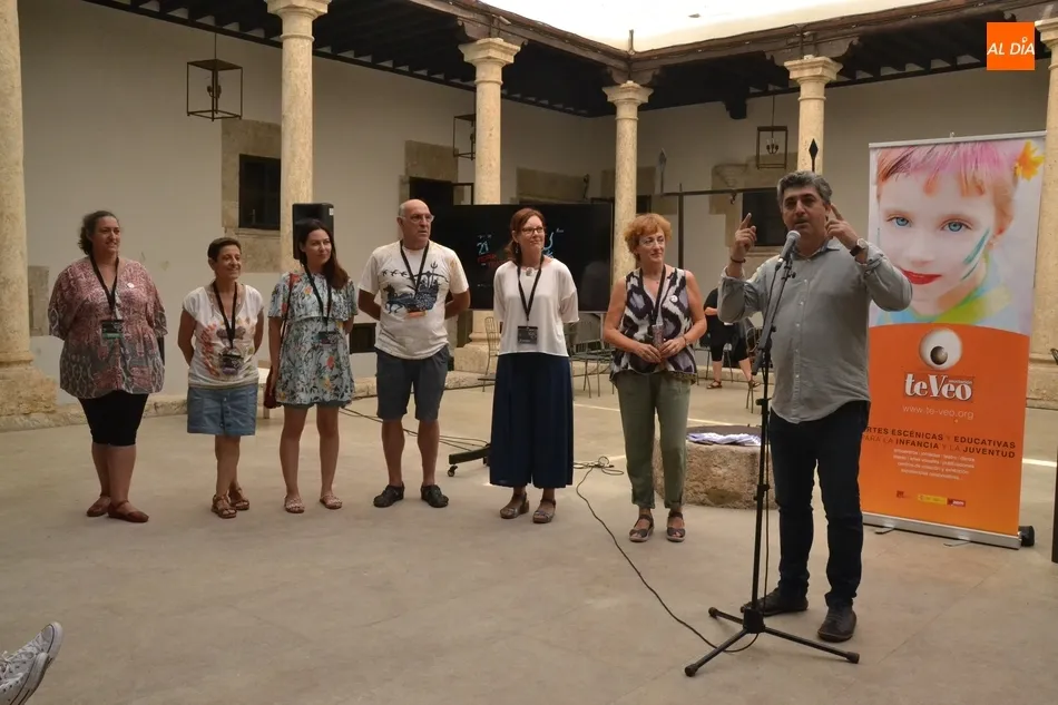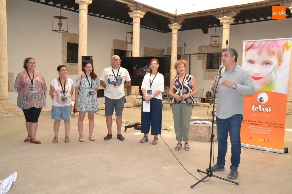 Durante el acto en el Palacio de Montarco también intervino Ana Gallego, de Teloncillo, otra de las compañías integrantes de Te Veo, quién tuvo un recuerdo para las tres mujeres cuya ponencia en Zamora hace unos años dio pie al protocolo original: Pilar, de Teatro Paraíso; Julia, de La Sal Teatro; y Rosa de La Rous.