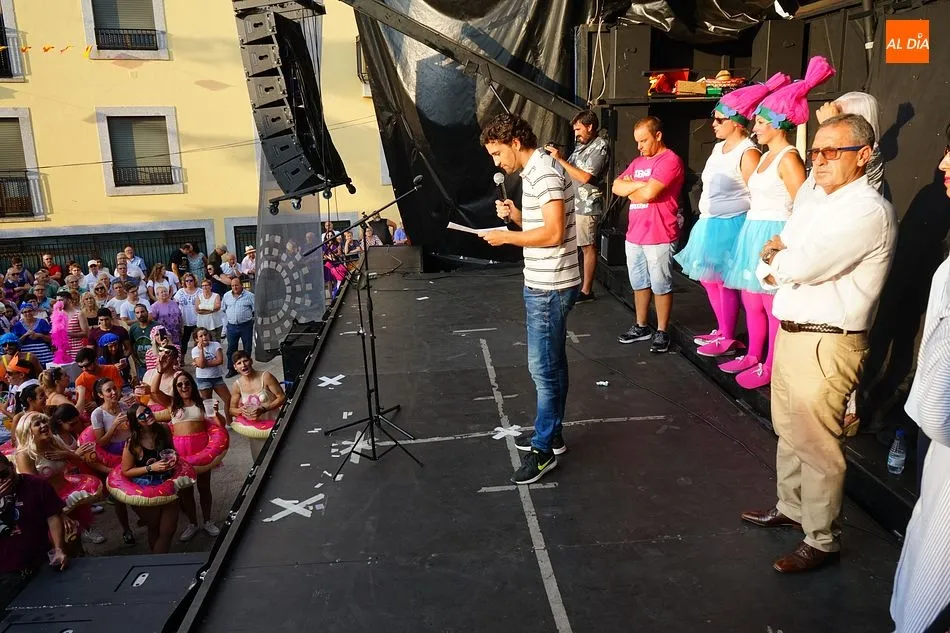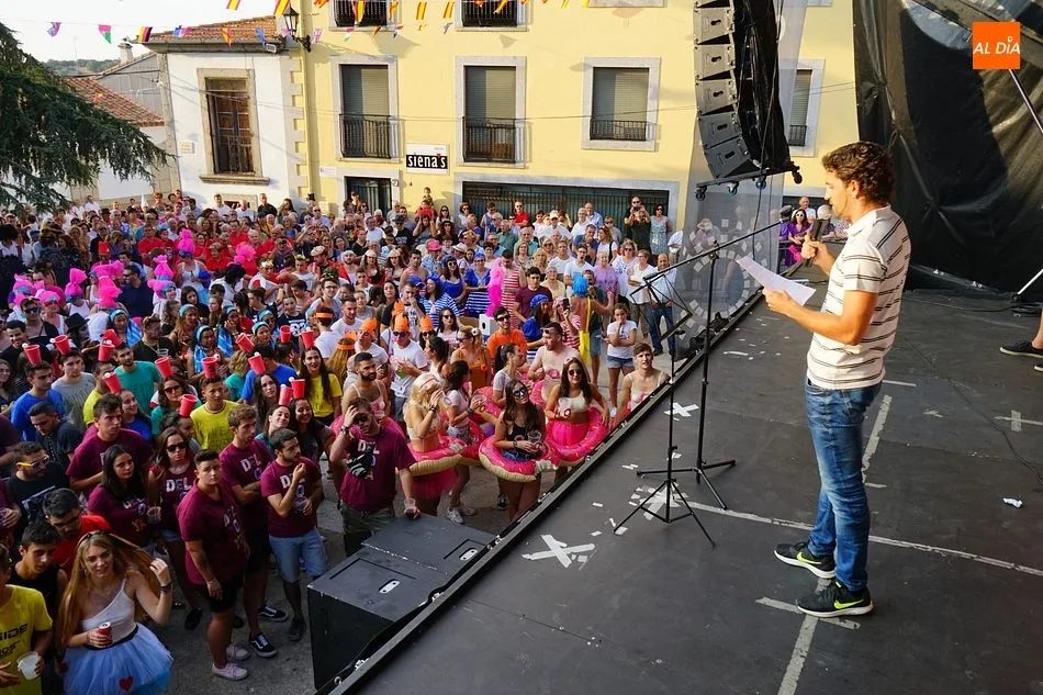 Una vez en el ágora, los protagonistas han subido al escenario de la orquesta Contraste para oficiar el inicio de los festejos. El alcalde ha dado la bienvenida a todos y ha agradecido la alta participación en las diferentes propuestas festivas. Acto seguido ha presentado al pregonero, David Alejandro, conocido atleta salmantino, que ha llegado a ser internacional y que pasó muchos años de su infancia en la localidad. ?Deseo que os divirtáis, tengo muy buenos recuerdos de las calles de Los Santos y me siento como en casa. También quiero recordar a todos los que ya no están? señaló Alejandro en su breve, pero emocional pregón, en el que aludió precisamente a la brevedad al vivir desde abajo muchos pregones festivos anteriormente.