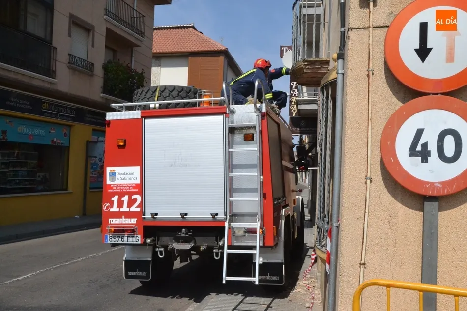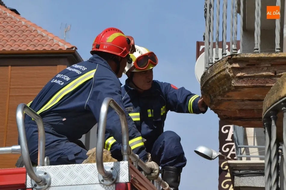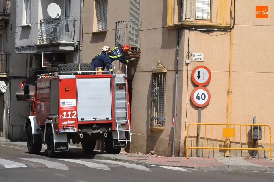 Los Bomberos de Ciudad Rodrigo realizaron a primera hora de la tarde del jueves una actuación de carácter preventivo en la calle Santa Clara ante el mal estado de un balcón situado en el inmueble de esa vía que hace esquina con la calle Laguna.