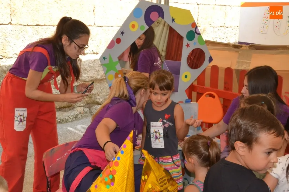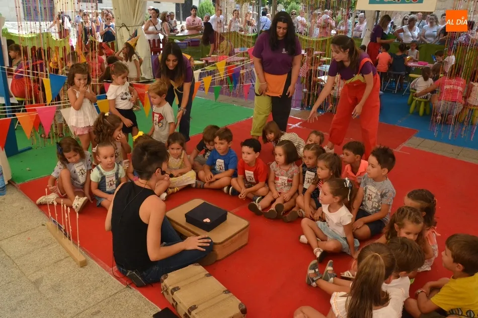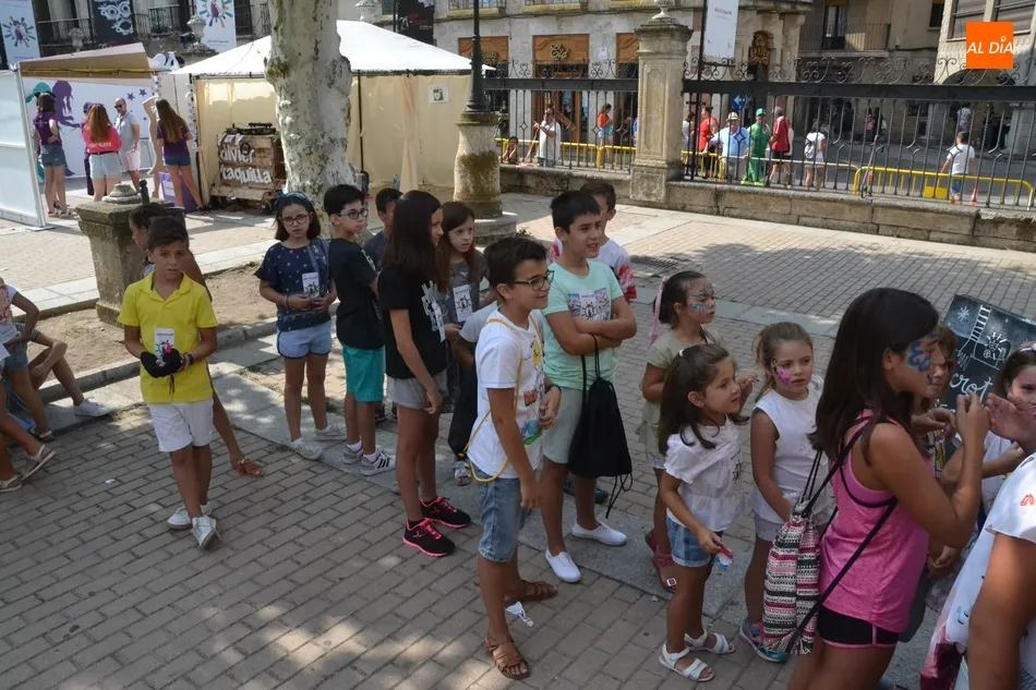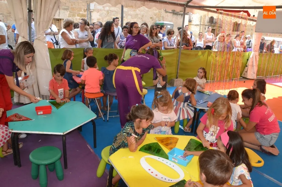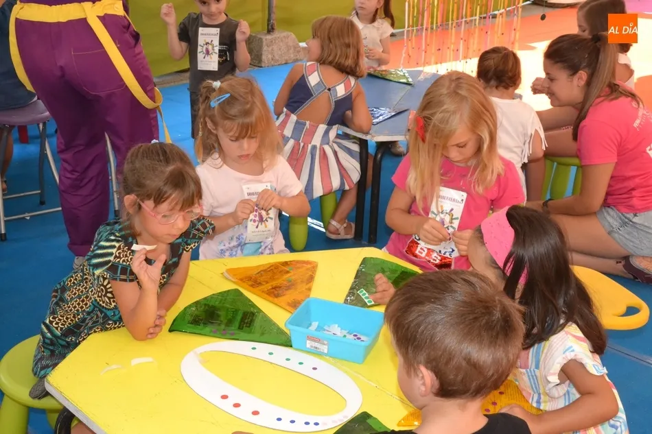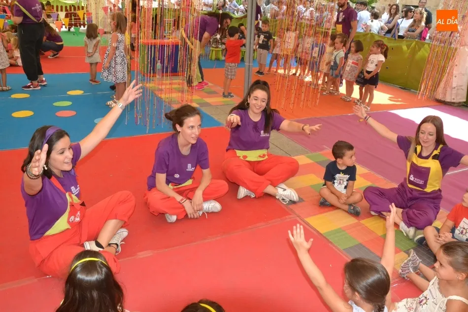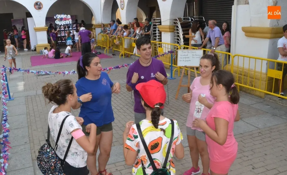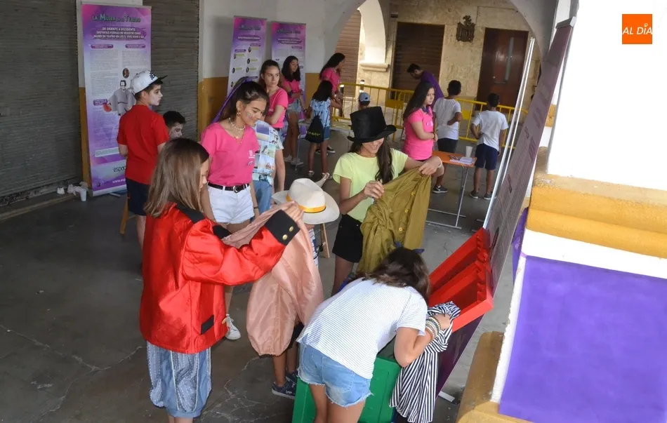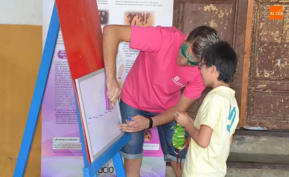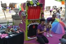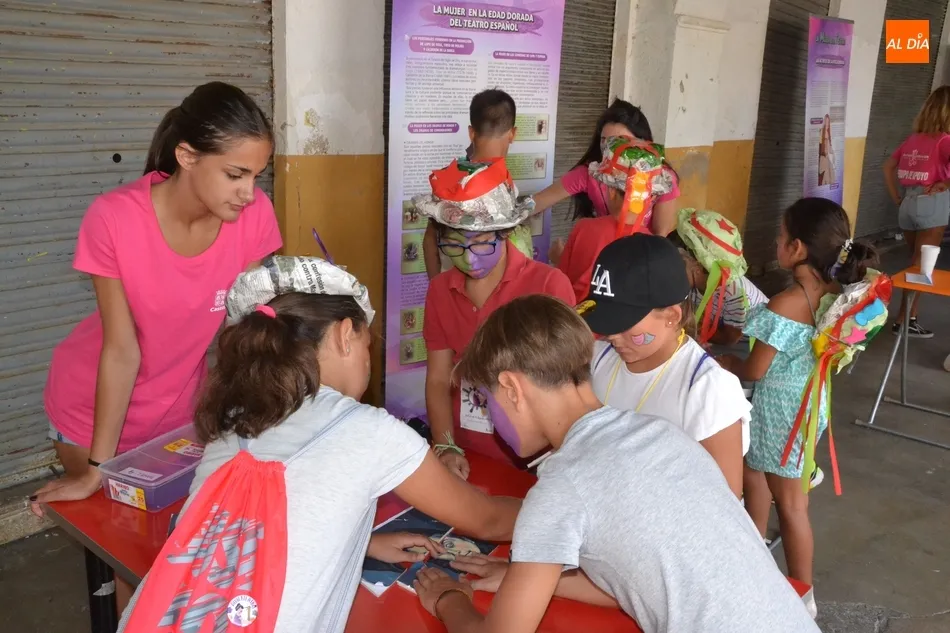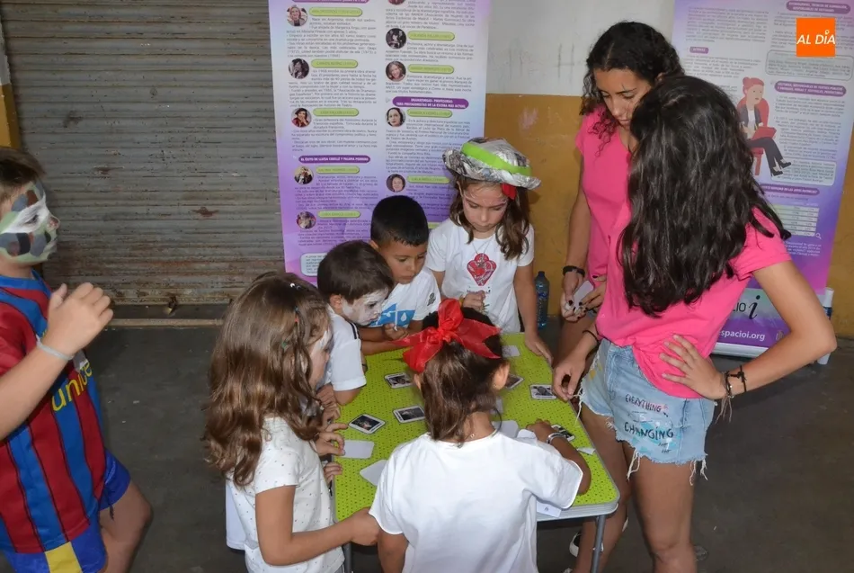 Los novedosos talleres colectivos del Divierteatro dirigidos por mujeres despiertan gran curiosidad ... | Imagen 1El lateral de la Plazuela donde están todos esos talleres se completa con un juego de ¿Quién es quién?, que también está despertando bastante curiosidad por ser totalmente novedoso. Asimismo, están teniendo una continua afluencia de público los juegos y actividades creados a partir de los paneles de la exposición La mujer en las Artes Escénicas. En este caso, se invita a los niños a hacer un recorrido ordenado por todos esos juegos para acabarse llevando un pequeño obsequio.