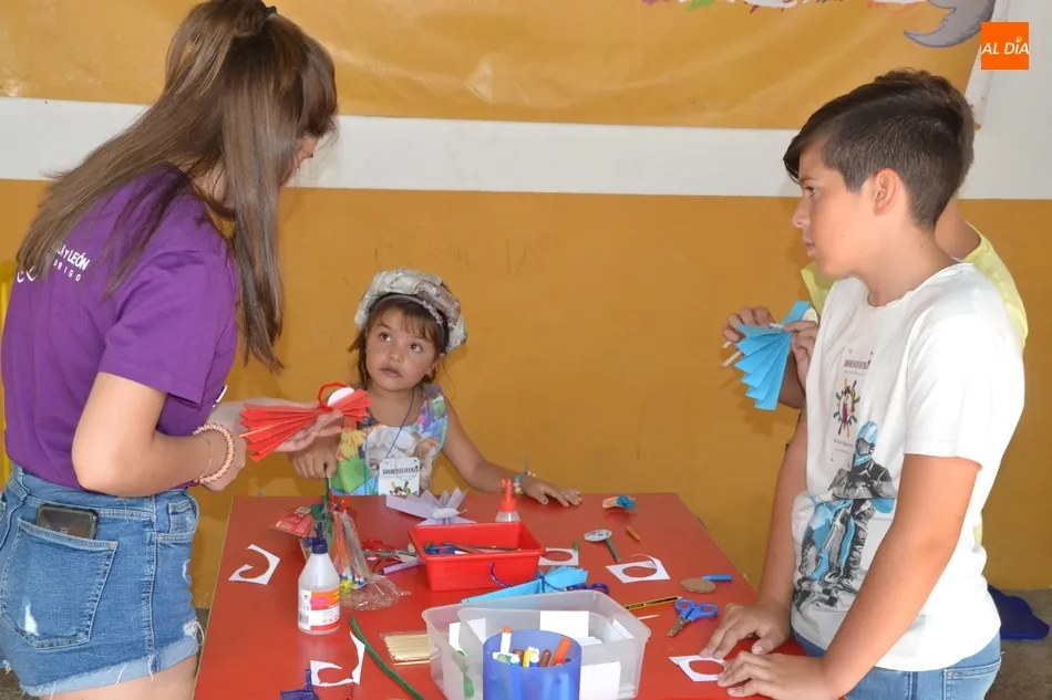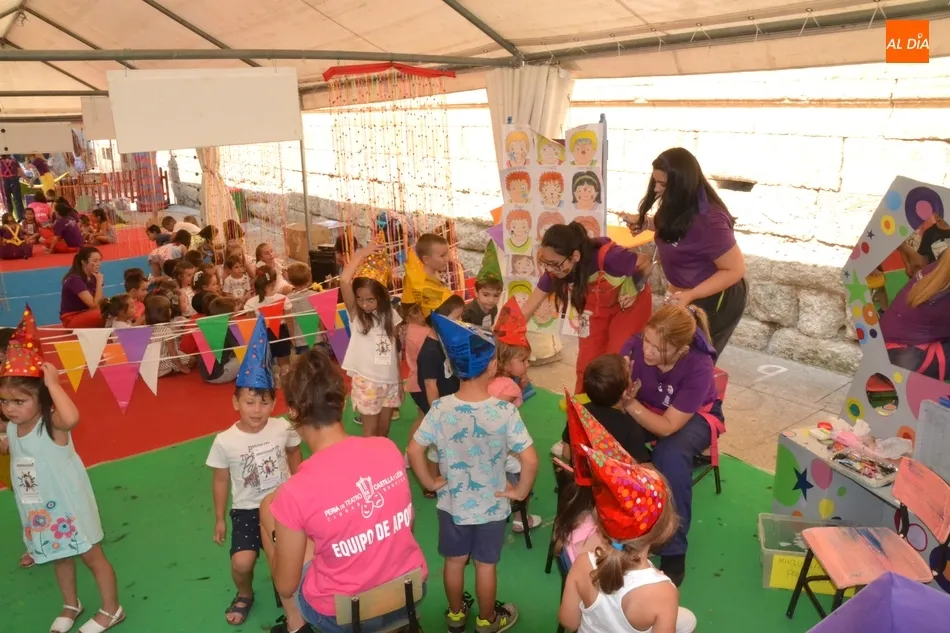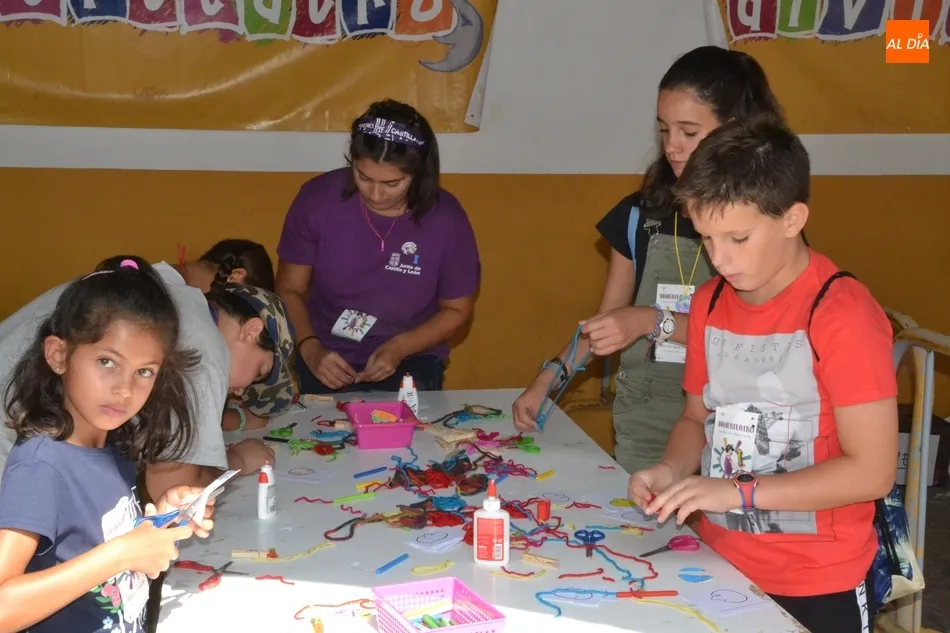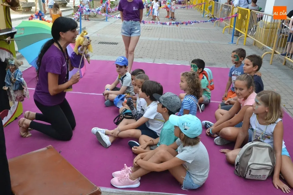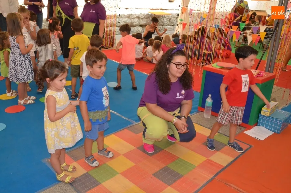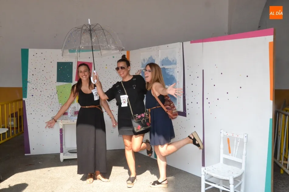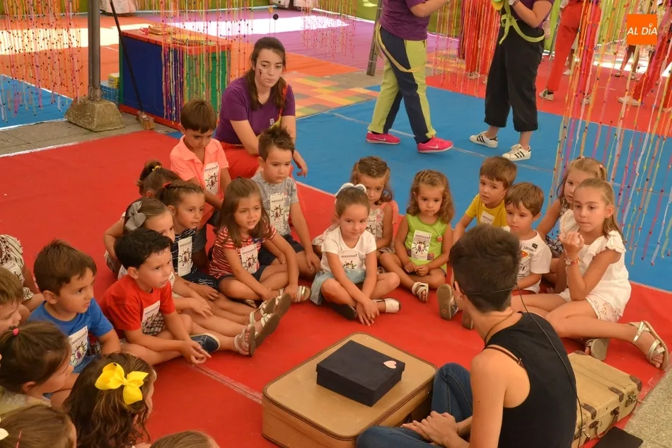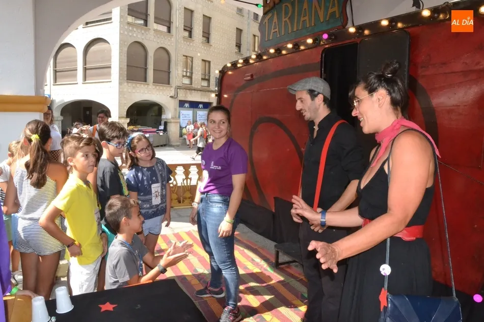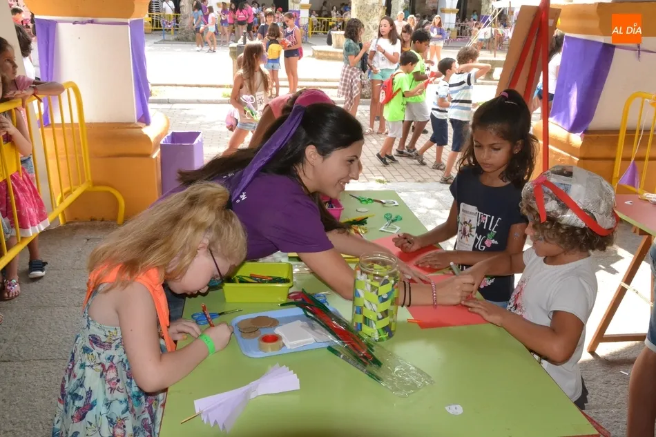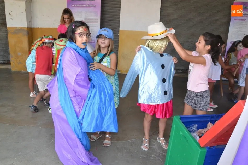 Los novedosos talleres colectivos del Divierteatro dirigidos por mujeres despiertan gran curiosidad ... | Imagen 1El lateral de la Plazuela donde están todos esos talleres se completa con un juego de ¿Quién es quién?, que también está despertando bastante curiosidad por ser totalmente novedoso. Asimismo, están teniendo una continua afluencia de público los juegos y actividades creados a partir de los paneles de la exposición La mujer en las Artes Escénicas. En este caso, se invita a los niños a hacer un recorrido ordenado por todos esos juegos para acabarse llevando un pequeño obsequio.
