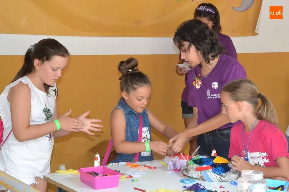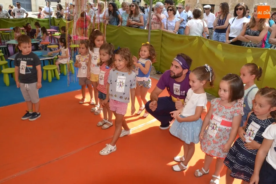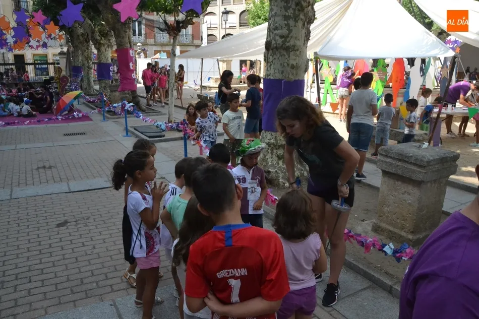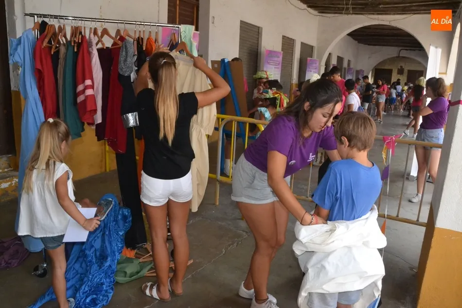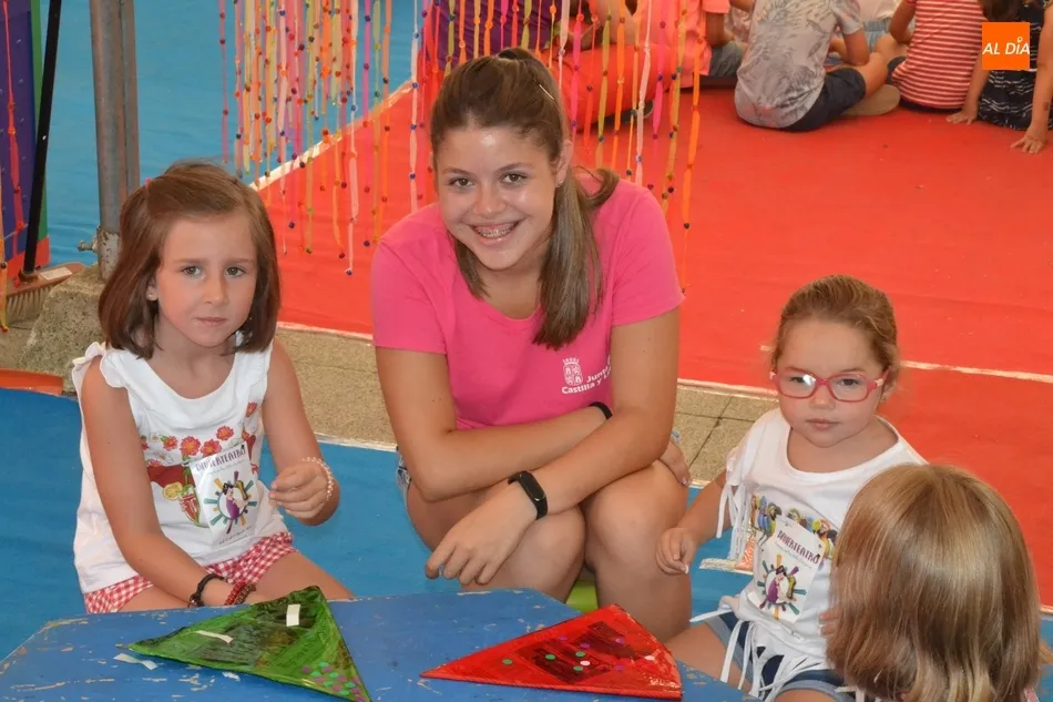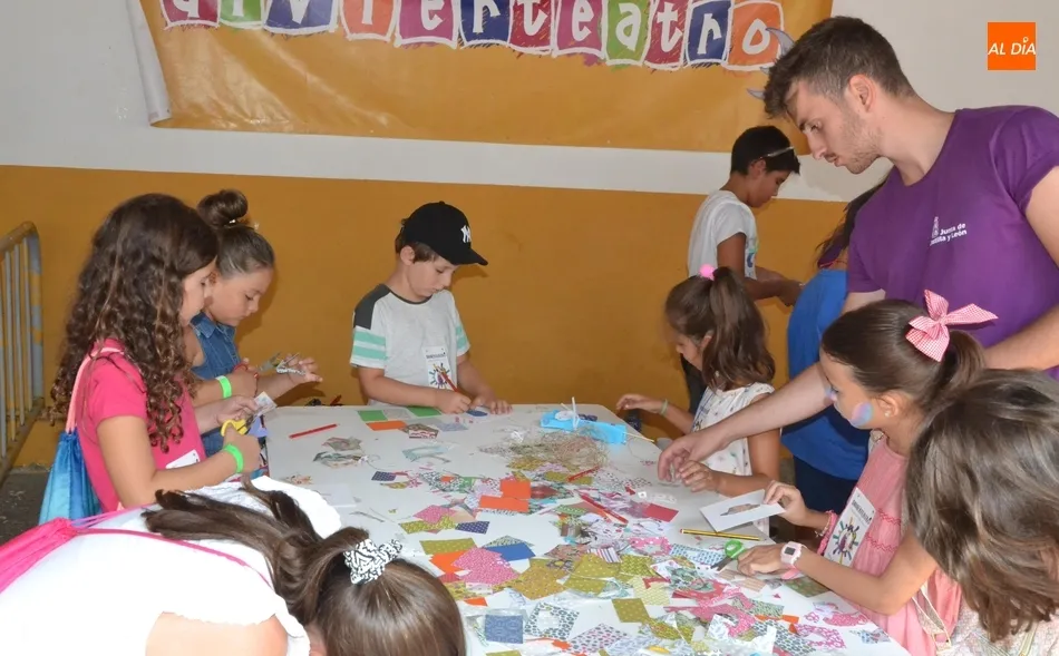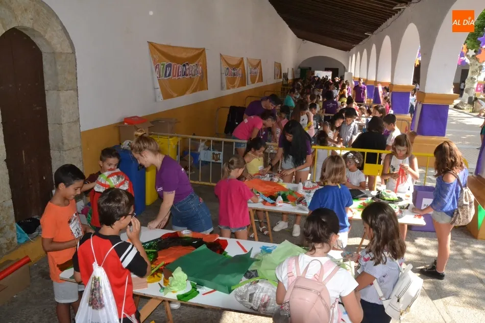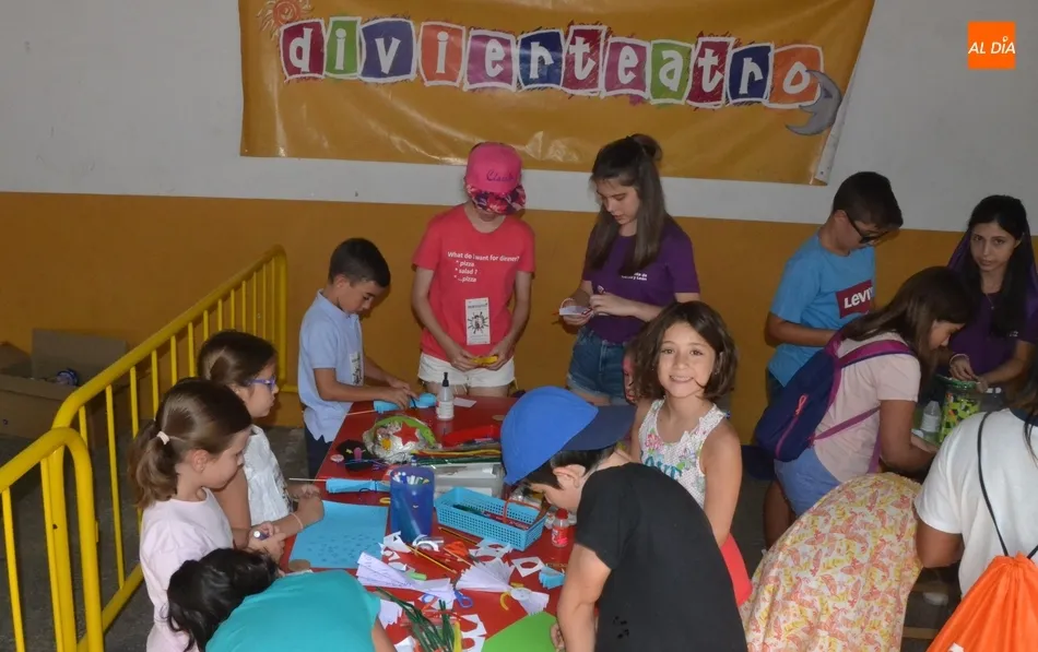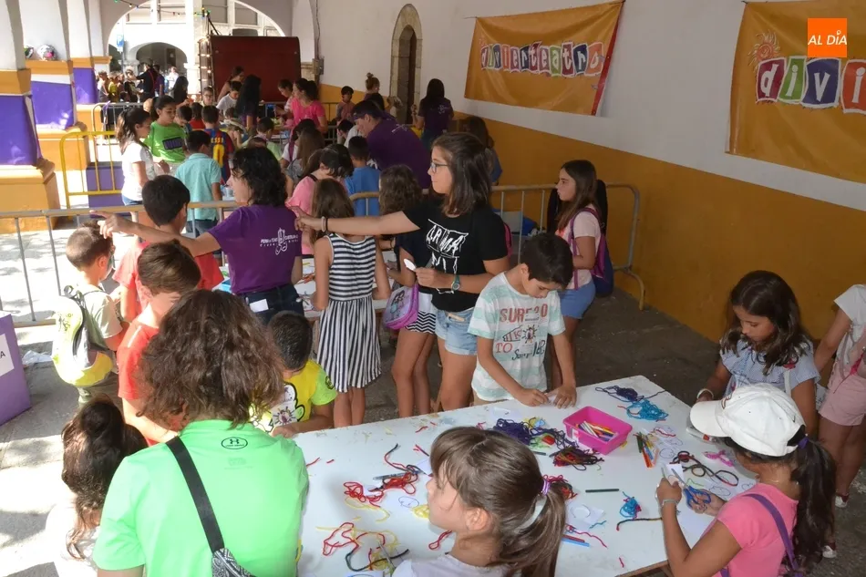 Volviendo a la Plazuela del Buen Alcalde, este año uno de los grandes ejes del Divierteatro son los talleres de carácter colectivo, que están ubicados en su mayoría en el lateral de la Plazuela más cercano a los soportales desde donde los familiares siguen las andanzas de sus críos (excepto el mencionado taller de escenografías y el de vestuario, que está teniendo una gran aceptación).