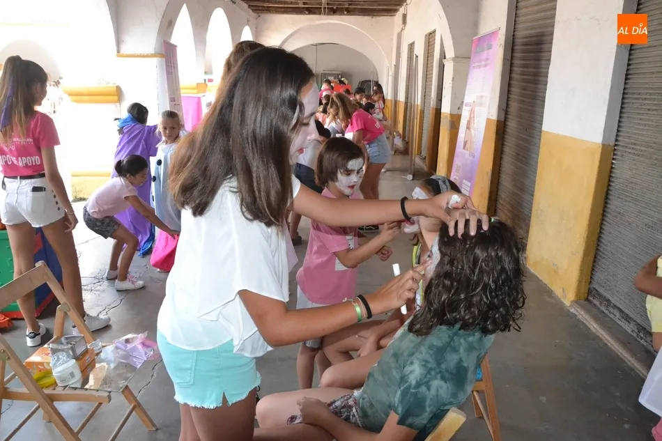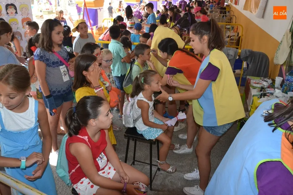 Como ya publicamos en la jornada del miércoles, el tercer gran área del Divierteatro son los talleres de animación teatral ubicados bajo los soportales, donde los niños pueden hacer este año títeres de calcetín, títeres de pinza, títeres de bailarina, cajas decoradas, colgantes o móviles, además de tener la oportunidad de que las encargadas del taller de maquillaje les pinten la cara con divertidos motivos.