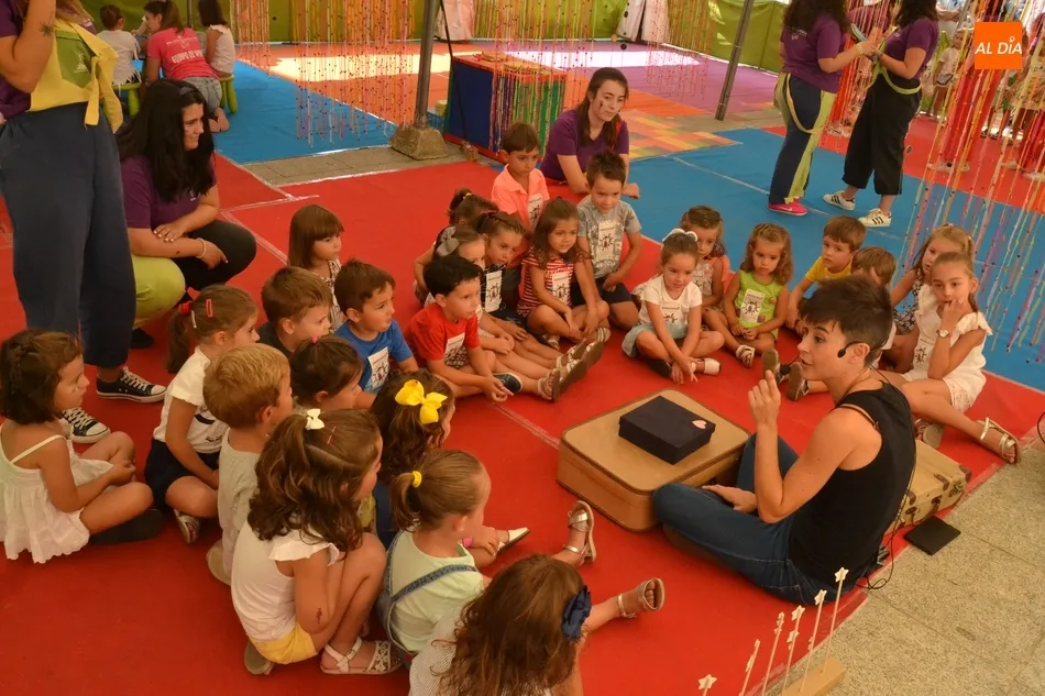 Junto a ellos, hubo un tercer espectáculo, aunque dentro del Palabreando: los cuentos e historias con la mujer como protagonista que está narrando Pilar Borrego con su compañía Katúa Teatro. Esos cuentacuentos son uno de los ejes fijos del Palabreando por los que van rotando de forma ordenada los niños (se les hace un recorrido de alrededor de una hora que también incluye actividades de psicomotricidad, canciones, talleres plásticos, y para rematar, la posibilidad de maquillarse).