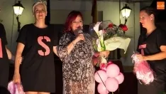 Raquel Serrano tomó la palabra para contar su experiencia como víctima de cáncer de mama. ?Fue tremendo, pero lo he logrado y me siento satisfecha de estar aquí con vosotros?, dijo. Agradeció el apoyo a las personas que le acompañaron en la lucha contra la enfermedad y a quienes han participado en la organización del desfile. También mandó un mensaje de agradecimiento a la gran cantidad de personas, empresas y ayuntamientos que han colaborado con la iniciativa. La respuesta de la gente ha sido tan grande que ha dejado pequeñas todas las previsiones. Las quinientas sillas colocadas fueron insuficientes para acoger a todos los asistentes.