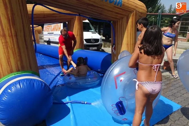 Alba de Tormes celebra como cada año las fiestas de la transverberación de Santa Teresa y comienzan con un parque acuático terrestre para disfrute de todos los asistentes.