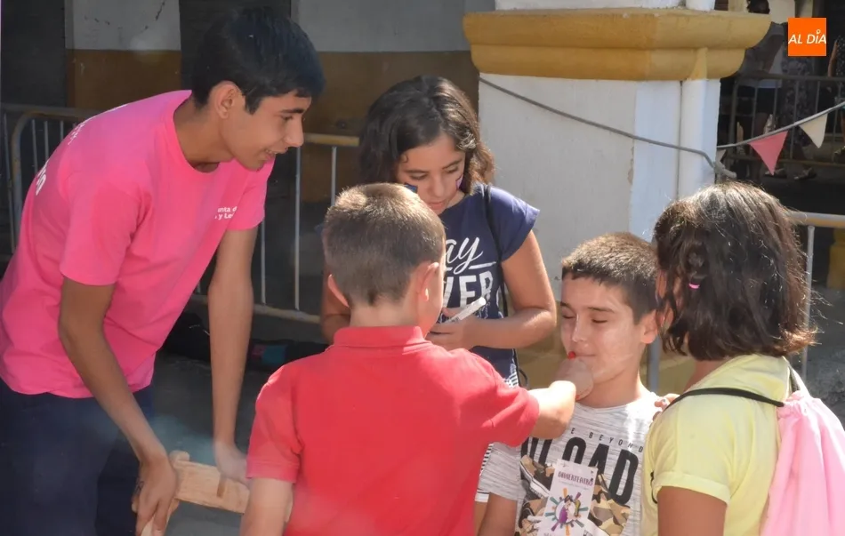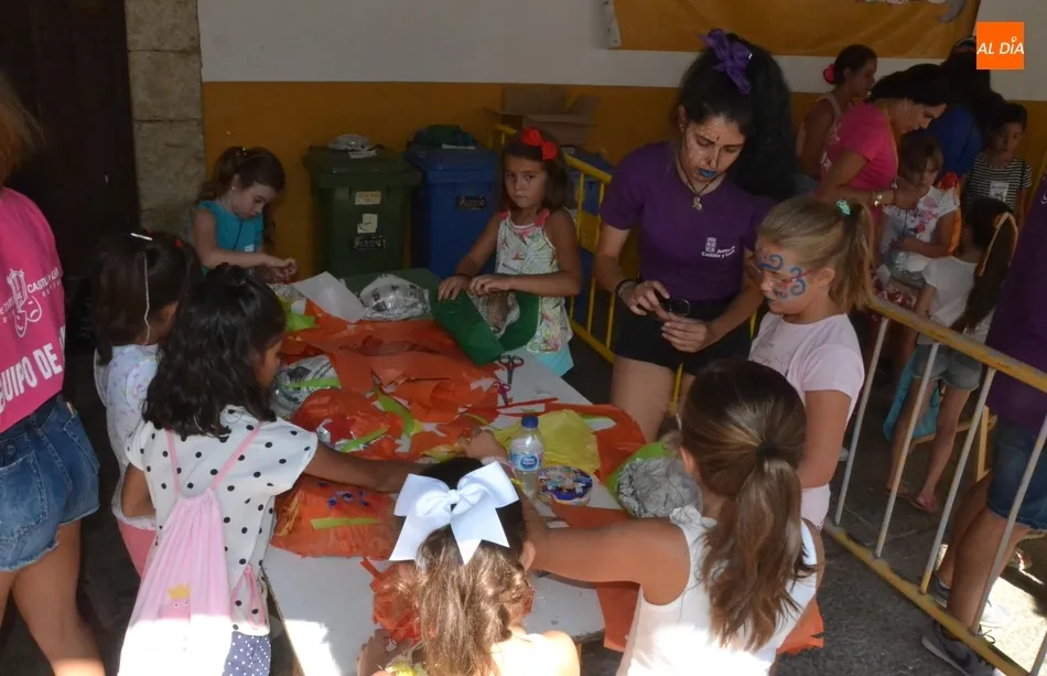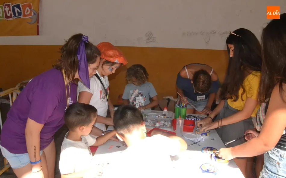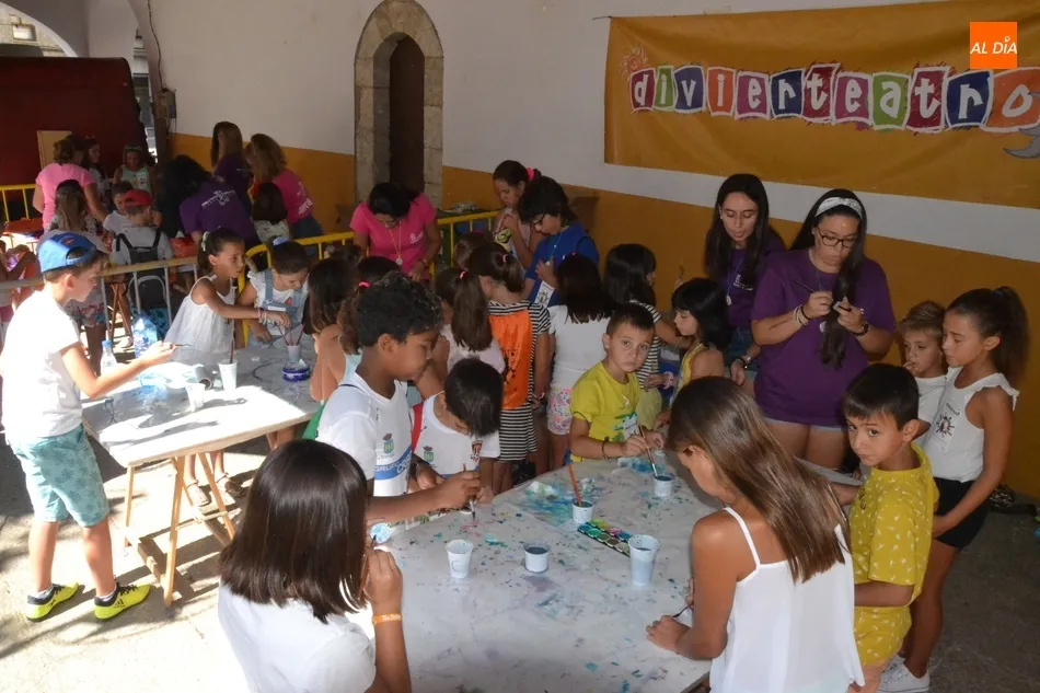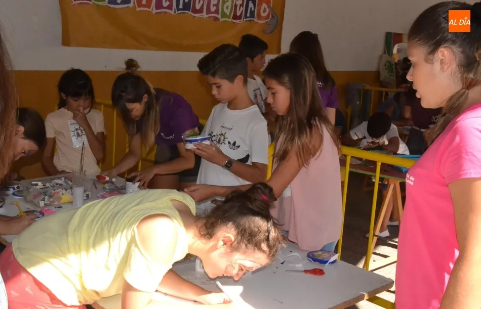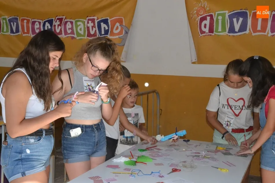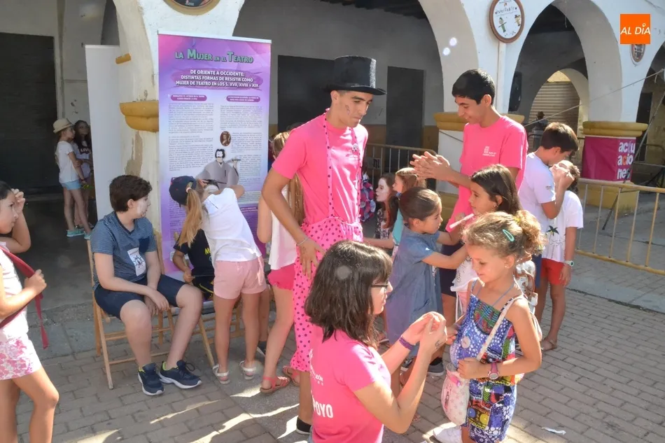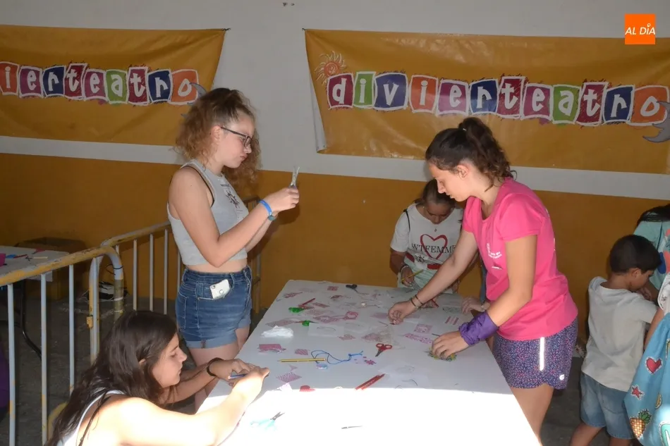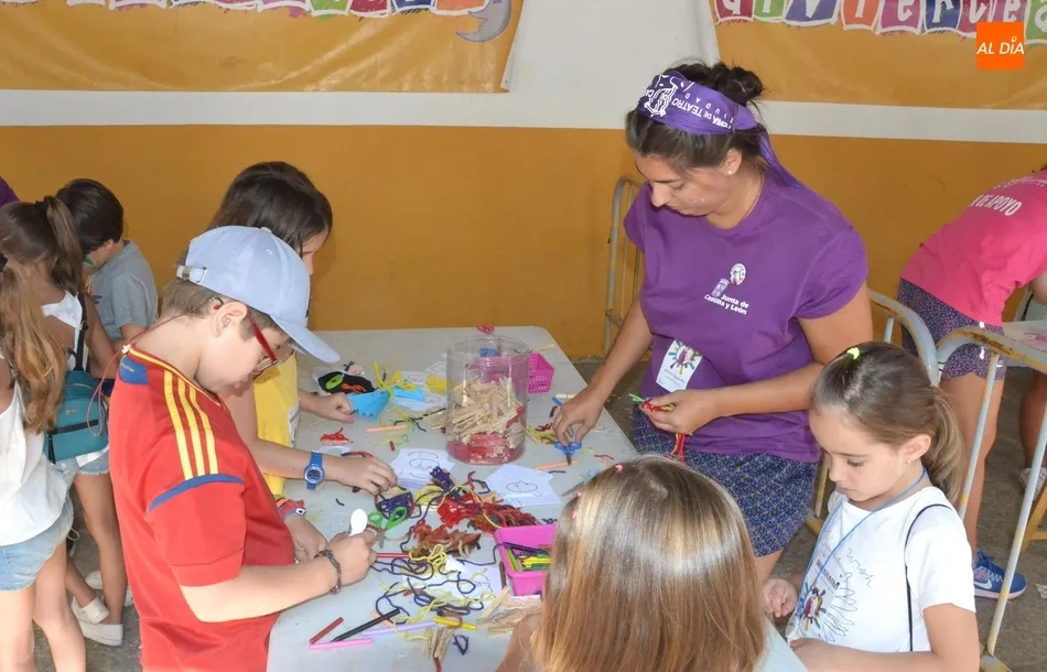 Por su parte, varios monitores ?que ya tienen 18 años- son los encargados de echar una mano a las cinco profesionales de las artes escénicas de Castilla y León que están ofreciendo varios talleres colectivos como ya hemos comentado en días anteriores.