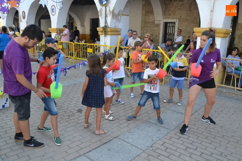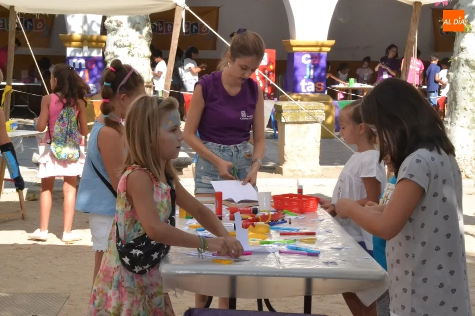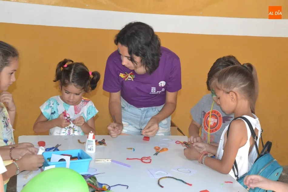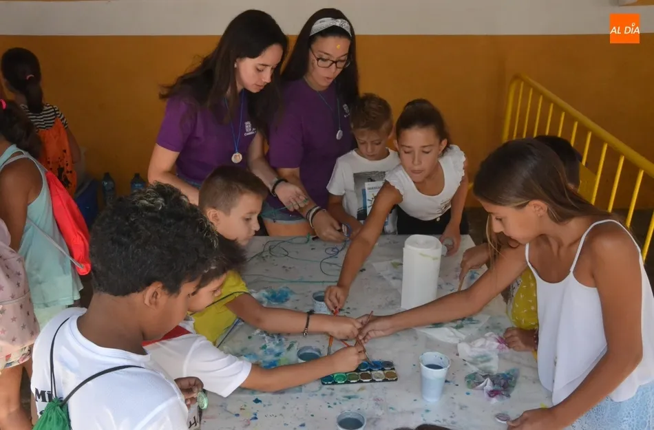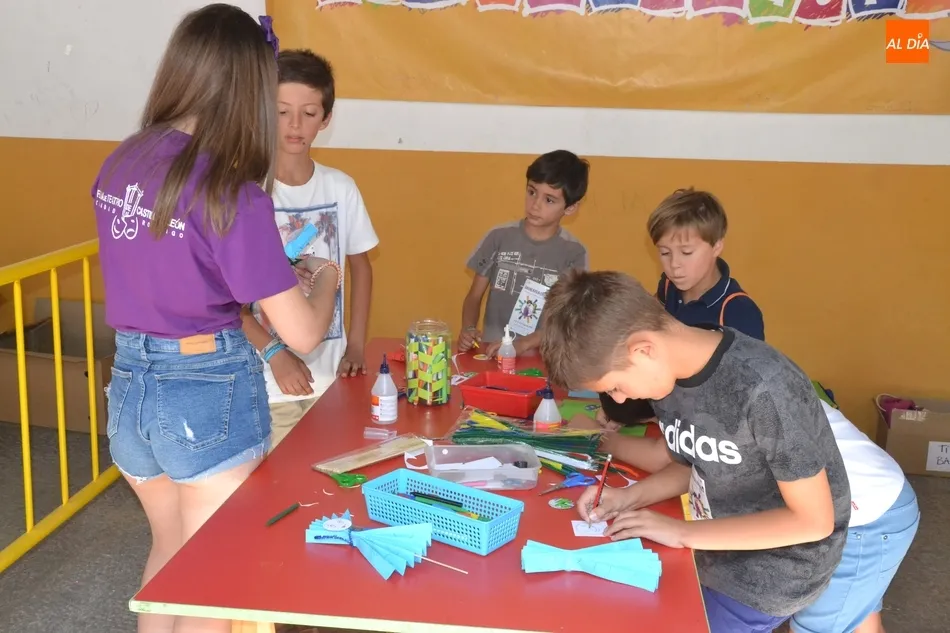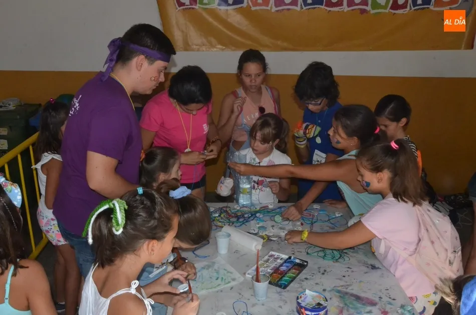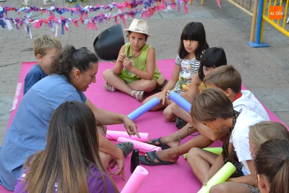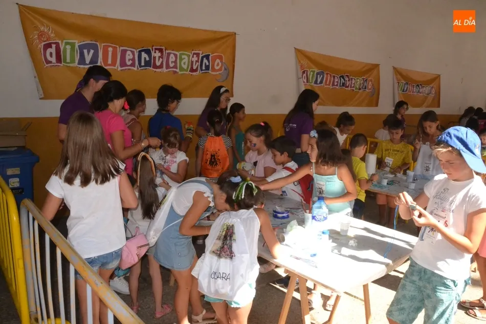 Por su parte, varios monitores ?que ya tienen 18 años- son los encargados de echar una mano a las cinco profesionales de las artes escénicas de Castilla y León que están ofreciendo varios talleres colectivos como ya hemos comentado en días anteriores.