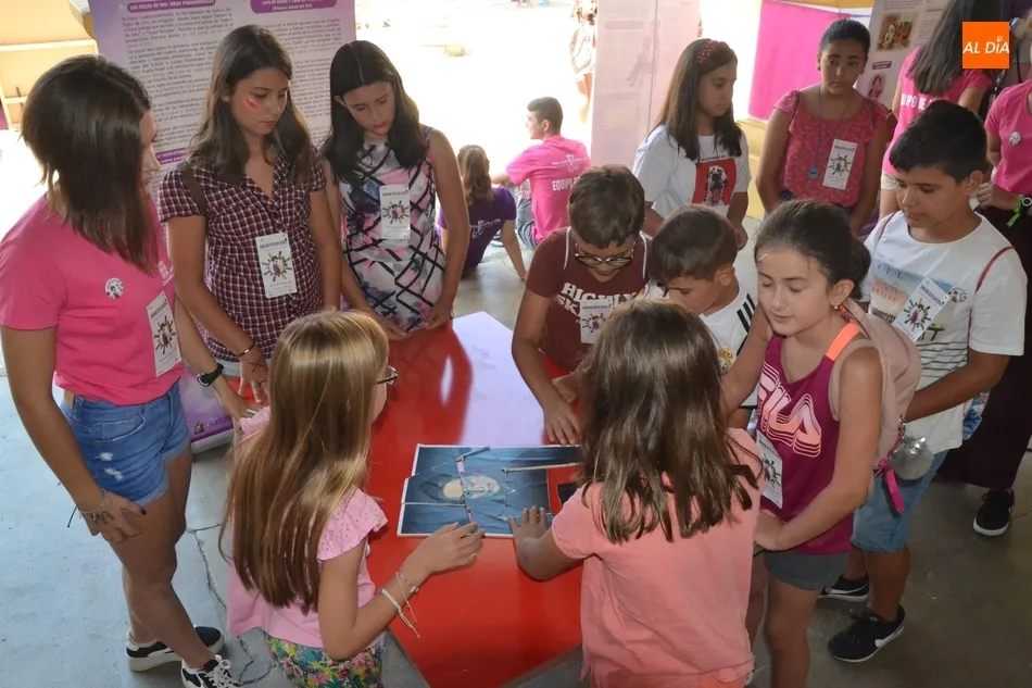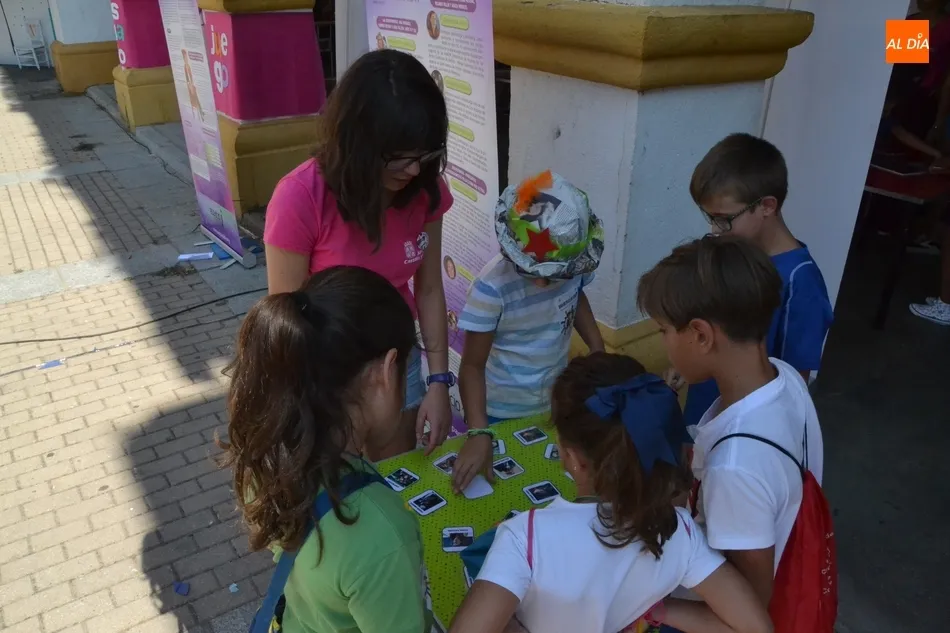 Entre los juegos creados a partir de los paneles hay un rompecabezas, un juego del ahorcado, una sopa de letras, una asociación de conceptos u otro para identificar objetos. Cada uno de esos puntos está atendido por uno de los jóvenes que integran el equipo de apoyo: jóvenes de 16 y 17 años que aspiran a ser monitores en el futuro.