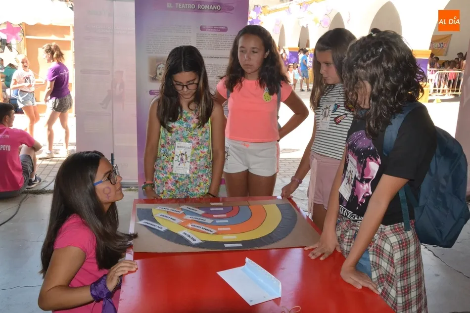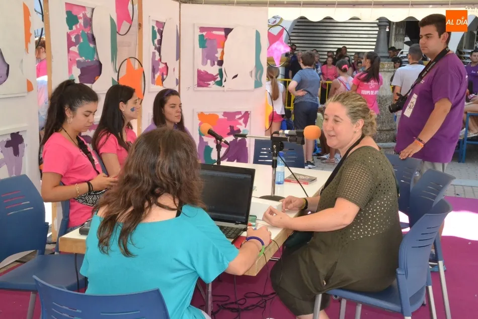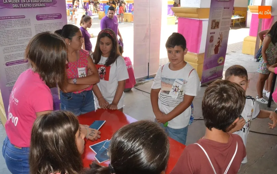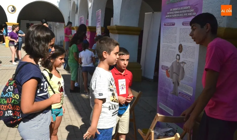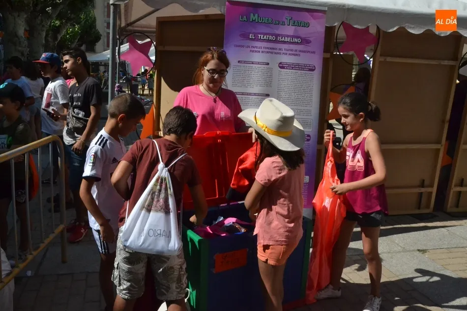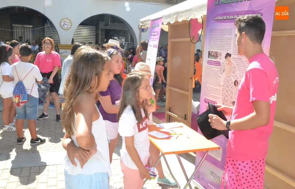 Ese montaje se representó a última hora de la mañana en una esquina de la Plazuela, en las inmediaciones tanto del taller de radio que está dirigiendo Rebeca Jerez -donde se siguen haciendo entrevistas a féminas protagonistas de la Feria-, como de la zona de paneles de la exposición La Mujer en el Teatro, creada por el Espacio i con motivo del pasado Día Internacional de la Mujer para visibilizar a las mujeres en la historia teatral, donde habitualmente han quedado relegadas a un 2º plano.