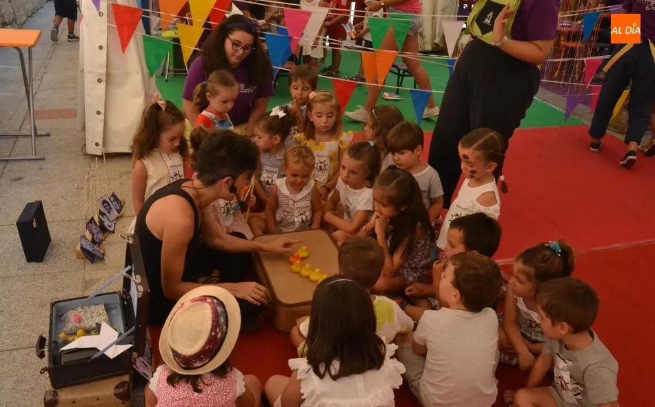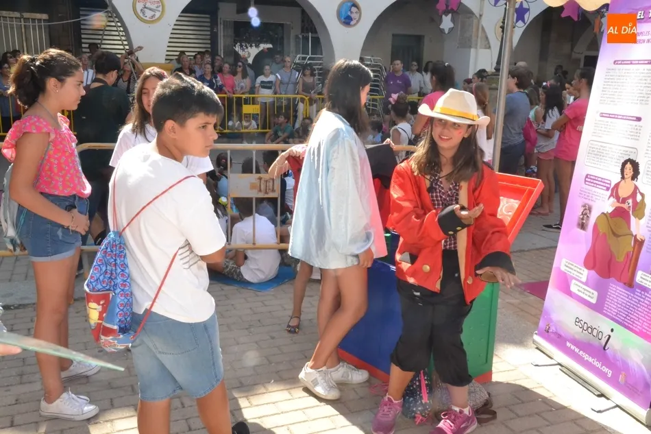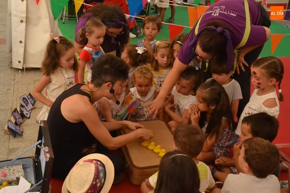 El programa de animación infantil de la Feria, el Divierteatro, vivió en la jornada del viernes su tercera sesión, que de nuevo volvió a congregar a cientos de niños en las Plazuelas del Buen Alcalde y del Conde para disfrutar de una entretenidísima mañana.